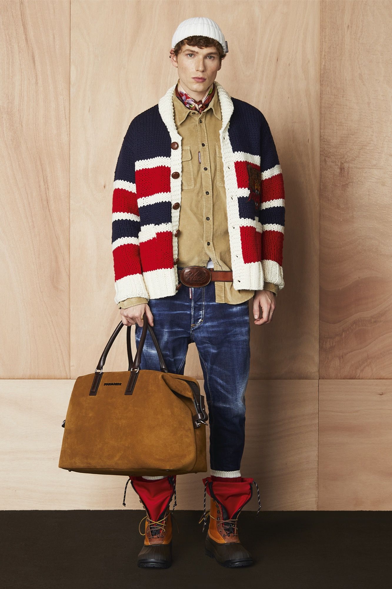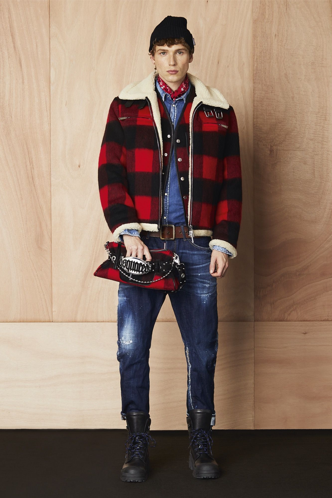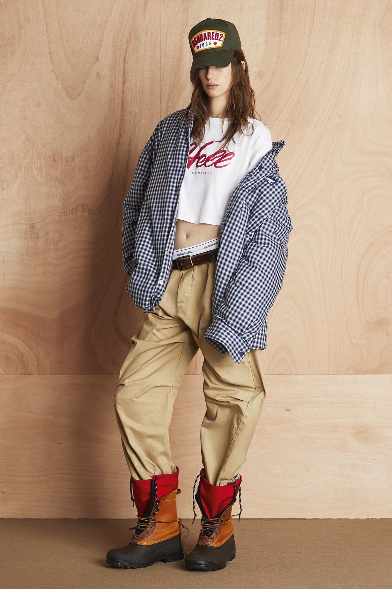 Among the novelties are blue and white checkered puffer jackets, denim jackets with Scottish inserts, knitwear featuring the enraged bear protagonist of the film, and bright yellow raincoats. The lookbook also includes outfits designed for nightlife, blending stylistic elements such as tutus and tuxedos with the distinctly streetstyle aesthetic that has always guided the brand's artistic direction. The collection is rich in details, particularly marked by scratches left by a bear, present on jackets, jeans, and scarves in equal measure. The footwear pays homage to the world of hiking, with warm interiors and functional silhouettes, while the bags capture the sharp and edgy spirit of DSQUARED2, from denim clutches to shoulder bags adorned with studs and accessories.