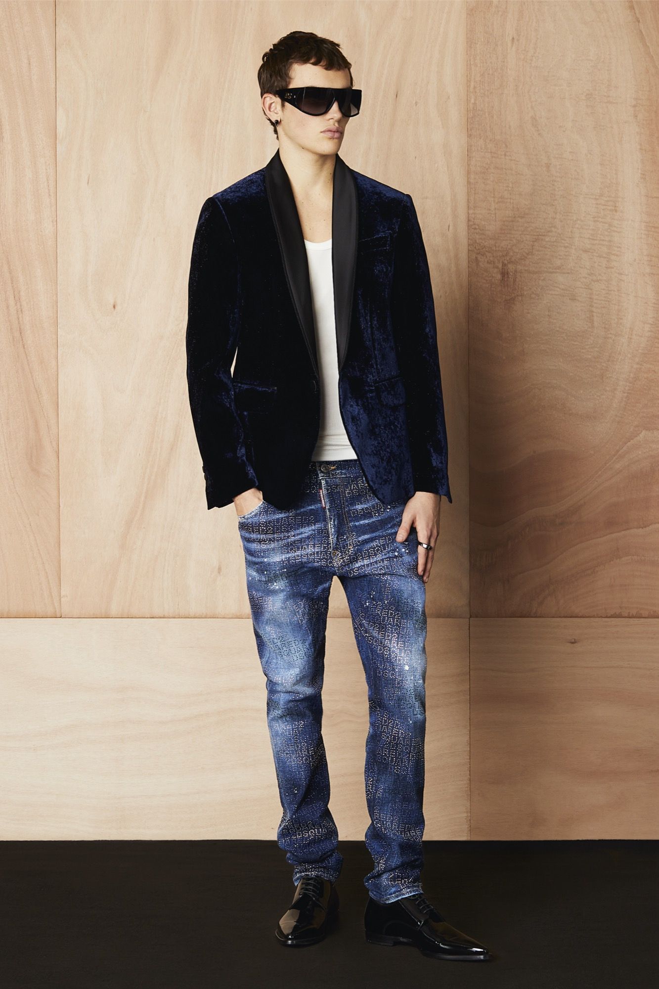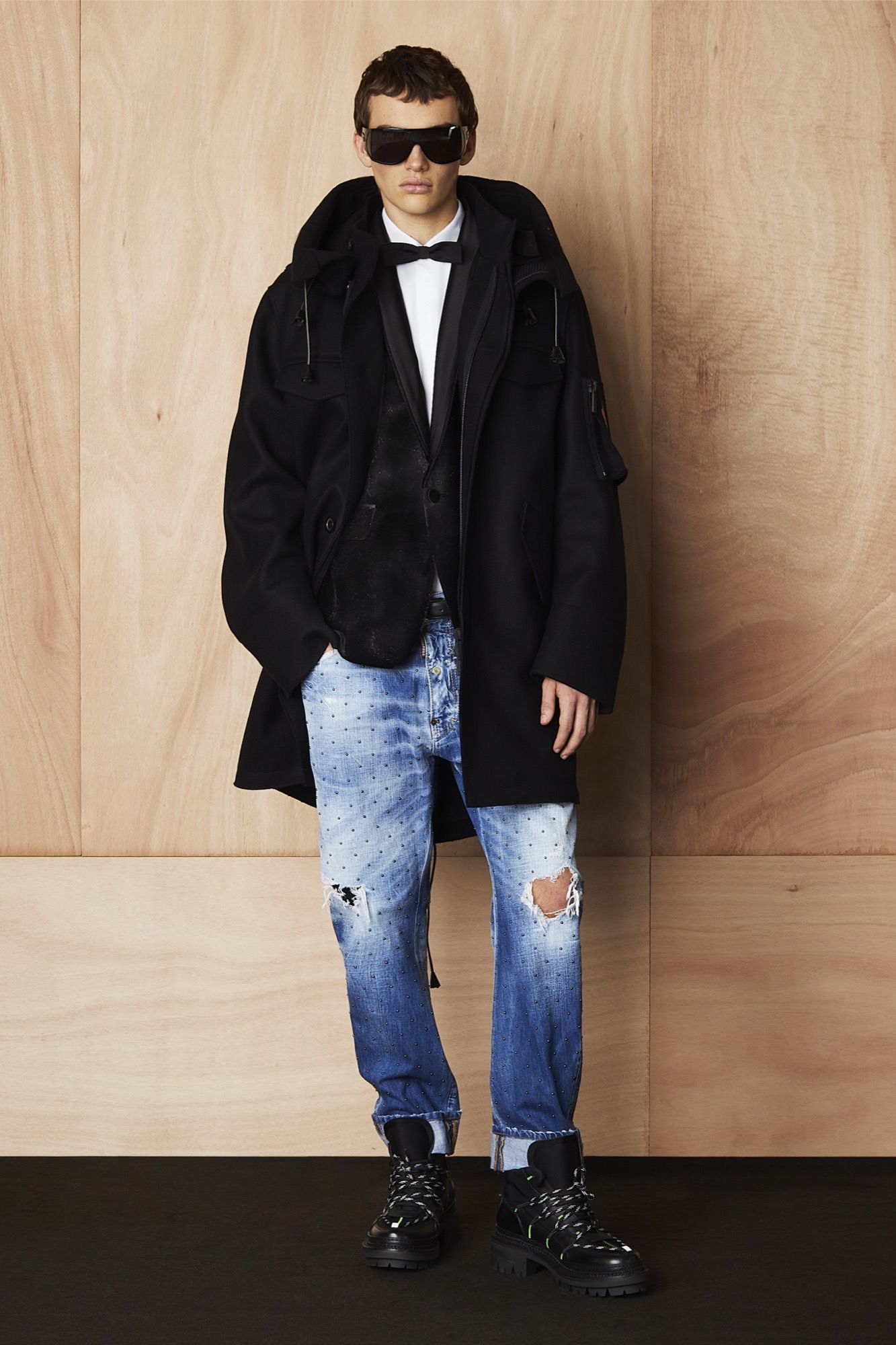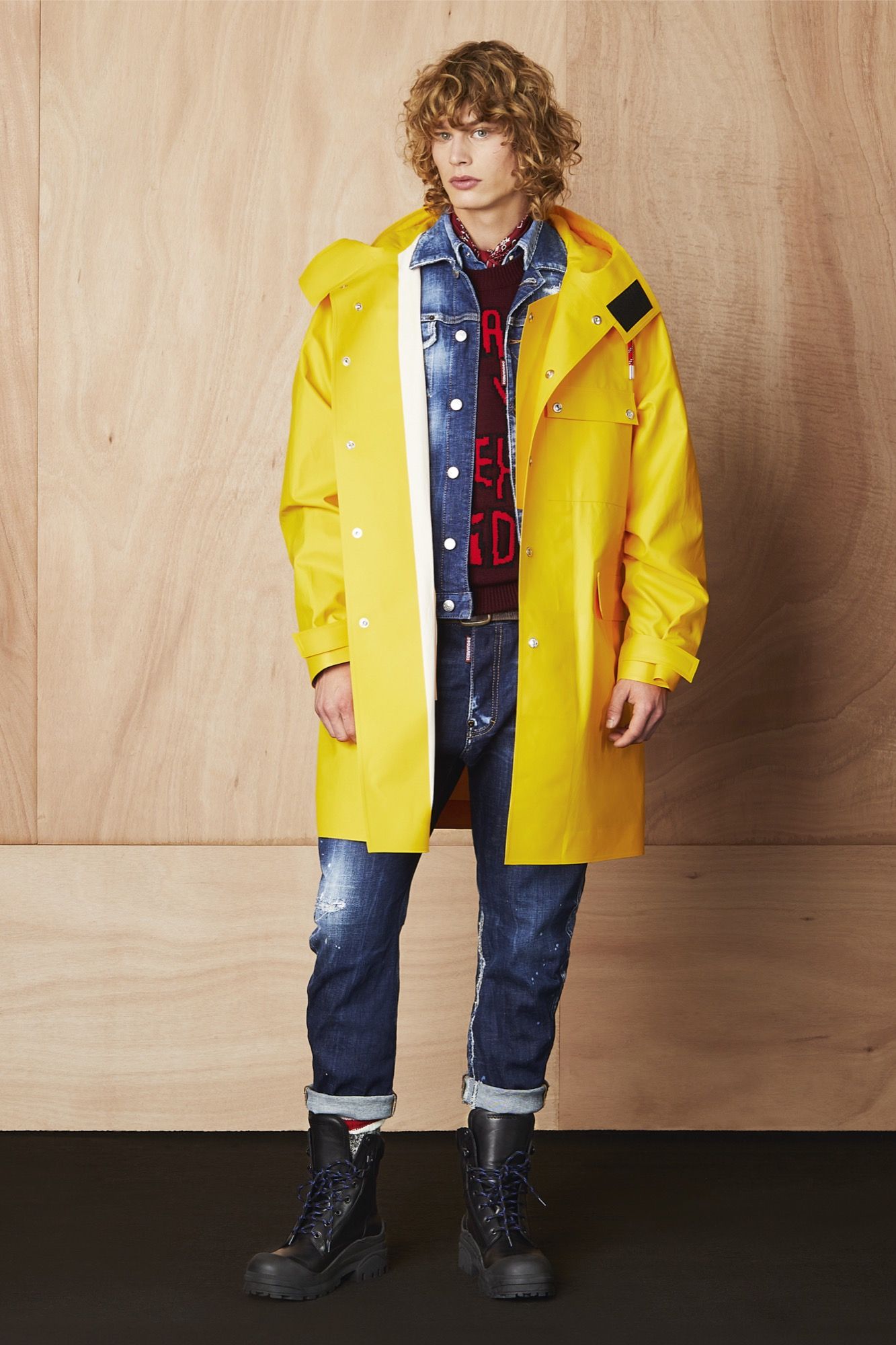 Among the novelties are blue and white checkered puffer jackets, denim jackets with Scottish inserts, knitwear featuring the enraged bear protagonist of the film, and bright yellow raincoats. The lookbook also includes outfits designed for nightlife, blending stylistic elements such as tutus and tuxedos with the distinctly streetstyle aesthetic that has always guided the brand's artistic direction. The collection is rich in details, particularly marked by scratches left by a bear, present on jackets, jeans, and scarves in equal measure. The footwear pays homage to the world of hiking, with warm interiors and functional silhouettes, while the bags capture the sharp and edgy spirit of DSQUARED2, from denim clutches to shoulder bags adorned with studs and accessories.