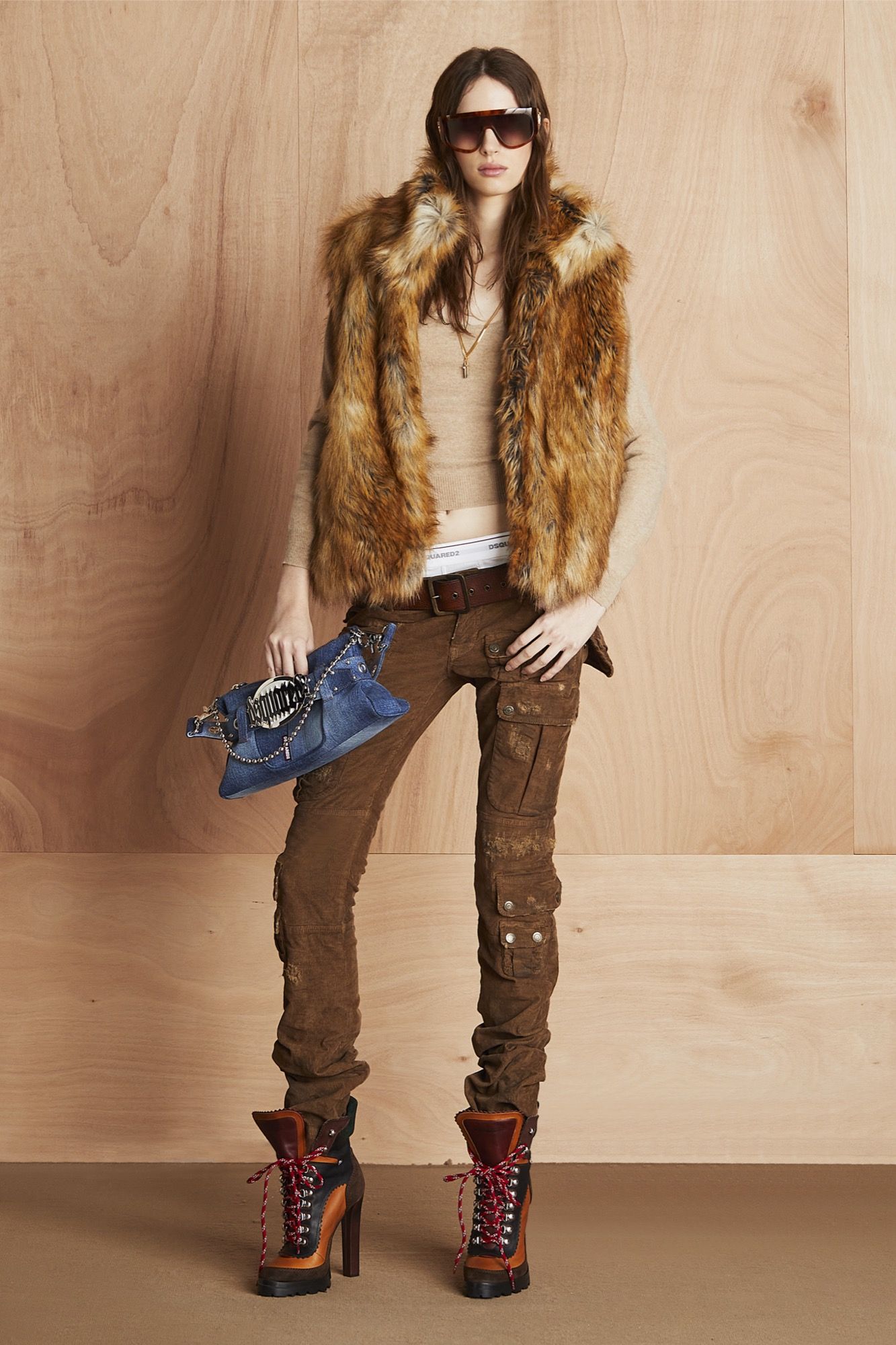 The inspiration for DSQUARED2's Pre Fall 2024 comes from nature, but in a cinematic context. After watching the comedy horror film Cocaine Bear, creative directors Dean and Dan Caten decided to create a capsule collection perfect for the film's setting—the woods. A couple, consisting of a man and a woman preparing for a weekend in a cabin, the protagonists of the two new collections wear looks perfect for classic outdoor activities, from fishing to hiking. In this Pre Fall collection, the typical Scottish pattern found in lumberjack outfits returns, paired with unexpected denim silhouettes and corduroy details. The color palette also looks to the world of Canadian landscapes: amber yellow, bark red, and rust, down to the ever-present forest green.