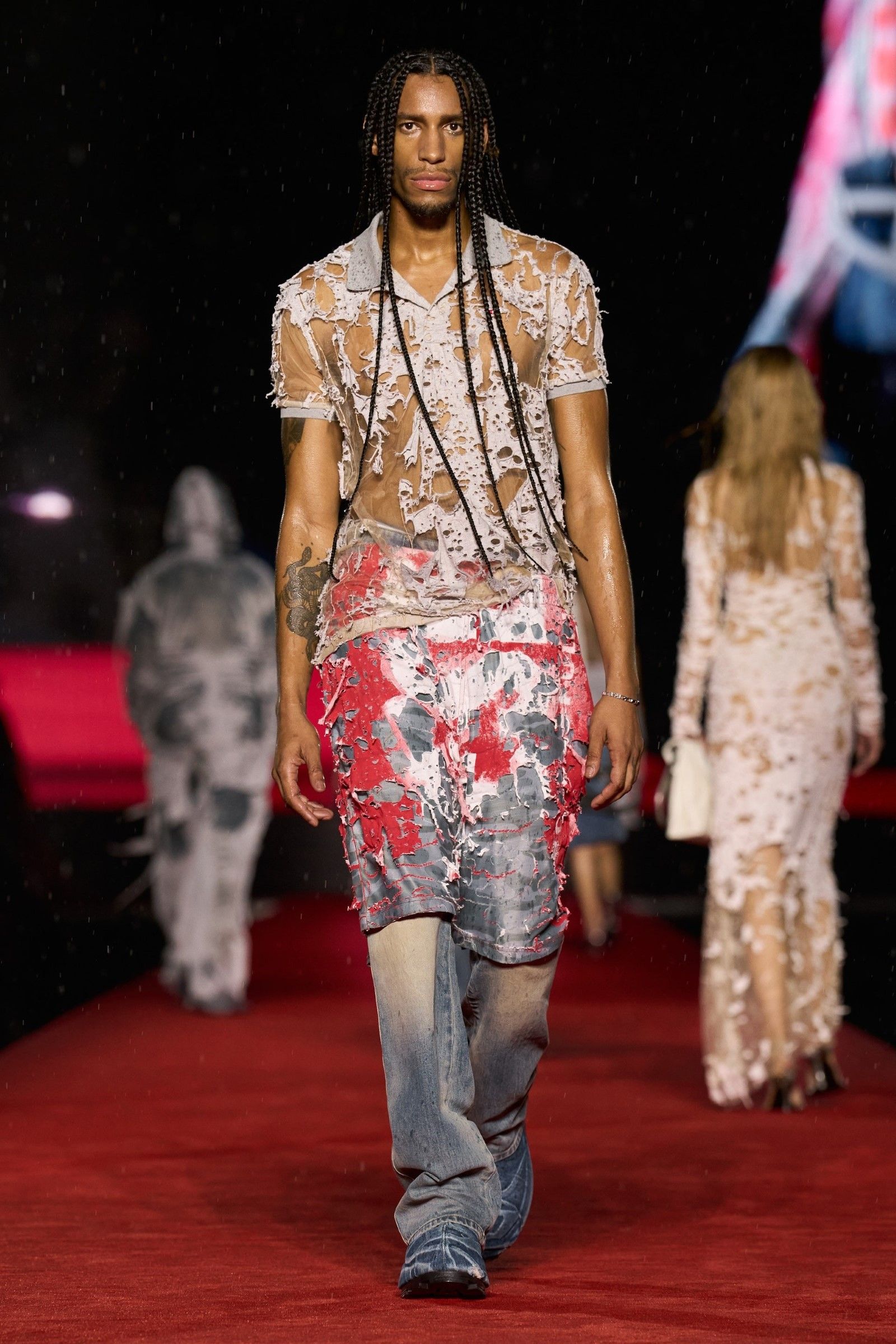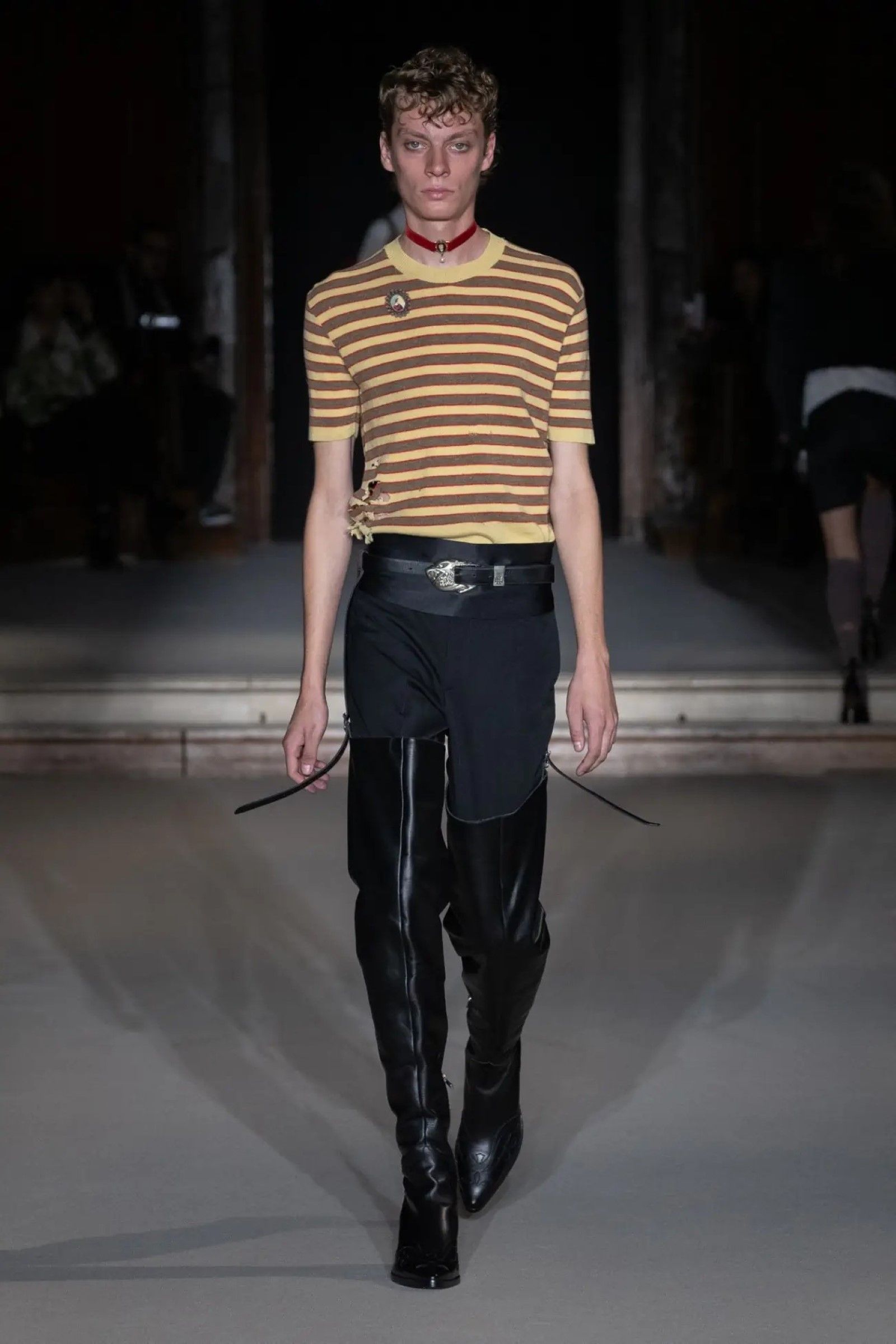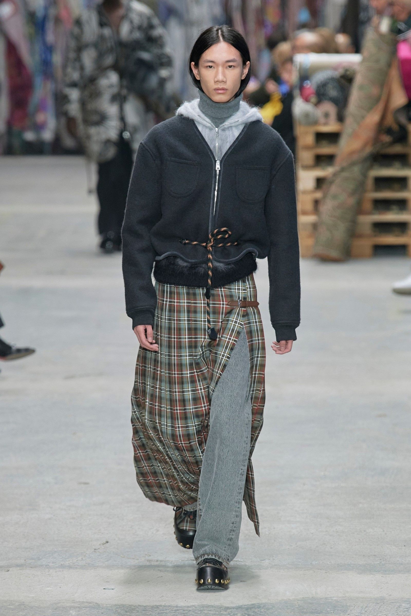 In this paragraph, we would like to talk about a more three-dimensional layering than commonly understood. That is, layering that not only involves the layering of the garments worn but also layering that takes into account deliberate transparency effects and what has seen the layers accumulate horizontally, like blocks of color, for example, in the blokecore trend that saw football jerseys with their colors and synthetic feel pairing with denim or even wool pants. In particular, this year layering has moved through textures, with combinations of thick and heavy materials and others light - elsewhere, there has been an exaltation of layering, with looks that pile up and mix numerous visible layers, highlighted by rich and opulent drapes or an emphasis on open buttons and cut-outs revealing the underlying clothes. The prize goes to Miu Miu with its wild mix of transparent skirts and blouses topped with huge textured leather blazers.