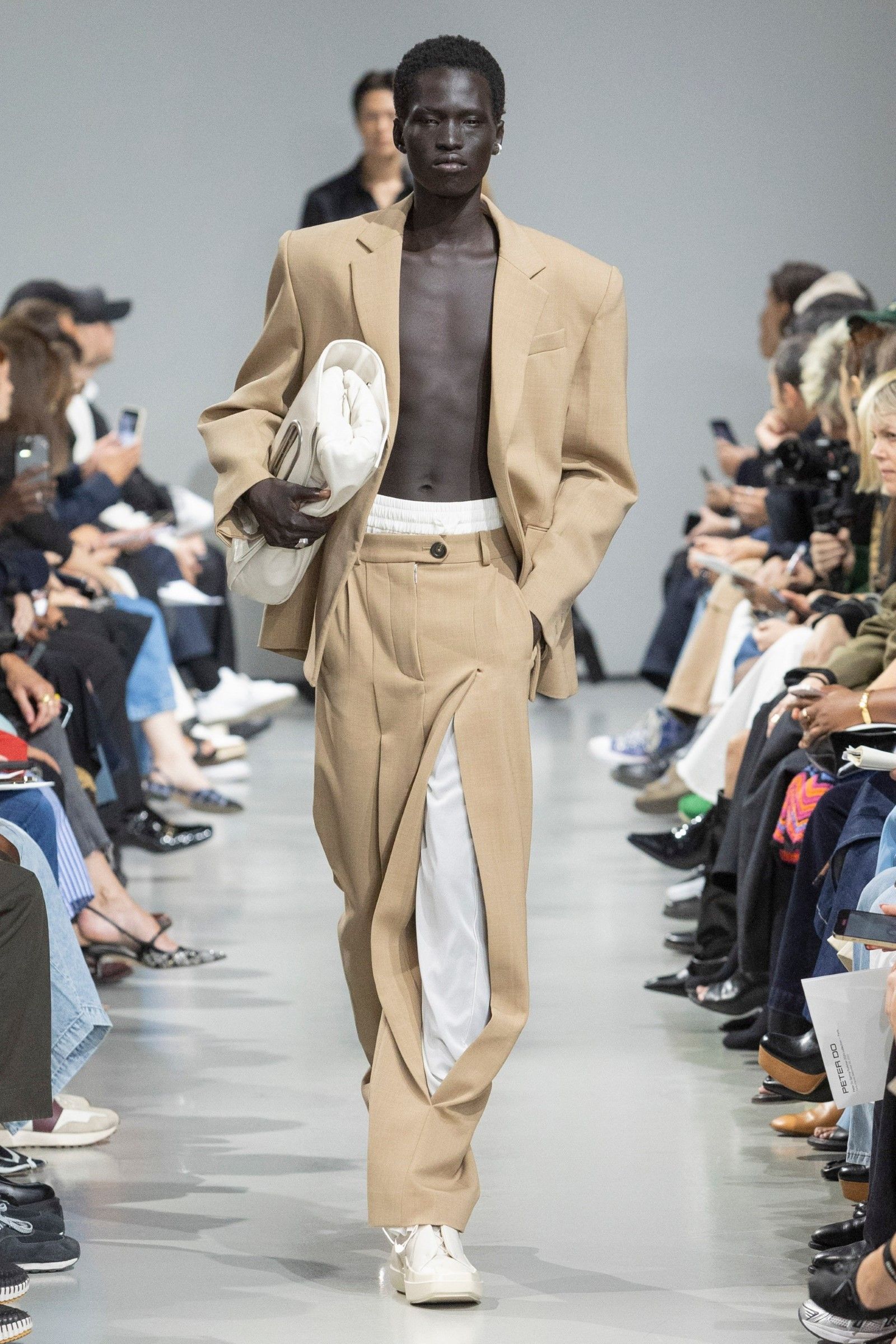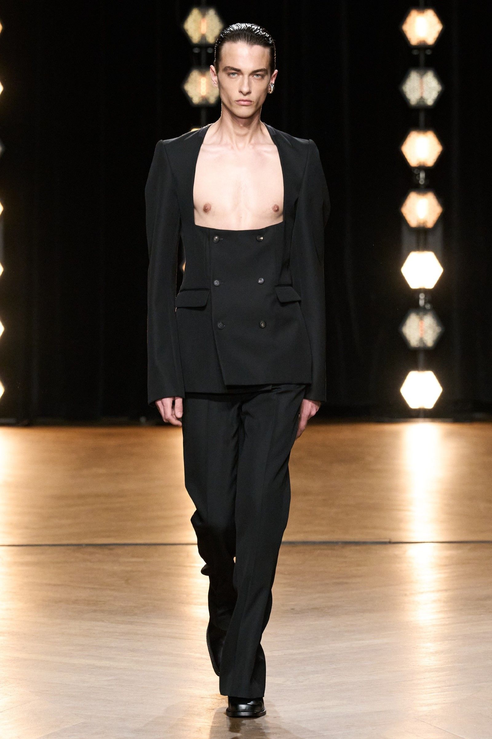 The Row, Miu Miu, Markgong – but also the gray suits that were everywhere at the last Paris Fashion Week, especially from Ottolinger, and those skirts and coats with a bon-ton flavor closer to the career woman than the party girl, the emphasis on coats, on light blue shirts. Not even the anarchic runways of Undercover and Vivienne Westwood could avoid this compelling call, while at Egonlab, the classic industry magnate's double-breasted jacket takes a vaguely perverse turn with a décolleté revealing men's chests. At Coperni, wearing a portable AI, even Naomi Campbell seemed ready for the next meeting in her pinstriped suit.