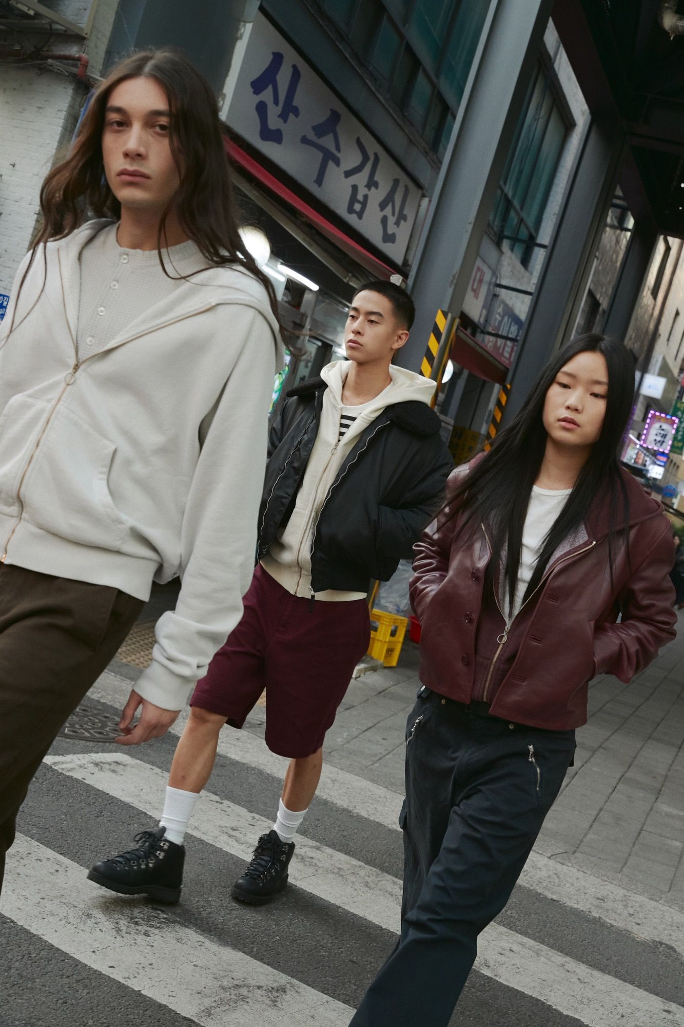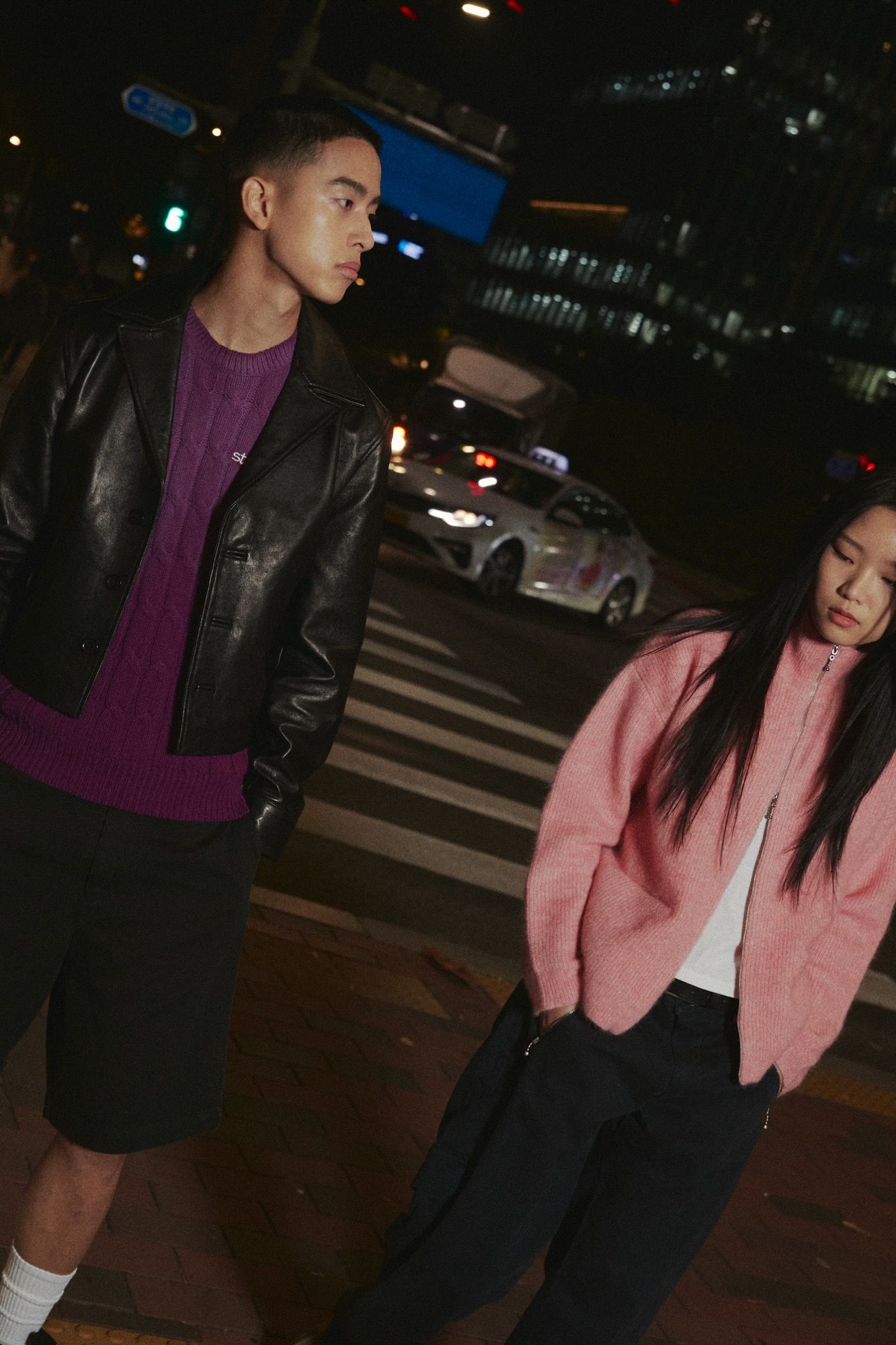 Garments are designed with meaning, seeking to evoke emotional responses through materials, attention to detail, and careful finishing of silhouettes. The prices of items in the new collection, ranging from €65 for a T-shirt to €398 for a leather jacket, reflect the craftsmanship of each piece, with cotton and wool as the main materials. This first collection, named Stopover Korea, features a total of 15 unisex pieces, classic patterns, and cropped details, reflecting their versatility as well as harmony in combinations. All STTOWN pieces are produced in limited quantities in Europe and Asia. For the FW23 campaign launch, STTOWN collab with Korean photographer Jinwoo Park, to capture the essence of the brand, creating a connection with the urban life of Seoul.