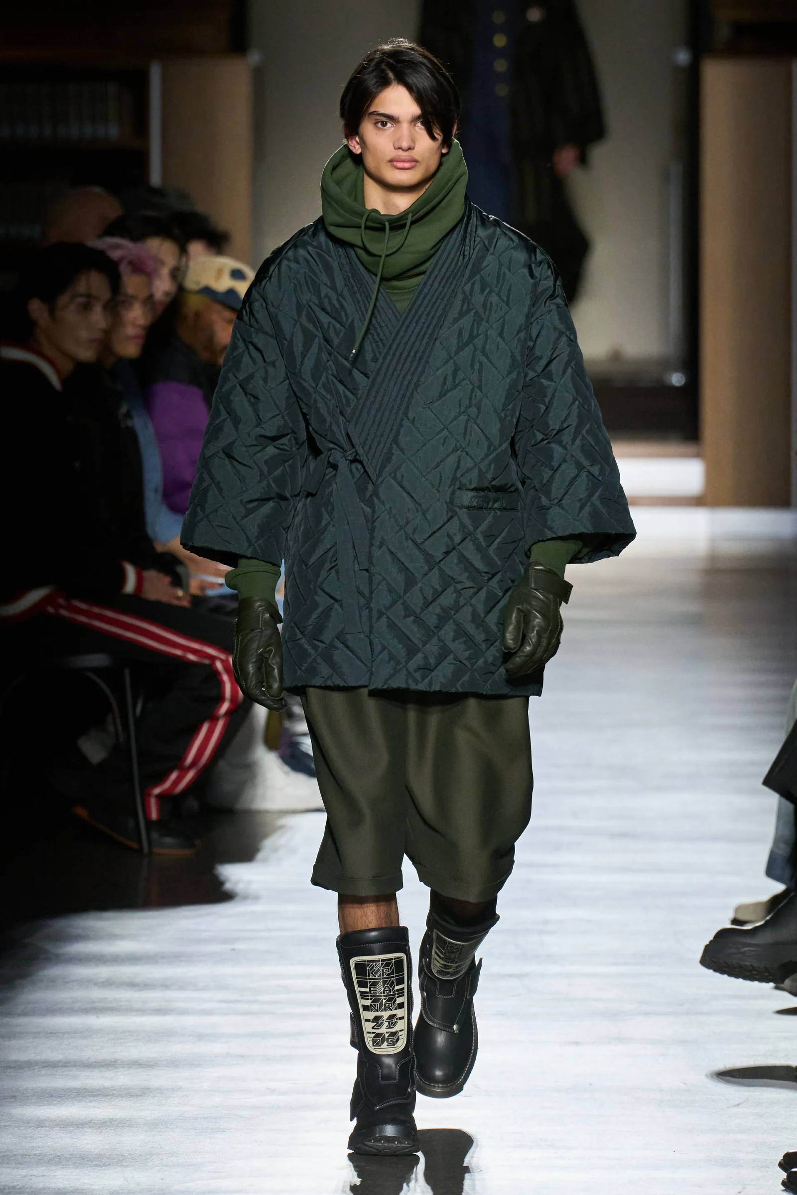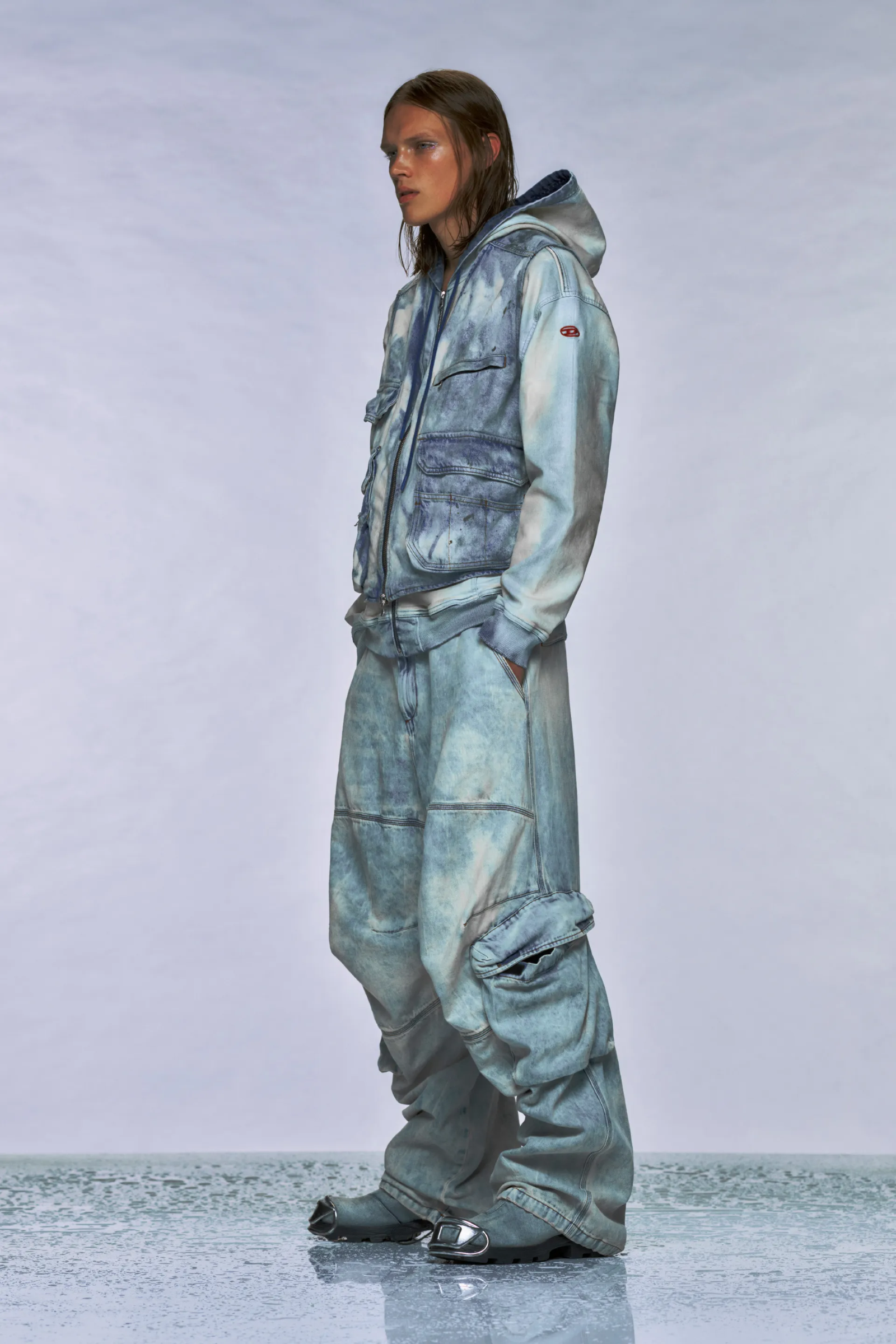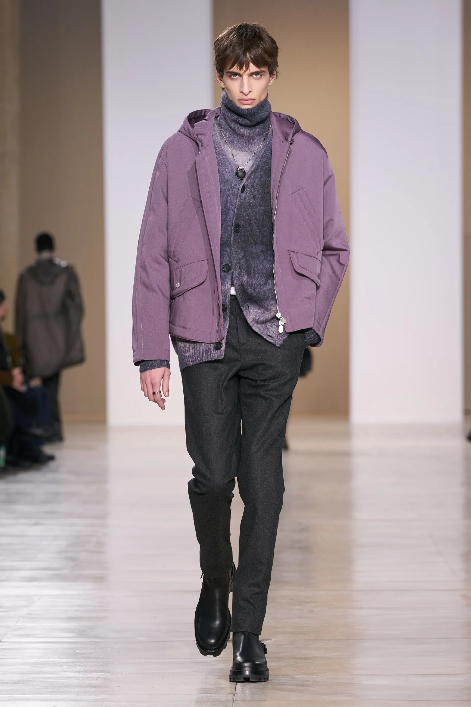 The same applies to hooded jackets, always present at Valentino with the same voluminous and "self-supporting" shapes in denim version. It's important to note here that we're not referring to jackets that externally appear as padded puffer jackets but adopt the model of the Carhartt WIP Active Jacket. Similar operations have been carried out by Dion Lee, Hermès, Louis Vuitton, and Our Legacy for the Stussy collection; more daringly, brands like Auralee, Balenciaga, Doublet, and MSGM have turned the oversized zip-up into a genuine outerwear piece (the best was Ryota Iwai of Auralee, who paired it with a formal suit), while Nigo, for Kenzo, used a neoprene-like material for a high-necked hoodie without a hood. The change, considering that many brands still don't know how to pull the hoodie out of the category of easy cash grabs, is more than welcome - perhaps it will be the cornerstone of that new contemporary sartorial wardrobe that many menswear designers are talking about today.
