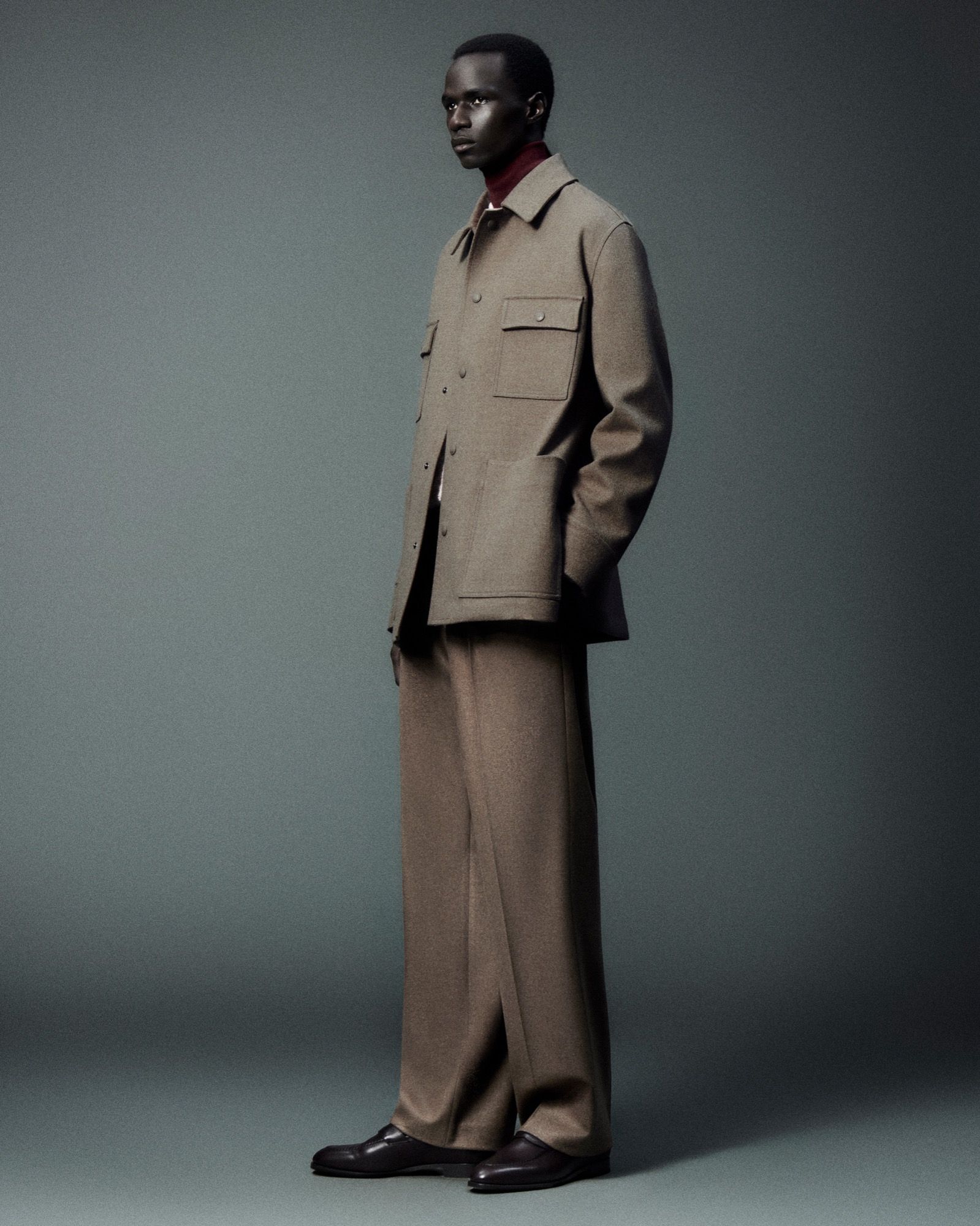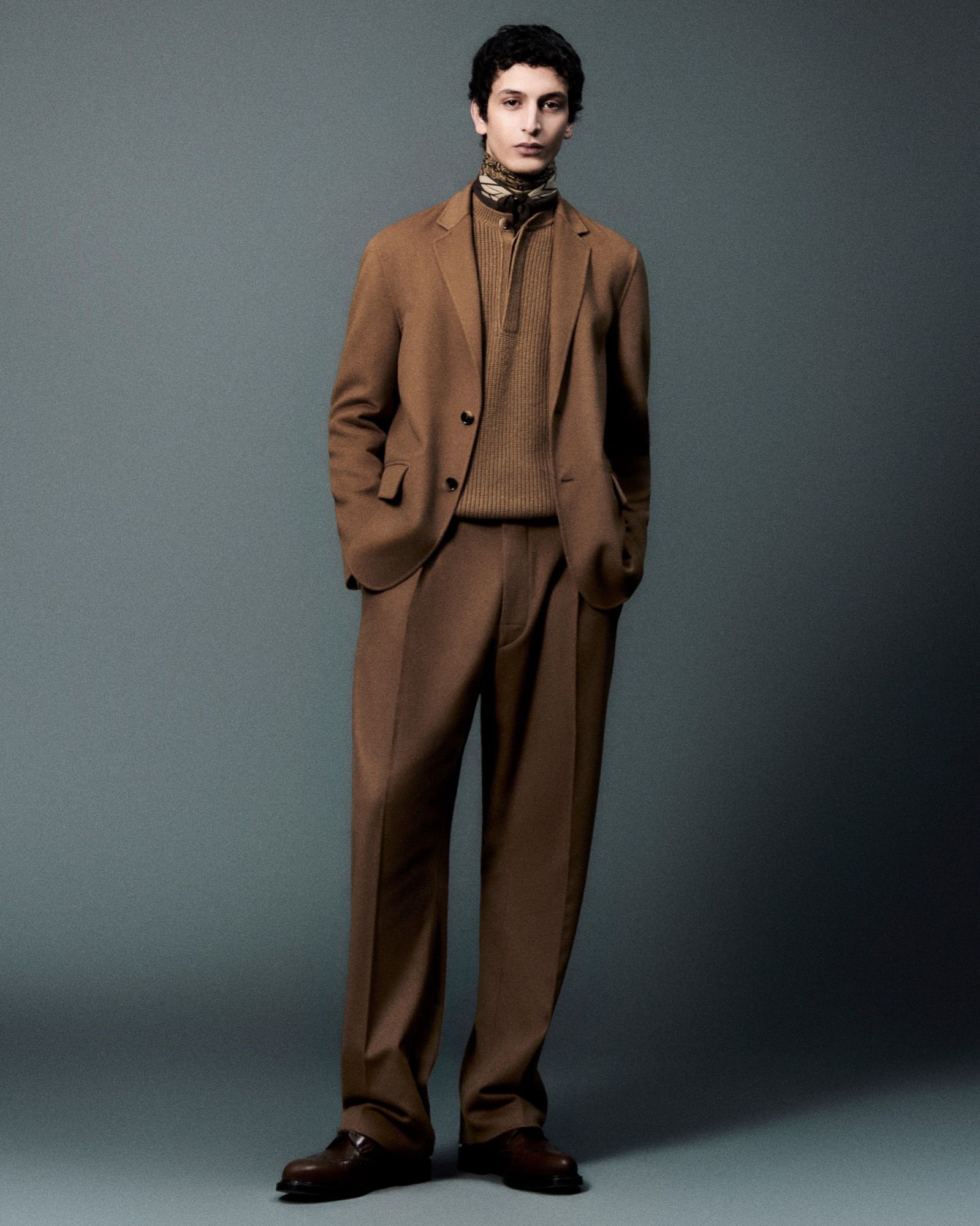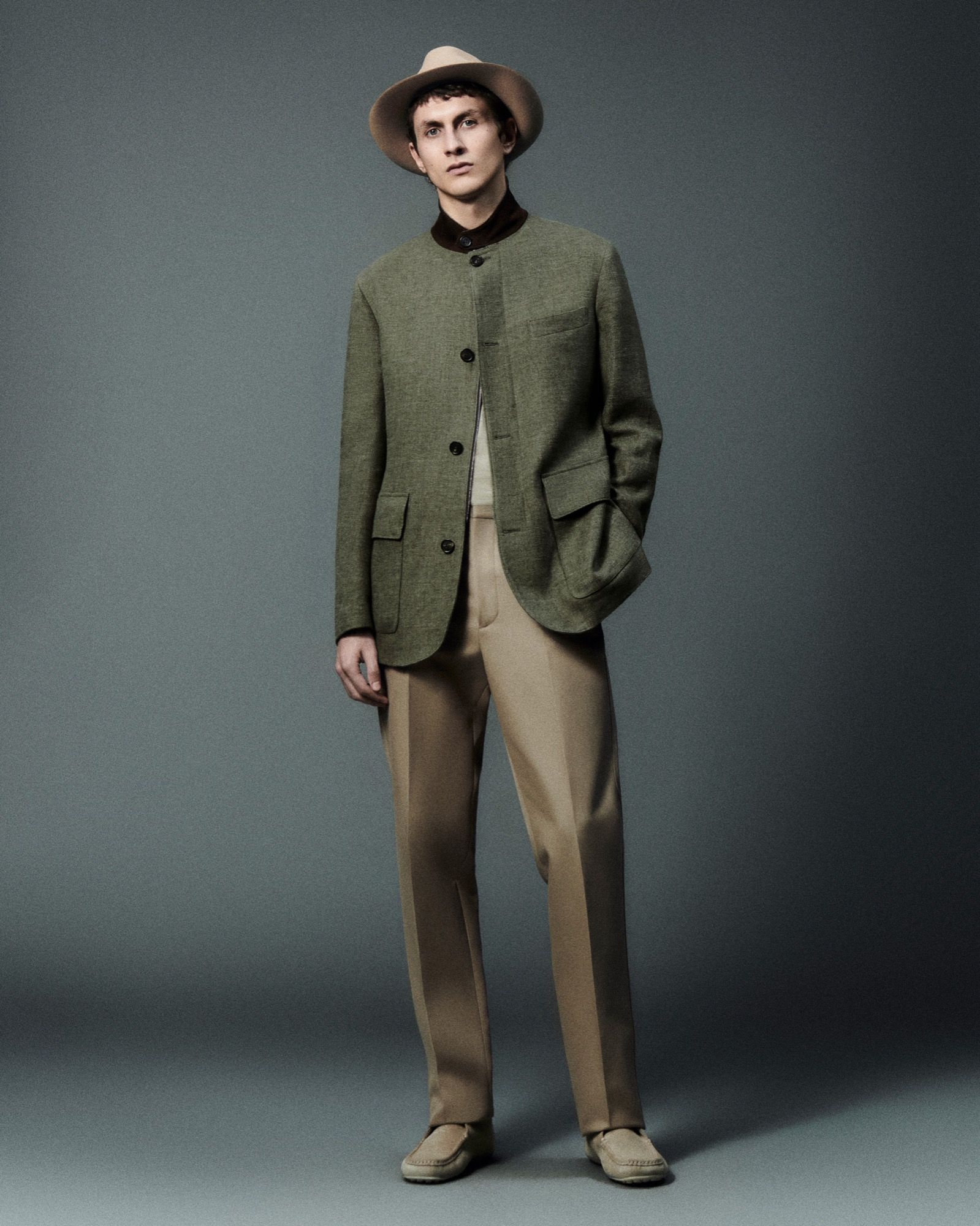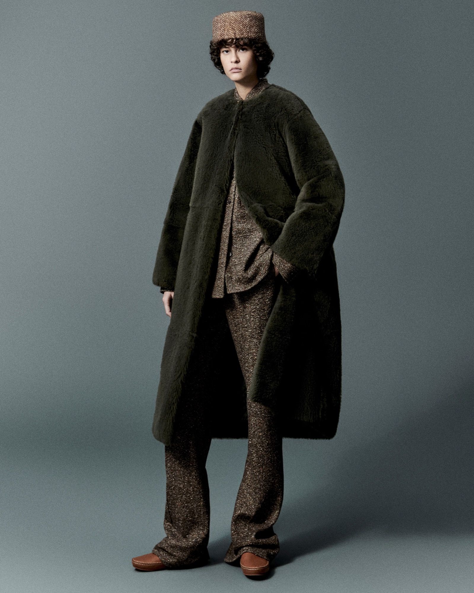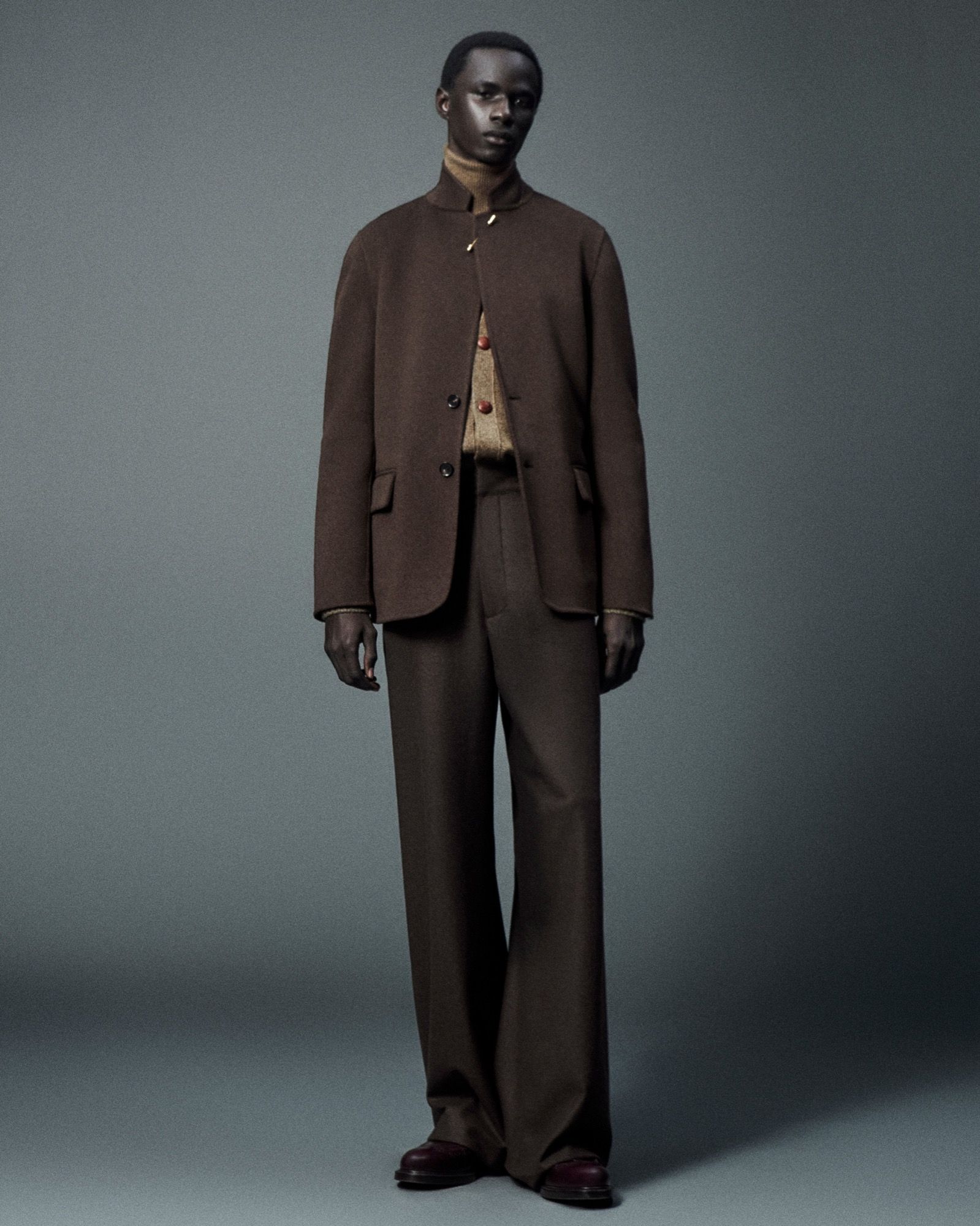 Unveiling the new collection Fall Winter 2024 - 2025, Loro Piana brings the brand's heritage back into the spotlight. Starting from the thistle flower, an element that has been part of the Maison's iconic coat of arms since 1951 and traditionally used for cashmere processing, the collection delves into some of the main themes in Loro Piana's long history, from tailoring know-how to textile technology. The Fall Winter 2024 - 2025 Men's and Women's collections once again explore the Maison's excellences, including Cashmere and Vicuña, as well as two wools that are rediscovered and reintroduced: the New Zealand Black Sheep® and the Sopra Visso wool from the Sibillini Mountains in the Marche region. The pairings and details recall the wardrobe and tastes of Sergio and Pier Luigi Loro Piana; among them are thistle-shaped pins, reminiscent of how Sergio stored jackets: collar up, closed and pinned lapels to maintain the softness of the fold.