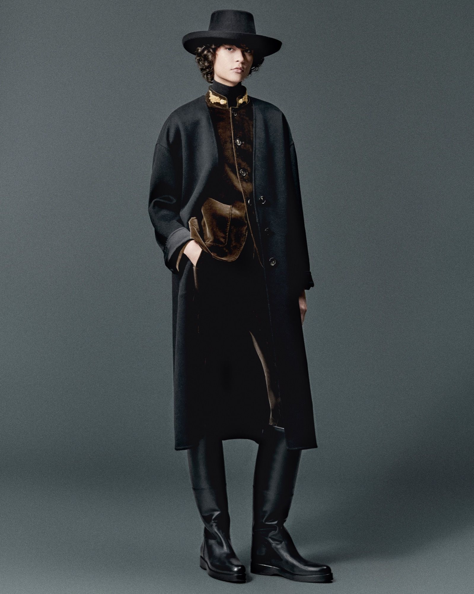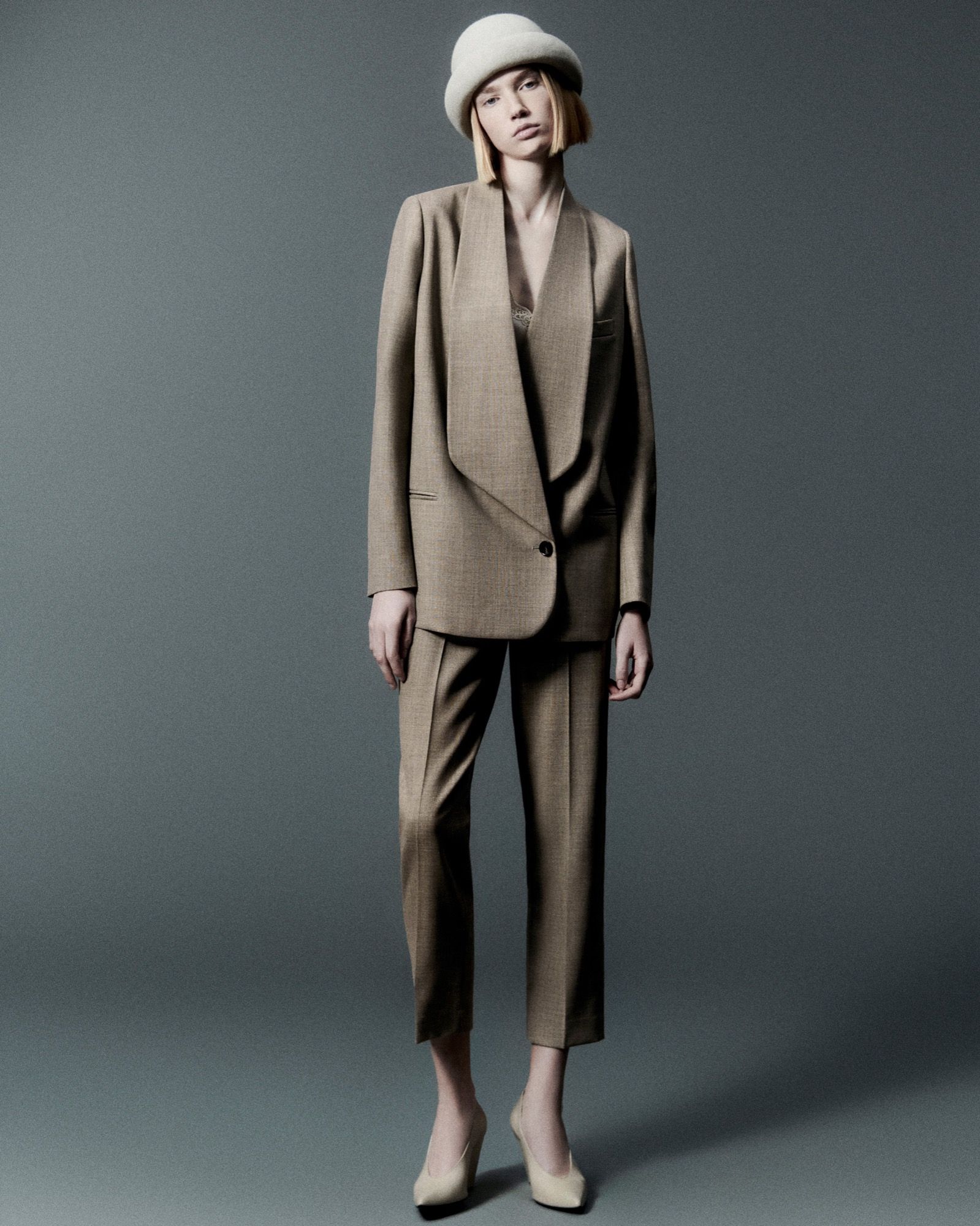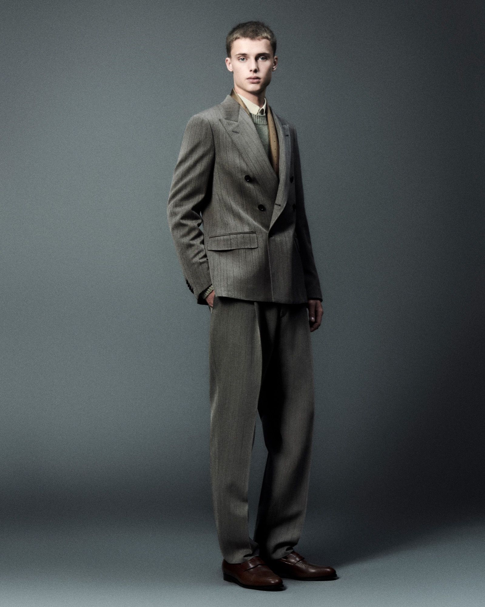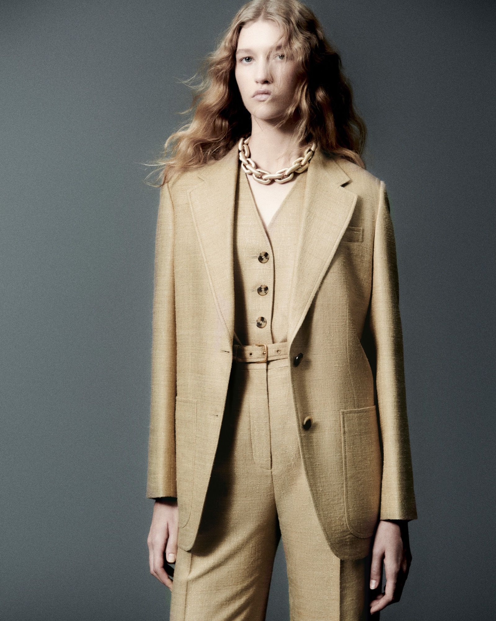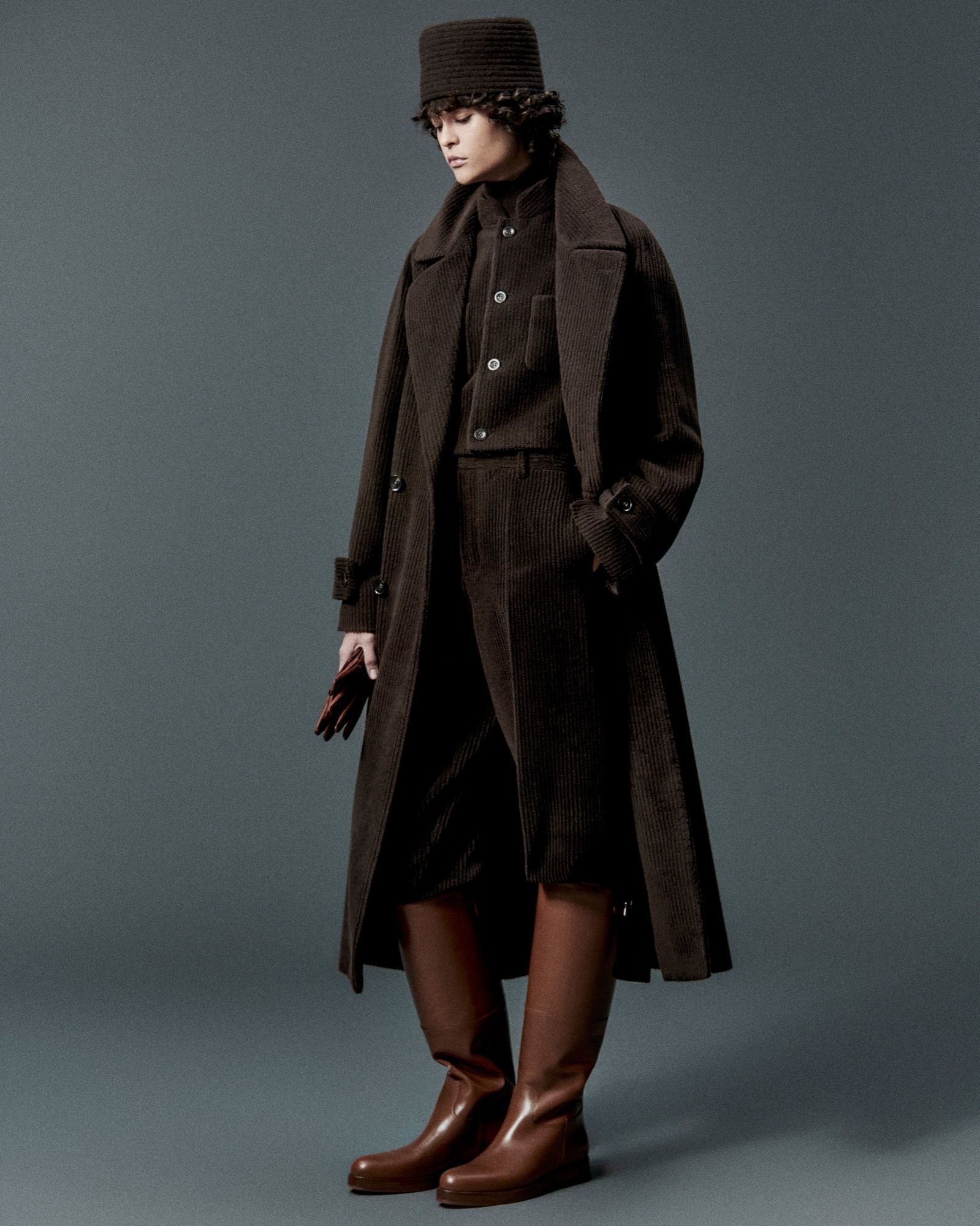 Unveiling the new collection Fall Winter 2024 - 2025, Loro Piana brings the brand's heritage back into the spotlight. Starting from the thistle flower, an element that has been part of the Maison's iconic coat of arms since 1951 and traditionally used for cashmere processing, the collection delves into some of the main themes in Loro Piana's long history, from tailoring know-how to textile technology. The Fall Winter 2024 - 2025 Men's and Women's collections once again explore the Maison's excellences, including Cashmere and Vicuña, as well as two wools that are rediscovered and reintroduced: the New Zealand Black Sheep® and the Sopra Visso wool from the Sibillini Mountains in the Marche region. The pairings and details recall the wardrobe and tastes of Sergio and Pier Luigi Loro Piana; among them are thistle-shaped pins, reminiscent of how Sergio stored jackets: collar up, closed and pinned lapels to maintain the softness of the fold.