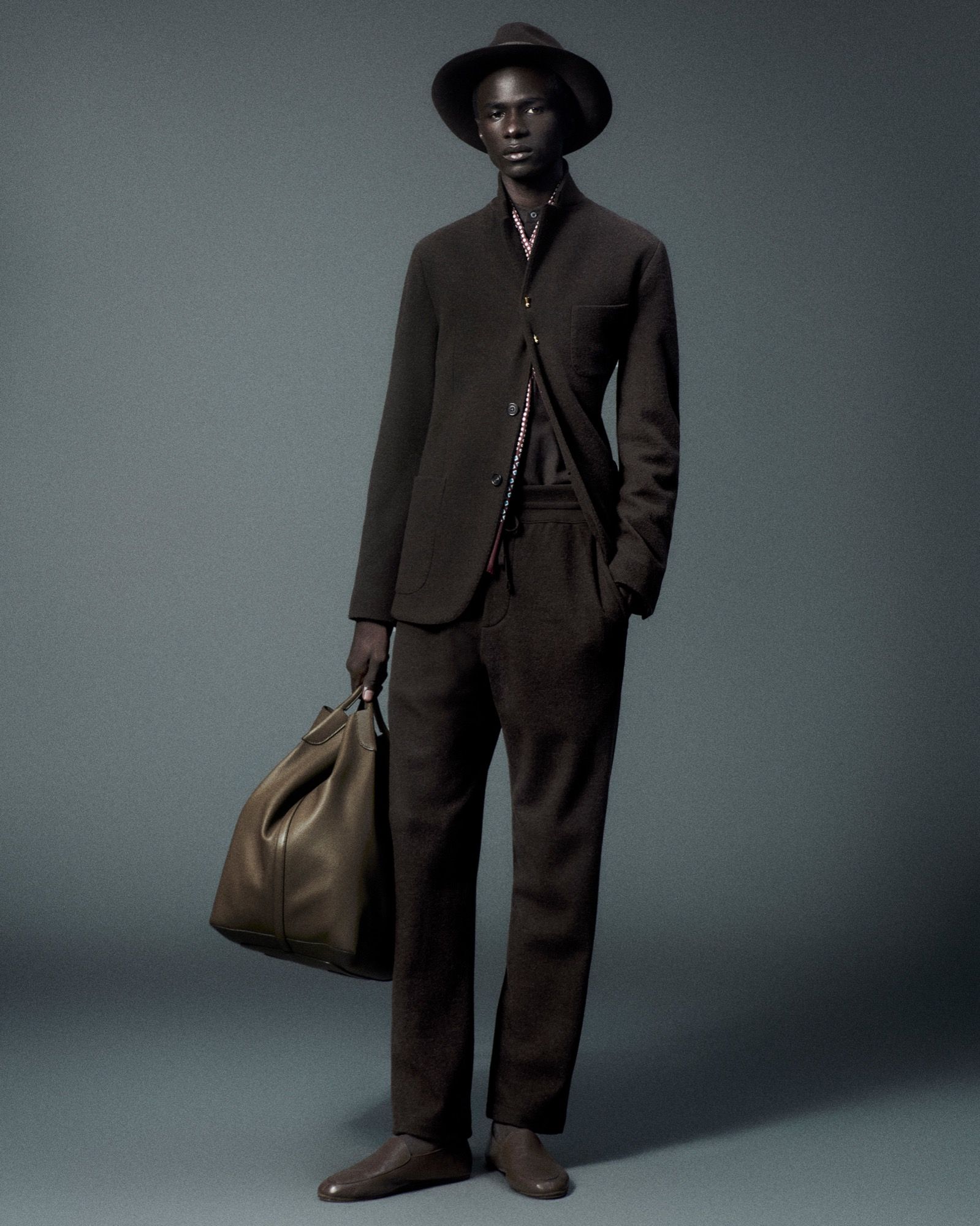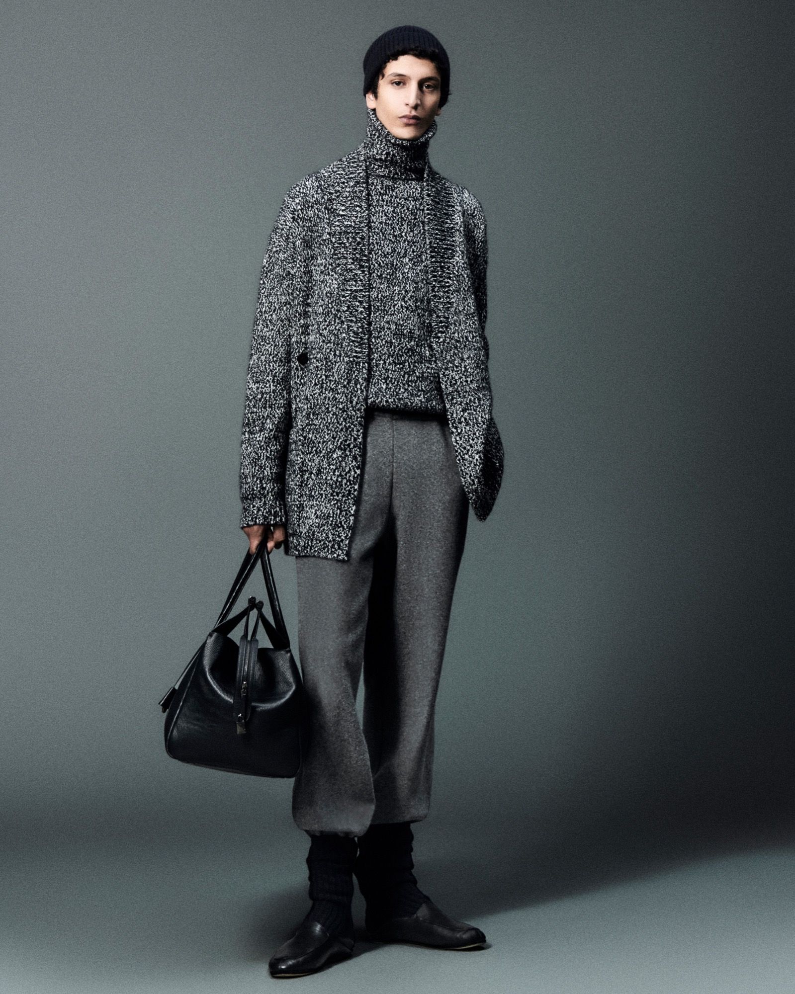 The new collection offers softness and comfort with enveloping fabrics and informal amplitudes, with the field jacket, the Roadster, and the Spagna elegantly embodying the Maison's passion for outdoor life. For the women's line, Loro Piana has created anoraks, trenches, and blousons perfect for those who love to combine genderless silhouettes with a feminine style, presented in pleated skirts, knitted dresses, and jacquard. Among the accessories stand out the oversized Bale bag, in hobo version, the Loom, offered in new materials, and the Duo jewelry line that harmoniously alternates brass and leather. In addition to a special dedication to the thistle flower, the new collection leverages functionality and comfort on an extraordinary journey through fibers, fabrics, shapes, and silhouettes, to tell a unique know-how made of expertise and uncompromising quality. Graphene, a membrane with exceptional thermoconductive properties that evenly distributes body heat, has been used for the most high-performance garments in the Collection, ensuring maximum functionality and casual elegance even in sports and leisure time.