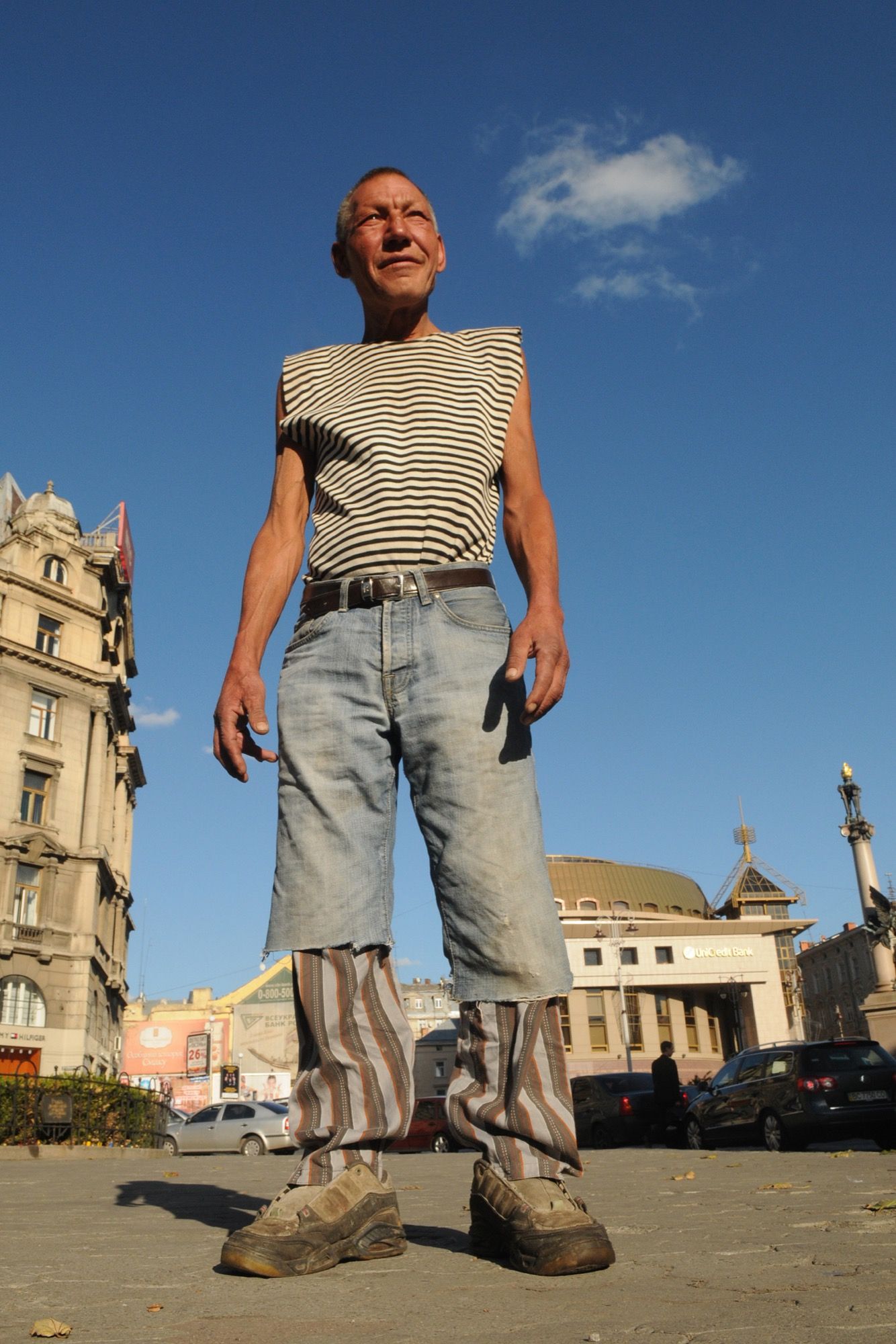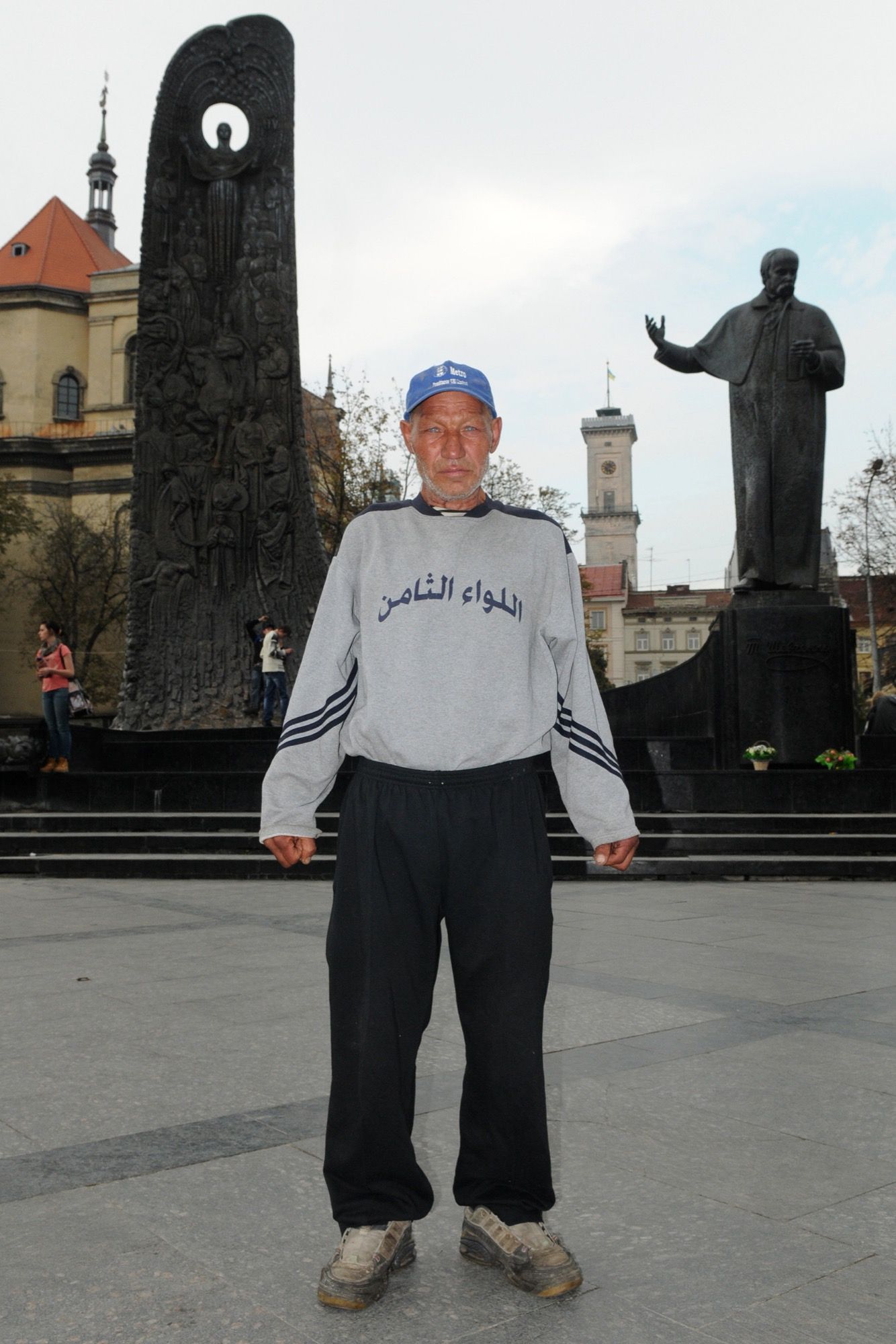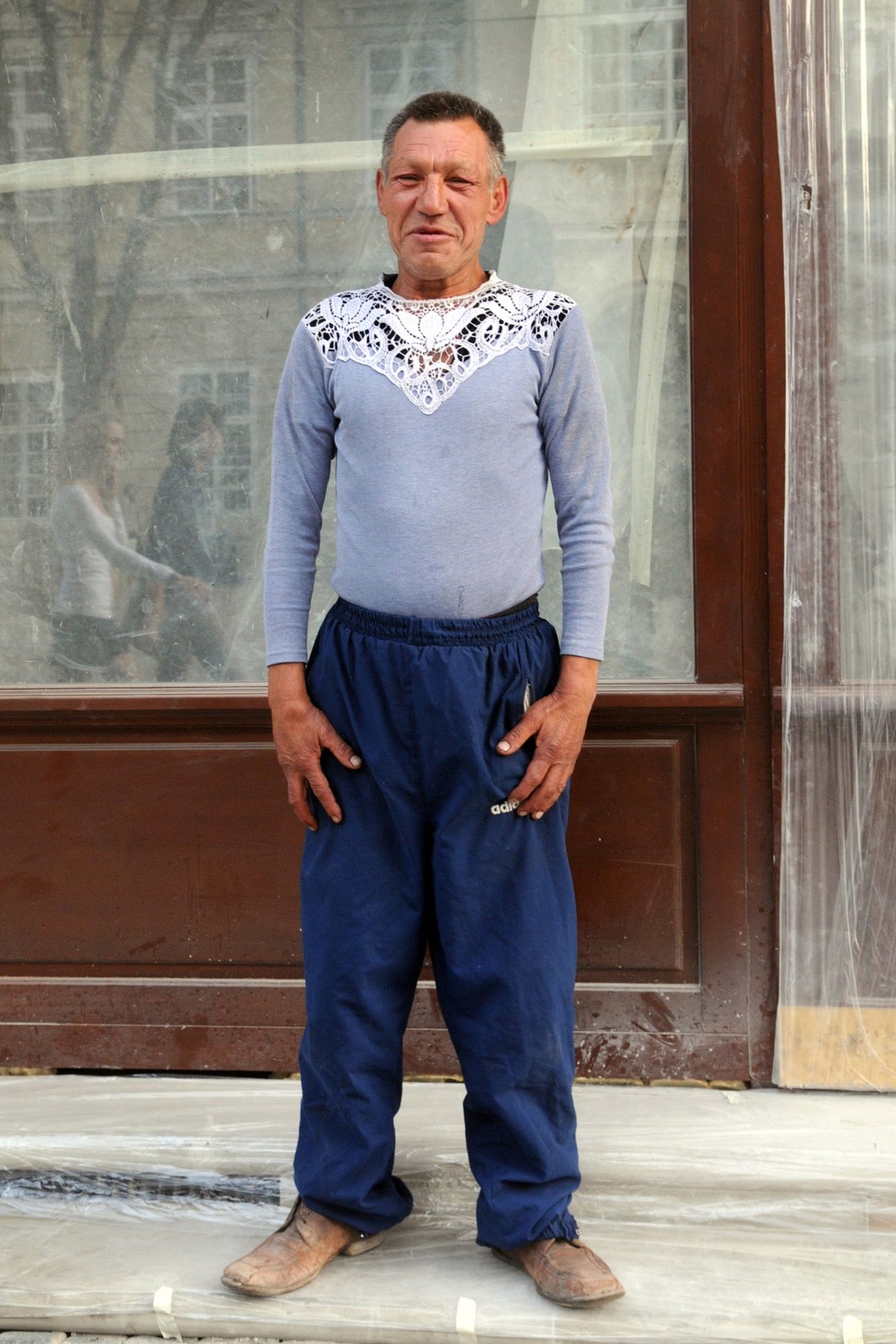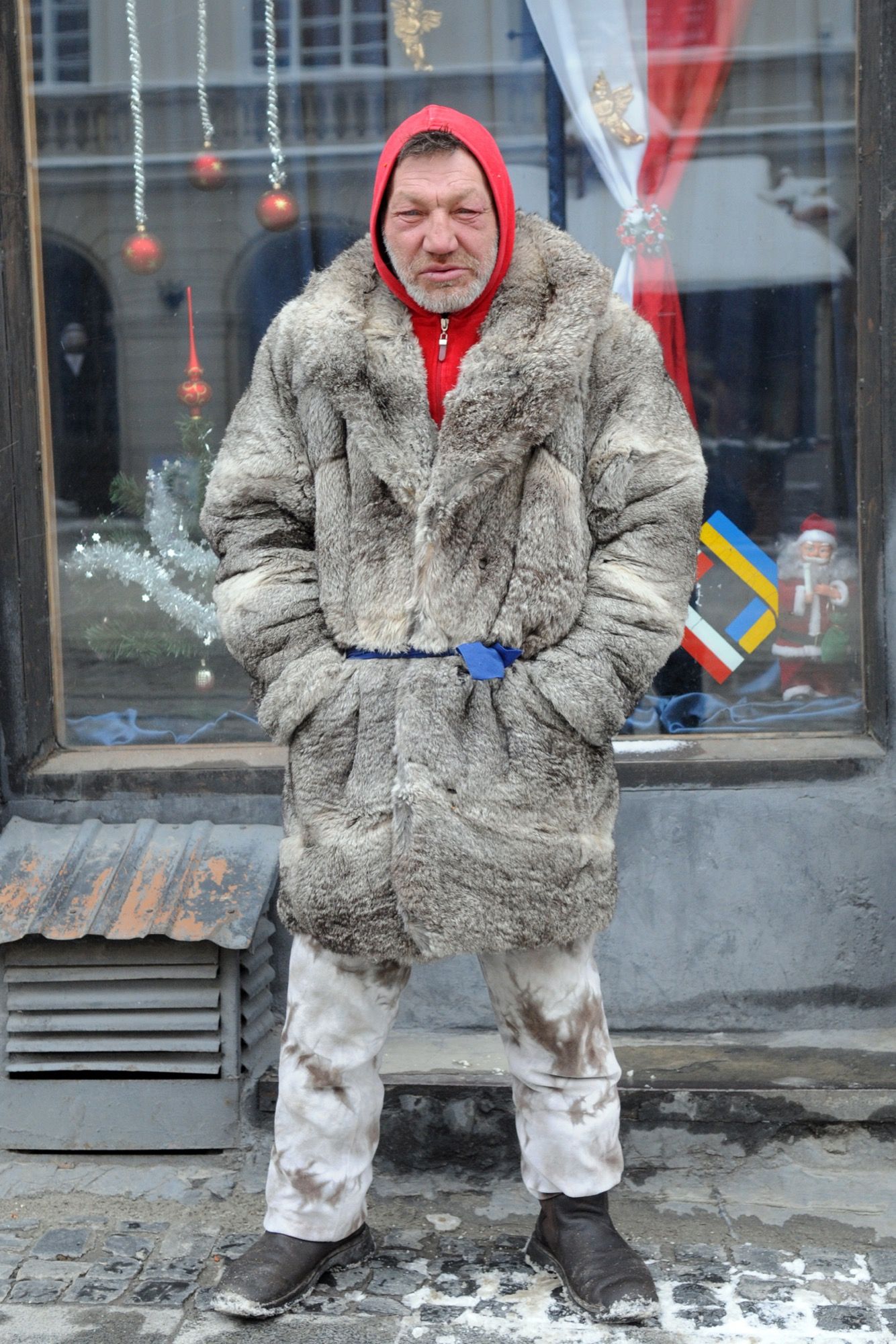 Describing how he met Slavik, the man protagonist of the collection realized over two years, Dyachyshyn points out that the city center of Lviv is populated by tourists and eccentrics. «I kept running into him on the street, but I didn't yet know what would come out of it,» he says. Slavik’s Fashion follows the His Dreams project, centered around another homeless character roaming the Ukrainian streets, Andrew. «It was an important project so I didn't want to start something new hastily,» the photographer emphasizes, but Slavik's exuberant and unexpected style immediately struck him. «I noticed he was constantly changing, so I decided to collect his fashionable looks.» A true collection, the project realized by Dyachyshyn in the heart of Lviv documents the protagonist's outfits through casual encounters until he lost track of him. They didn't arrange to meet, he explains, his style was simply always interesting, so it didn't matter if he saw him once a week or once a month. «I believe Slavik wore the costumes for a reason: it was his performance, and the fact that someone noticed him made him happy,» Dyachyshyn adds, recounting how, at a certain point in the project, the two would search for each other on the streets of Lviv. «Sometimes, while going somewhere for work, I would hear behind me: 'Hey buddy, where have you been? I've been looking for you for two days'.»