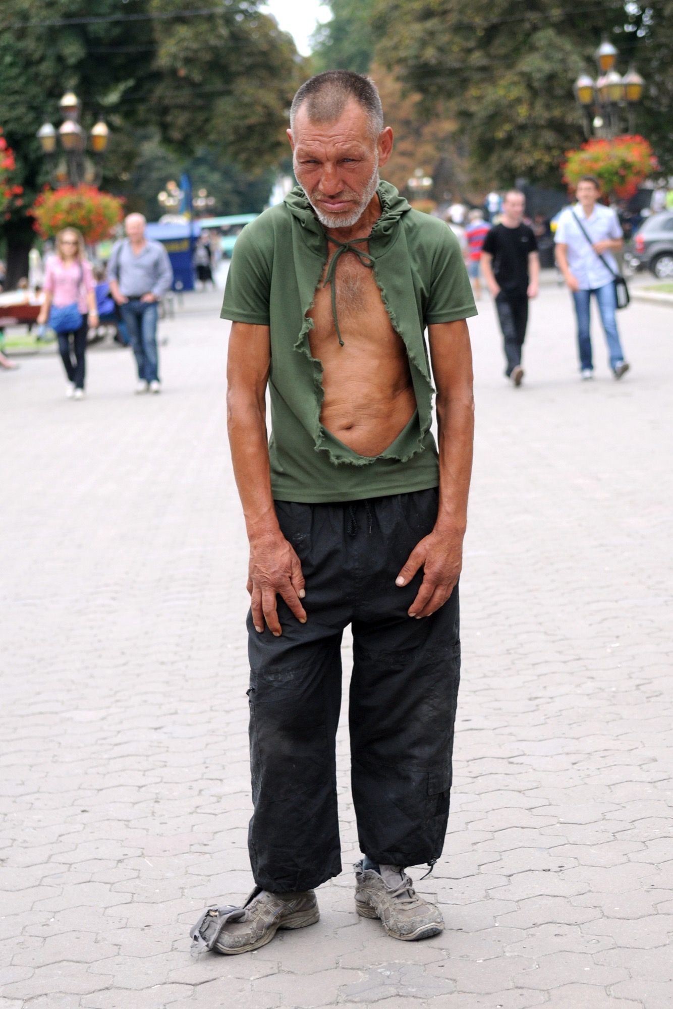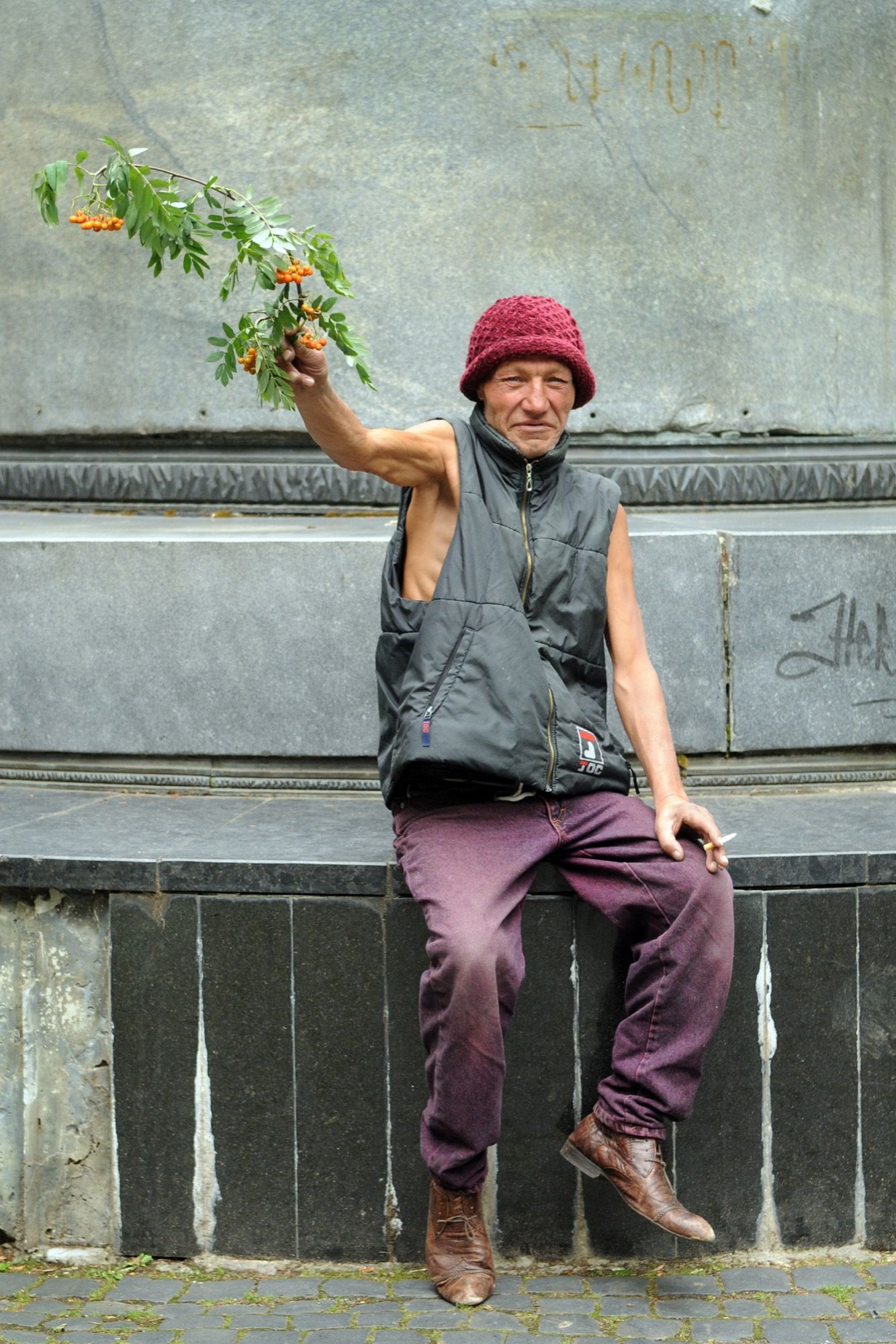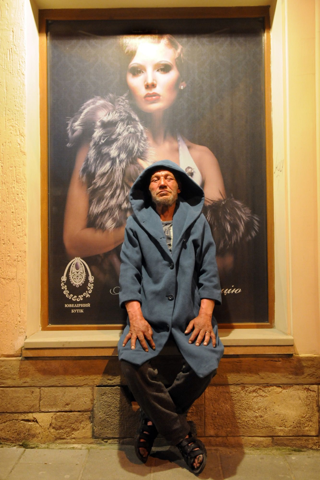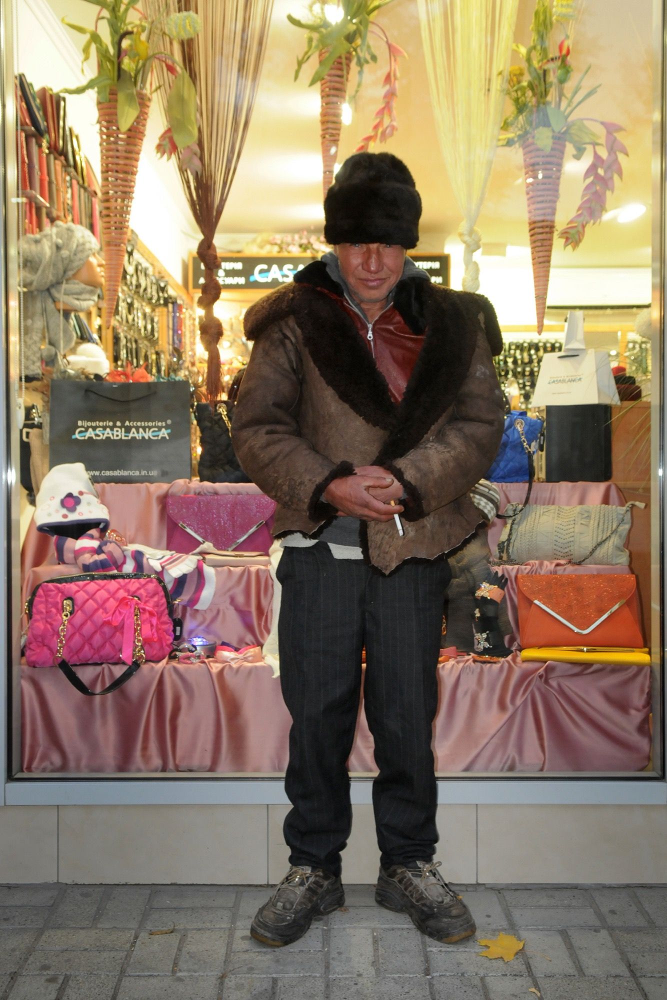 Describing how he met Slavik, the man protagonist of the collection realized over two years, Dyachyshyn points out that the city center of Lviv is populated by tourists and eccentrics. «I kept running into him on the street, but I didn't yet know what would come out of it,» he says. Slavik’s Fashion follows the His Dreams project, centered around another homeless character roaming the Ukrainian streets, Andrew. «It was an important project so I didn't want to start something new hastily,» the photographer emphasizes, but Slavik's exuberant and unexpected style immediately struck him. «I noticed he was constantly changing, so I decided to collect his fashionable looks.» A true collection, the project realized by Dyachyshyn in the heart of Lviv documents the protagonist's outfits through casual encounters until he lost track of him. They didn't arrange to meet, he explains, his style was simply always interesting, so it didn't matter if he saw him once a week or once a month. «I believe Slavik wore the costumes for a reason: it was his performance, and the fact that someone noticed him made him happy,» Dyachyshyn adds, recounting how, at a certain point in the project, the two would search for each other on the streets of Lviv. «Sometimes, while going somewhere for work, I would hear behind me: 'Hey buddy, where have you been? I've been looking for you for two days'.»