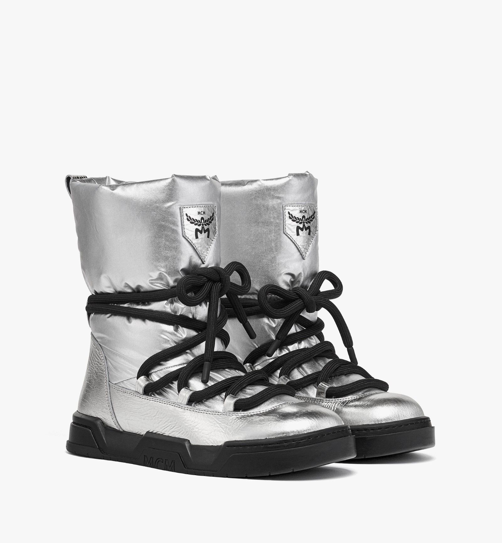 The collection also boasts a wide range of materials, from Denim Laurel Jacquard to Monogram Re-Nylon – as many technical innovations that have been translated into the ready-to-wear collection designed for everyday luxury and a lifestyle as comfortable as it is luxurious. Footwear options include the Monogrammed Lauretos Loafers, mules also covered with the monogram, and metallic snow boots. Within the collection, there is also the collaboration with Harper Collective, co-founded by Jaden Smith and Sebastian Manes, a visionary brand in the luggage and lifestyle sector, known for its commitment to ecology and innovation. «They are a very young brand but they have a truly engaging story», Cheung said. «And they produce truly incredible suitcases. We are a travel brand and therefore collaborating was natural». The union of forces between MCM and Harper Collective marks a new era of eco-sustainable luxury through the creation of three different luggage silhouettes designed to offer consumers a conscious choice for their future travels. Sabine Brunner, President and Brand Manager at MCM, encapsulates the brand's ethos, adding: «MCM was founded with a spirit of innovation and independence, redefining luxury since its inception. With a commitment to craftsmanship, versatility, and inclusivity, MCM allows people to explore the world without boundaries, physically, virtually, and beyond».
