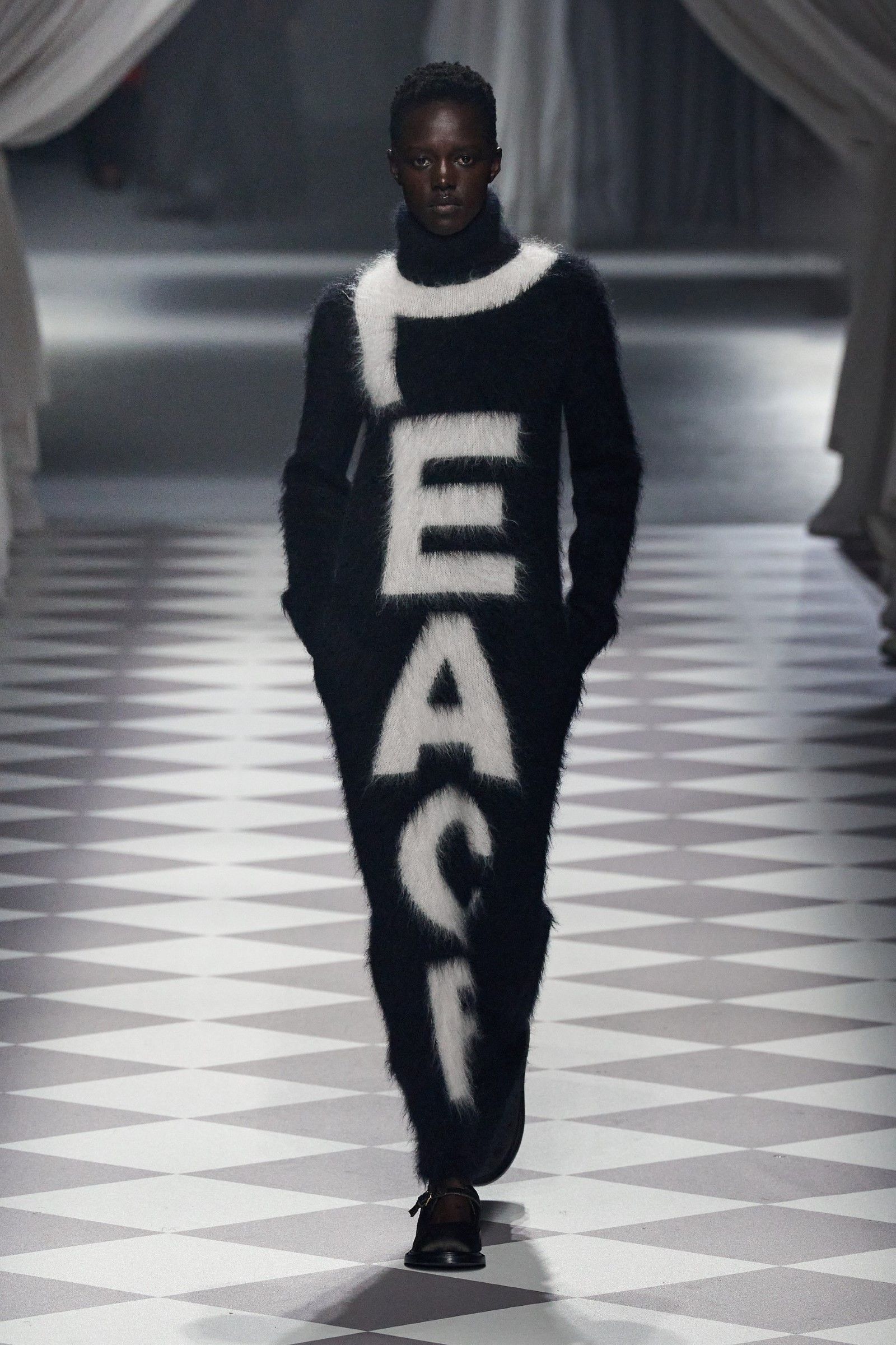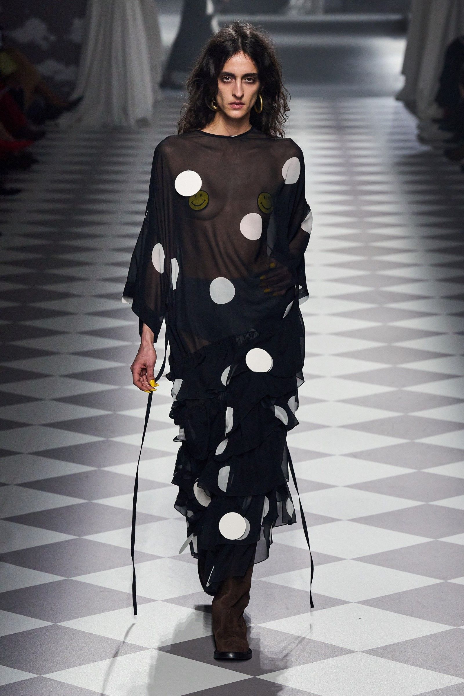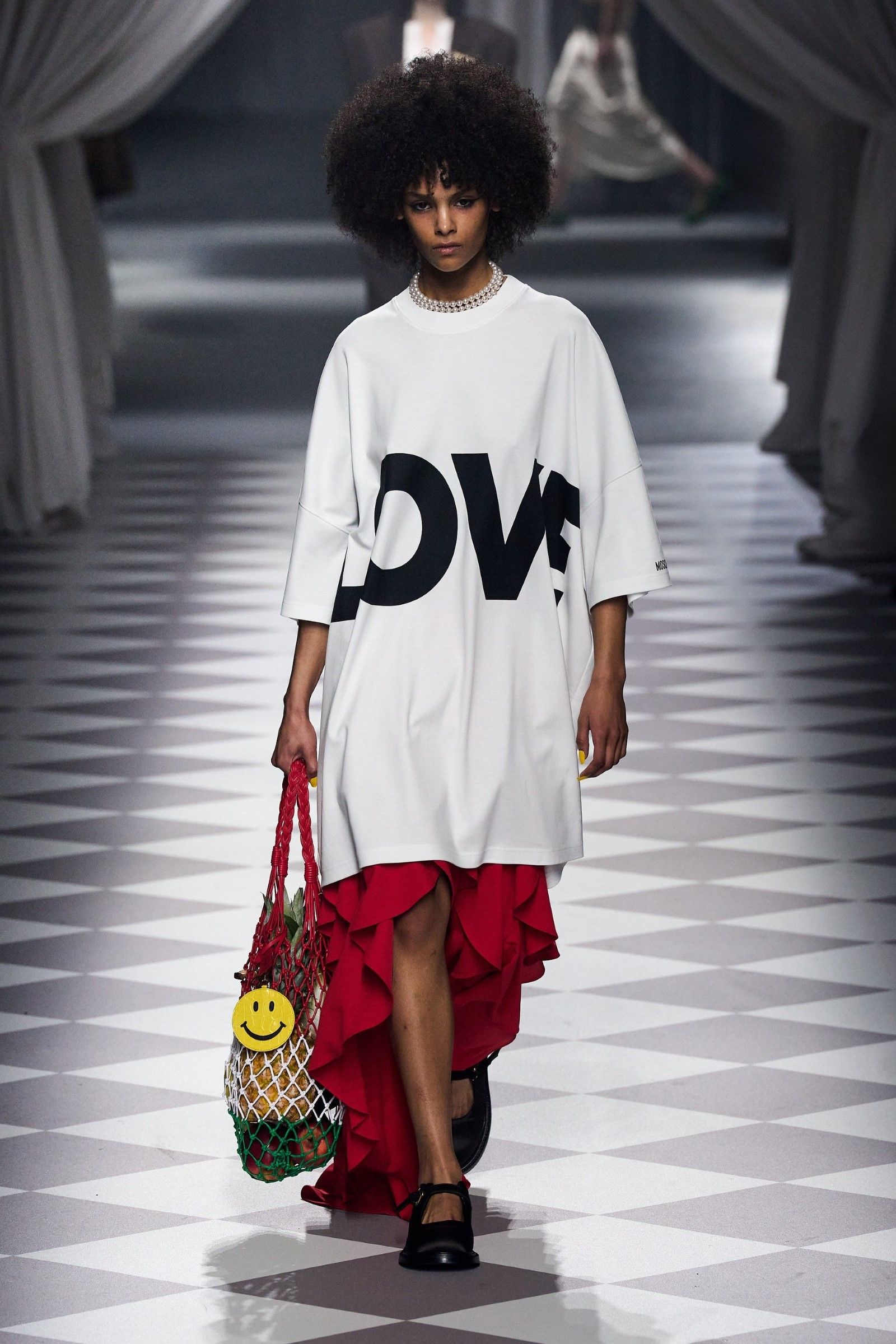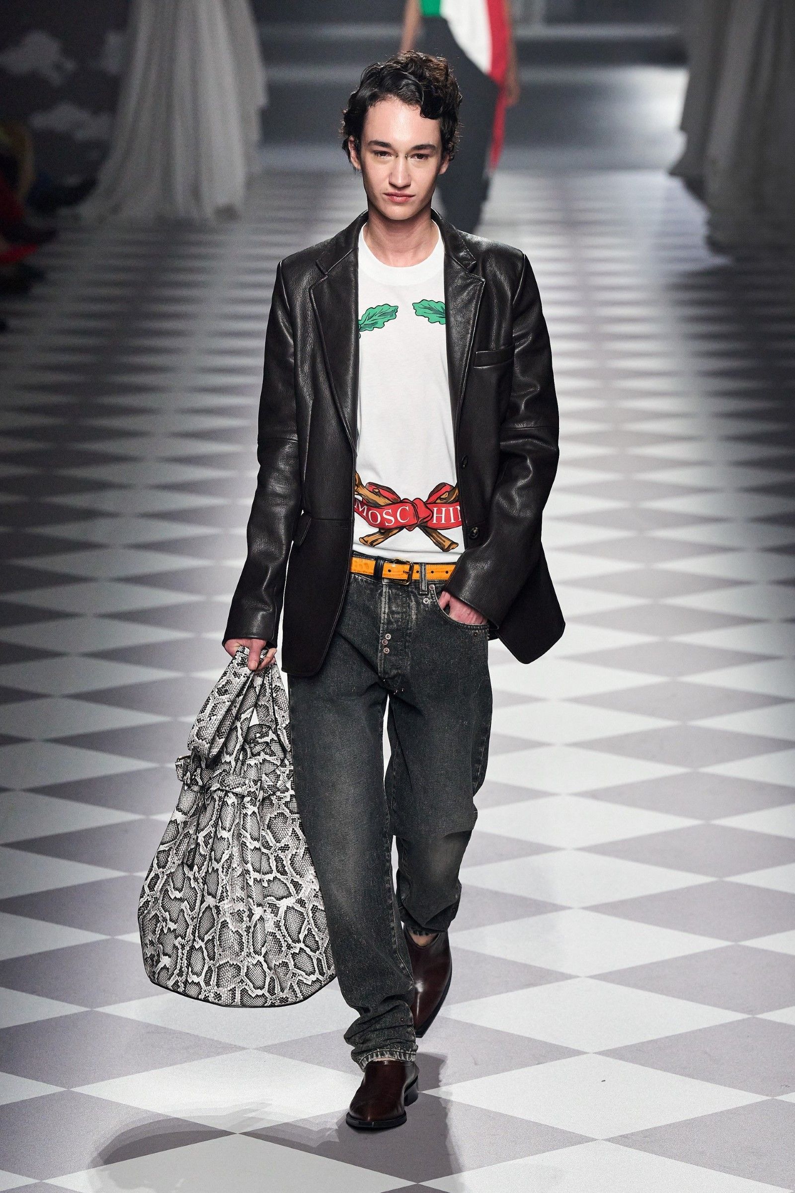 The big question: what is Moschino? Without wanting to give fashion connoisseurs who came of age in the '80s and '90s a heart attack, nobody remembers anymore. Especially after twelve years of fluorescent bombardment and Jeremy Scott's teddy bears. If we were to narrow down the brand's essence to a single adjective, it might be "witty", which doesn't mean "clownish" but rather clever, winking, campy, vital. Now, the collection seemed to appeal to those from previous generations, and perhaps we, in our inexperienced ignorance, didn't fully grasp the message. However, the location and the colors of the collection appeared dim, the atmosphere gloomy, the archival references together verbose and dreary. And this we say with full respect for Appiolaza, who is one of the most talented archivists and designers on the scene – perhaps next time, he will grant us the same verve and sparkle he demonstrates for his outfits.
