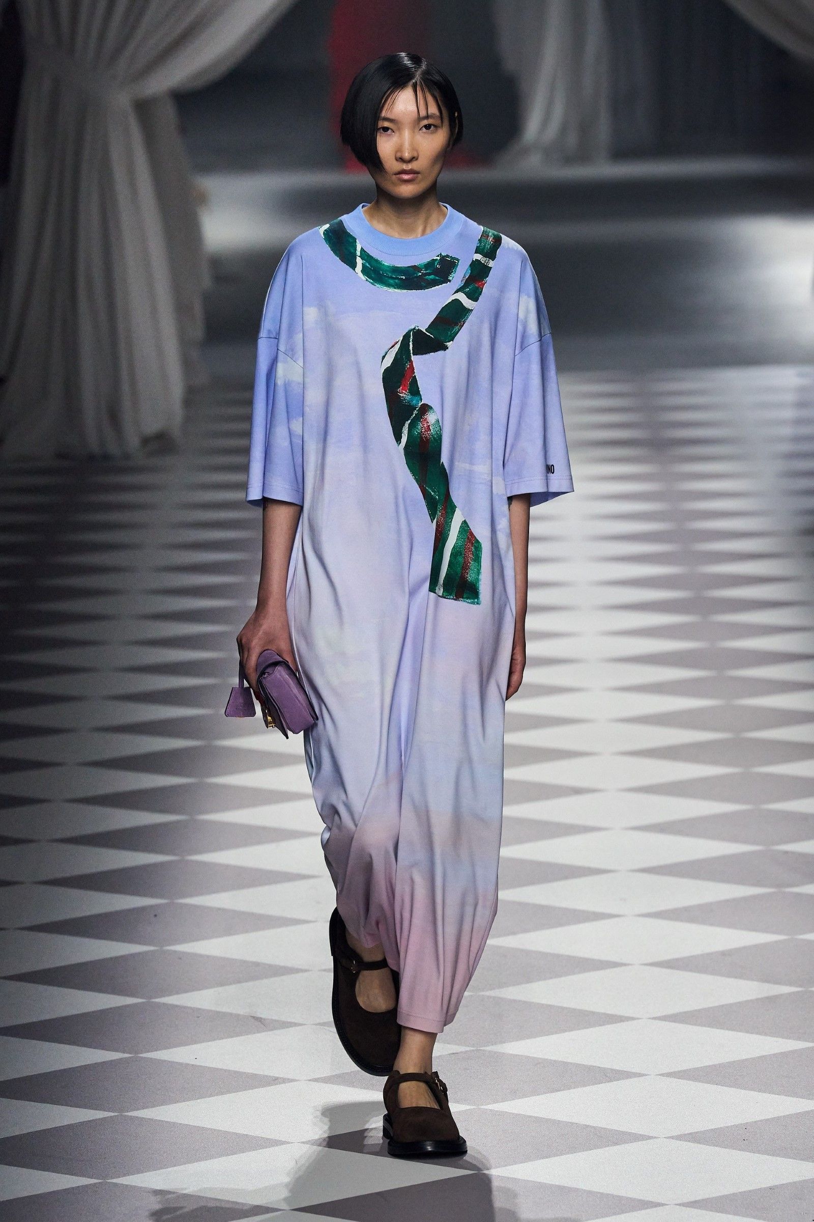 Moving from Nicola Brognano to Walter Chiapponi was like switching from Cosmopolitan to red wine. Blumarine is a deceptively simple brand, whose perception varies by generation. Those who followed and consumed fashion in the '80s and '90s certainly remember the frisson of Anna Molinari's style, Helmut Newton's campaigns with Monica Bellucci, that coquettish '90s lolita elegance. Others are attached to Nicola Brognano's radical sexiness and The O.C.-esque sensibility. A world as playful as it is mischievous, which Chiapponi steered towards the same aesthetic territories as Christiane F., Davide Sorrenti, and Nancy Spungen, but without the same taste for the precious and the decadent. We might have wanted to see more abandon, more romanticism, and, lacking better words, more bite.