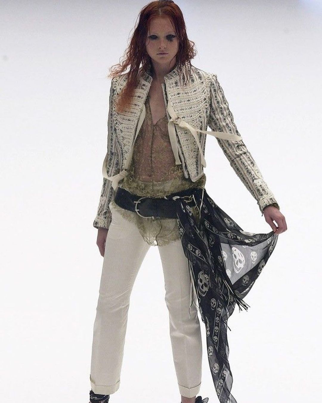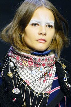 If Sears and Mortezaie used the keffiyeh as a vehicle for debate and political provocation, others contributed to its downgrade to a mere accessory. One of the first was Raf Simons, who in the winter of 2001, made it the protagonist with the FW01 collection “Riot, Riot, Riot”—harshly defined as «terrorist chic». A few years later, in 2008, it was also proposed by Balenciaga under the direction of Nicolas Ghesquière and French designer Isabel Marant, making it one of the must-have accessories of the season. The popularity reached by the keffiyeh in the mid-2000s is comparable to that reached by the Che Guevara T-shirt, a symbol now stripped of its original political and revolutionary sentiment. In America and the UK, the keffiyeh became part of the offerings of mall brands, with Urban Outfitters producing it in various colors and renaming it as the “anti-war woven scarf”—a title that provoked a series of controversies until the removal of the item from the market—and TopShop with embroidery made of skulls (following the wave of Alexander McQueen's Skull Scarf), attracting a similar reaction.