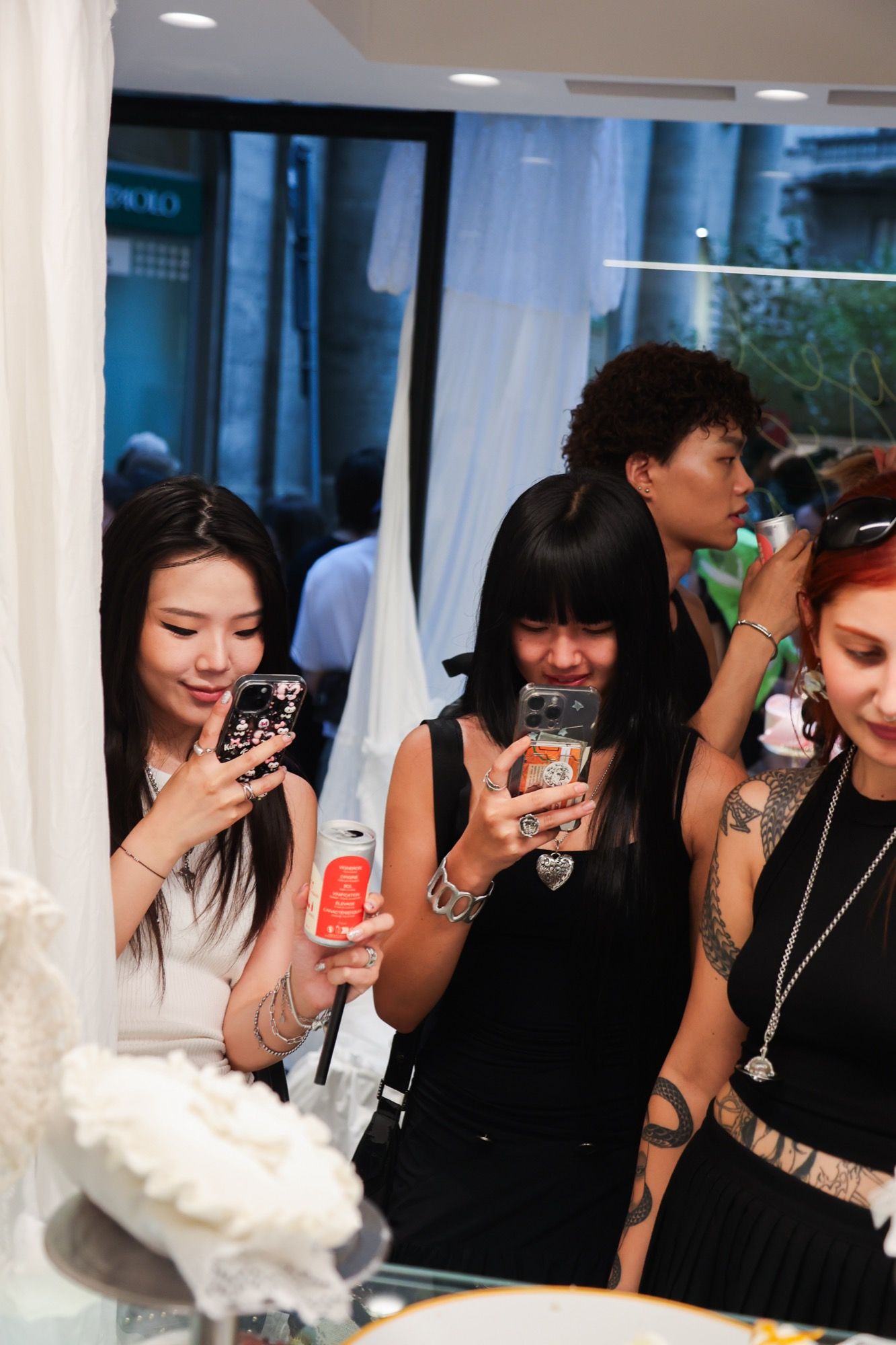 Yesterday afternoon, Lessico Familiare invited the brand's community of friends and fans for a merenda. At the Milanese pastry shop OSLO Made in Heaven, together with nss and the Ti Odio Milano Ti Amo plate and glass set, "Lessico di Panna" entertained guests in an afternoon of ghosts, angel cakes, ruffles, ice cream, bows and cream. We couldn't forget to document the event, so here's how it went.