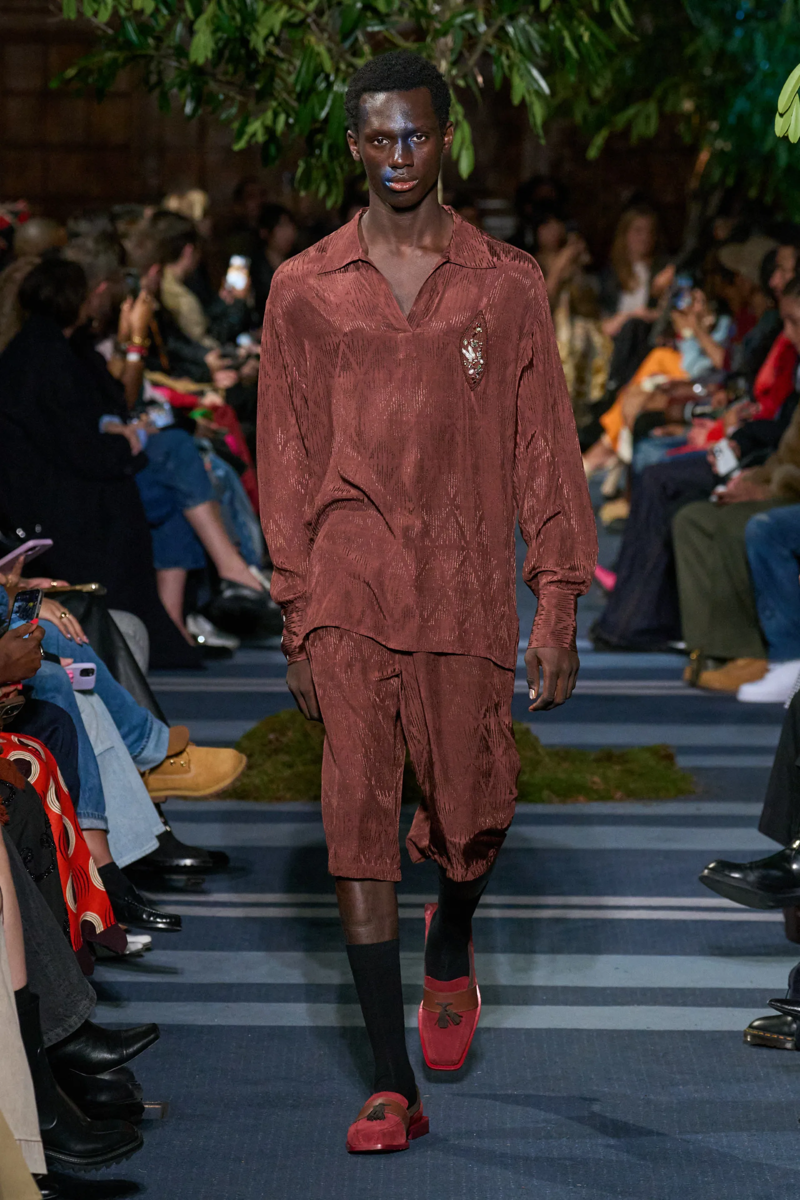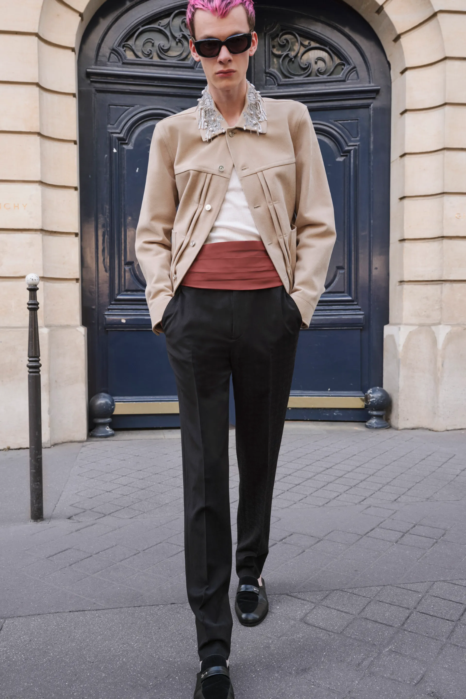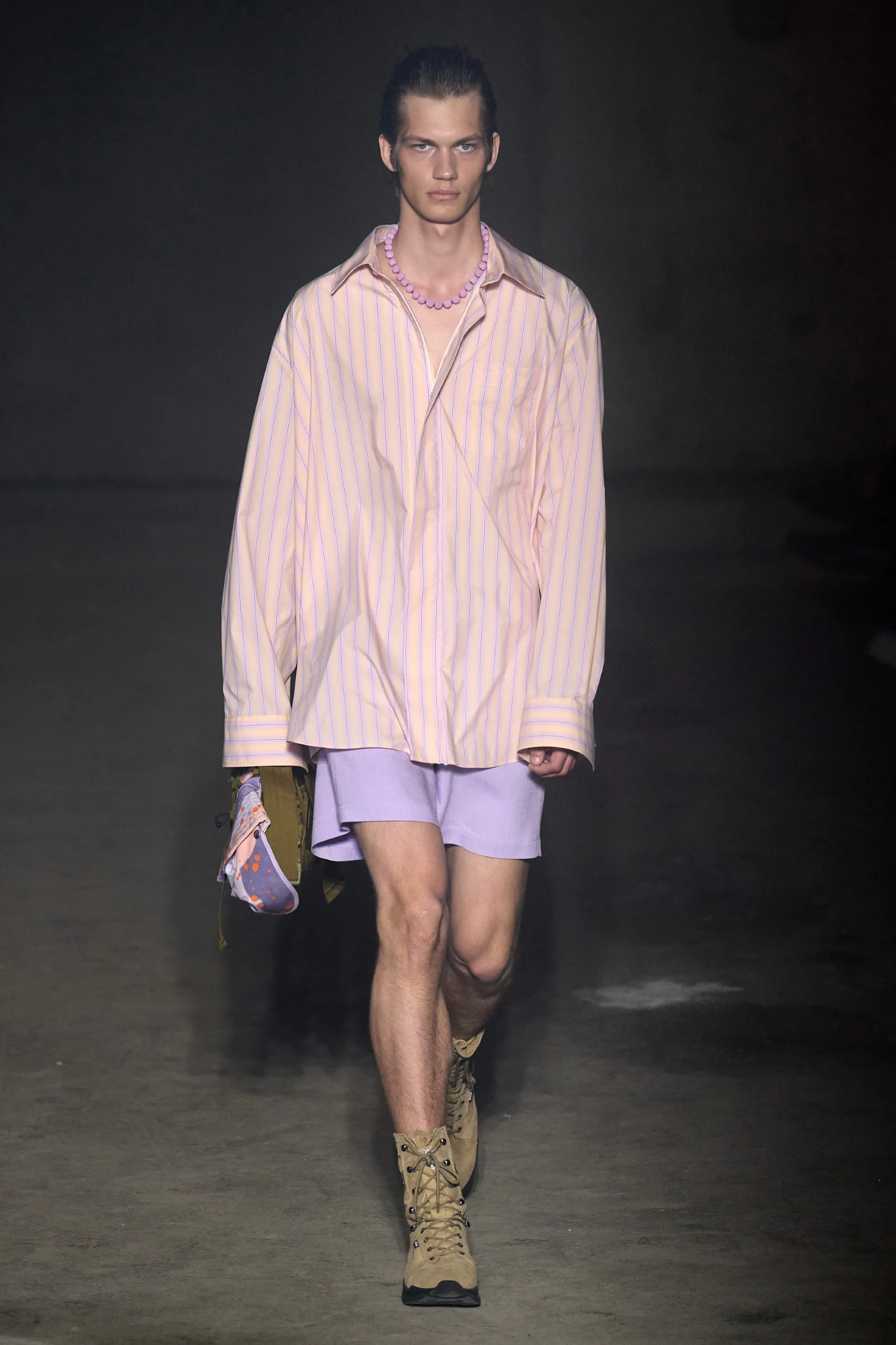 A note: in recent seasons only Louis Vuitton has used pearls in more "institutional" menswear, while Namesake has incorporated them in various forms. But men's pearls were present in SS24, in the "disappearing models" show by Dior Homme, for example, or at Dolce & Gabbana and Giorgio Armani where the pearl was a single pendant appearing on just two looks in both collections. At Dsquared2 the pearl was a simple choker which, however, worn with the brand's usual boldness and masculine flair, seems to suggest that now men can wear pearls too without hiding behind the "soft boy" label – which was the way the entire trend of men wearing pearls started, thanks again to Alessandro Michele and Harry Styles. Similarly, designers as diverse as Massimo Giorgietti of MSGM, Mihara Yasuhiro, Chitose Abe of sacai, and Rok Hwang of Rokh seem to have included pearls or similar jewelry in their looks. More oriented towards the original "soft boy" world but with very little softness were Marco Rambaldi and Martine Rose in the same season. And if one wanted further evidence of how pearls no longer have any connotation of gender fluidity, even Philippe Plein had one of his models wear them. In short, their disappearance from one season to the next in menswear signals their normalization, the end of their divisive status.