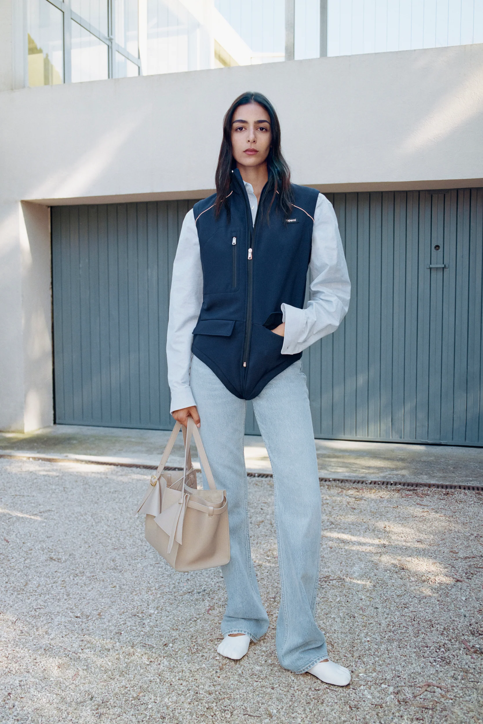 This particular type of one-piece swimsuit has also been used by Kim Kardashian for her Skims underwear brand in the mid-thigh bodysuit model, which, despite being designed to be worn under clothes and to shape the wearer's body, is often worn "naturally" for everyday looks. Furthermore, Mowalola, in collaboration with the Yeezy brand, created the now viral WET bodysuits recently worn by current it-girls such as Bianca Censori, pop star Tyla, and singer Chlöe Bailey. Meanwhile, Marine Serre in SS24 and Coperni in the Resort 2025 collection have used the classic one-piece bodysuit worn over tights and jeans, reminiscent of Olivia Newton John in the Physical music video in the early 1980s. The ugly swimsuit, in its contemporary variations, is present in the recent Resort 2025 fashion show by Chanel presented in Marseille, where Virginie Viard has included one-piece swimsuits that appear to be made of tartan and are embroidered with buttons and pockets, almost reproducing a typical cardigan over body and shorts that recall 1930s crochet swimsuits. Also in the SS24 fashion show of the French maison, Viard proposed striped culottes and polka dot ones worn with tank tops of the same print similar to those beach outfits worn by young Californian Francine in the 1959 romantic comedy "Gidget" or like the striped bodysuit worn by the first Barbie model from 1959.