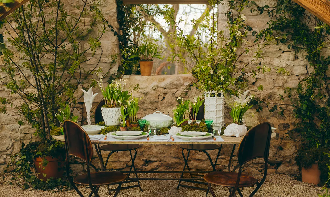 Among the brands that have recently joined the high-fashion interior design train is Gucci Décor, launched by then creative director Alessandro Michele in 2017. Initially, the line was distinguished by cushions, divider panels, and Chiavari chairs embroidered with the GG logo and other prints in full 1970s rococo style. Today, however, the new creative director Sabato De Sarno has launched "Rosso Ancora," with an installation at the Salone del Mobile 2024, designed by Spanish architect Guillermo Santom, embracing the brand's new hue, somewhere between cherry and burgundy. Paul Smith also debuted in 2022 with a color-rich collection, featuring rainbow-striped rugs, limited-edition vases by Dale Chihuly, and towels made from recycled fabric. The focus, however, seems to be on the home decor section dedicated to the dining room — the so-called Art de la Table — with meticulous research ranging from ceramics to glass, to the art of painting and hand embroidery. Hermès Home presents porcelain dinnerware sets featuring equestrian motifs with suggestions of Oriental nature; Dior offers gold-rimmed tableware with coral and aquamarine designs, or illustrations of the city of Paris map; Louis Vuitton relies on Limoges porcelain for a minimalist table service with the maison's iconic floral motif; Fendi plays with the double-F padlock icon; finally, Christian Lacroix offers a collage of marine and feathered images for a collection inspired by tropical culture. In short, there’s something for everyone.