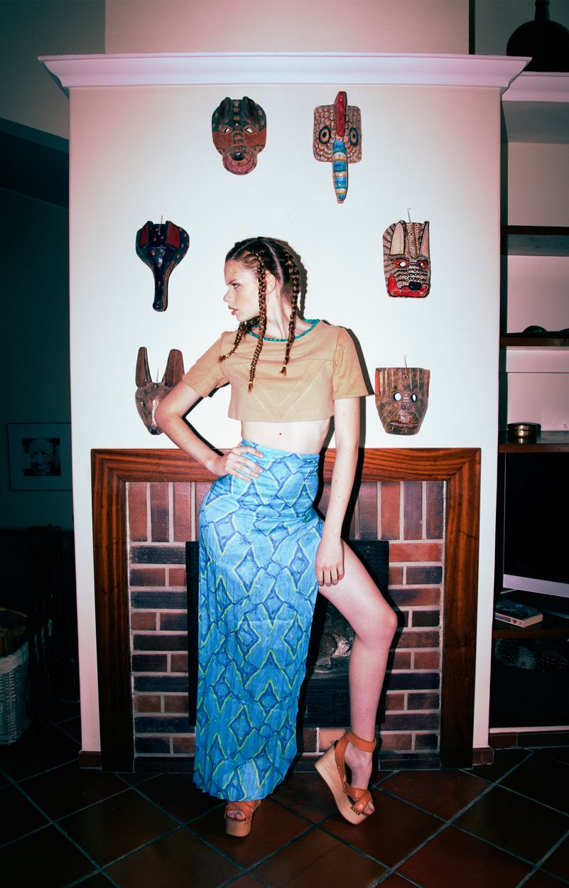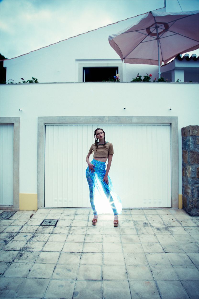 The photographer Tsasha Olivier creates a world locked inside a rural Portuguese villa for Zakary le Stéle's collection: the model Lien Vieira moves herself freely, getting carryed away by her inner thoughts and the hypnotic abstract prints of the collection.