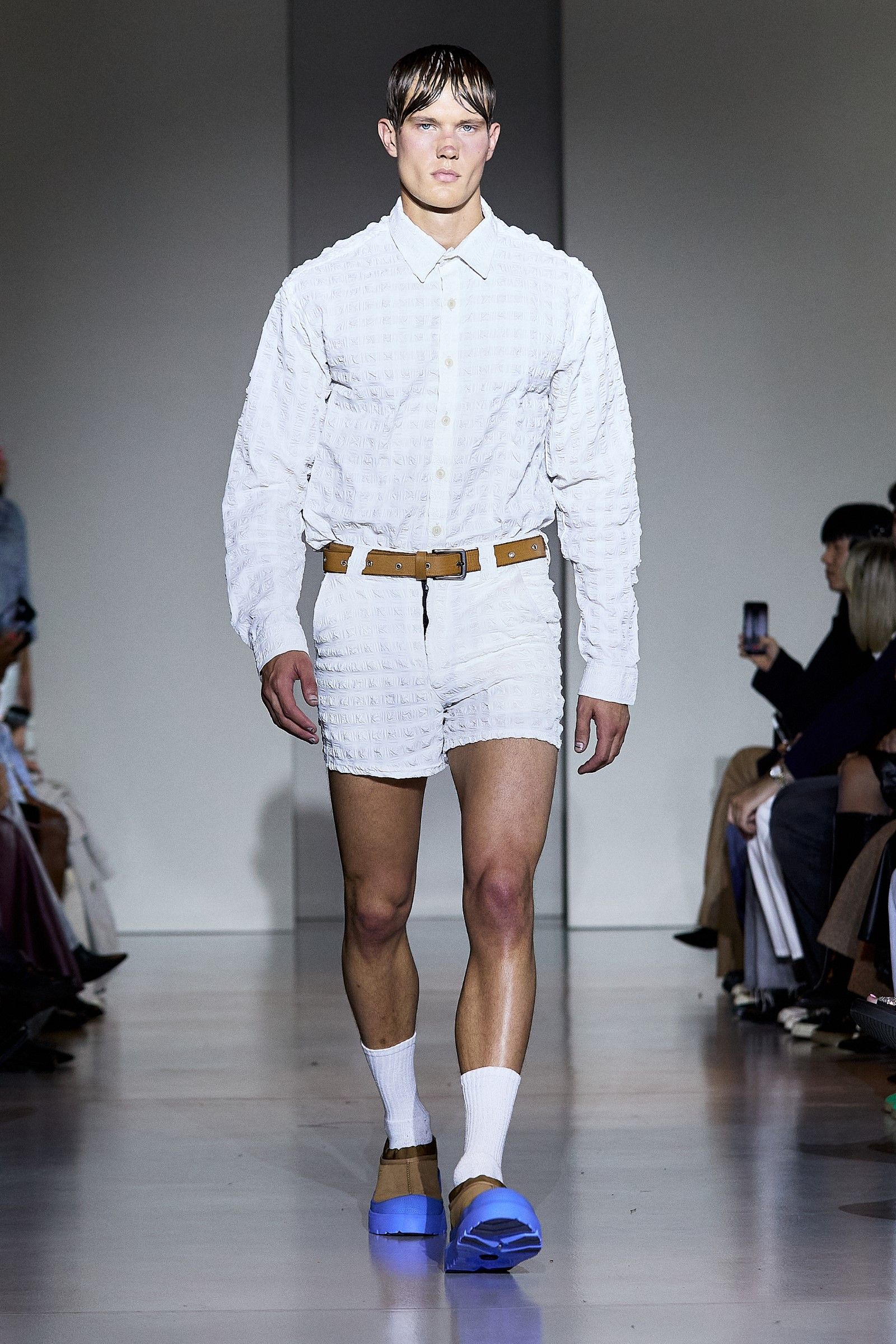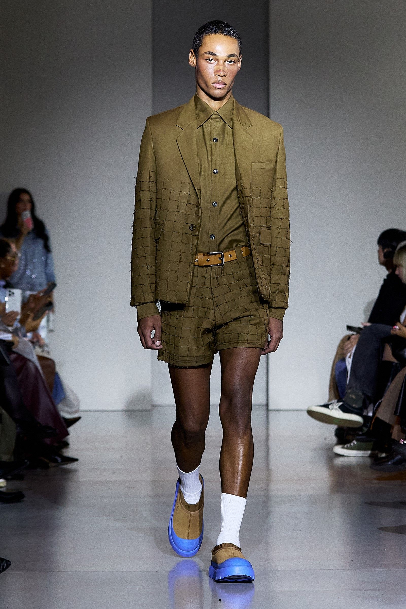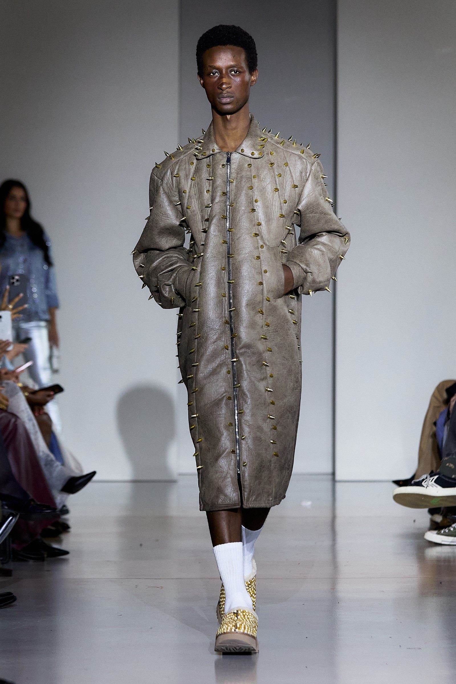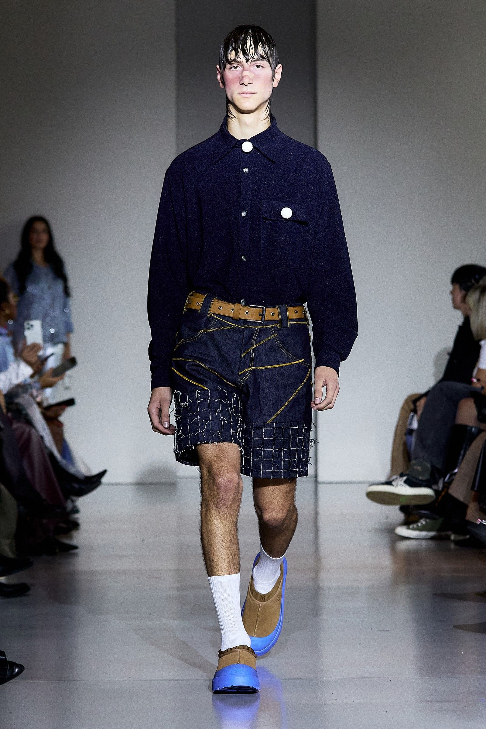 In a world that often chases perfection, the Anglo-Nigerian designer Tokyo James delivered a powerful message during Milan Fashion Week SS25 with his collection aptly titled Imperfection. Drawing from personal memories and James’ precise tailoring expertise, the collection sought to challenge the very concept of perfection around which fashion often revolves. His philosophy is simple: "We don’t have a perfect world, so why should we have perfect clothes?" This belief is at the heart of James’ creative process, which defies fashion’s obsession with precision. "I think clothes should have character, even if they’re a little unstitched. It’s OK. Chasing perfection is unsustainable, and it’s not really good for our planet." One of the key moments of the show was James' collaboration with UGG, which brought a fresh reinterpretation of the brand’s DNA, as UGG has supported a different emerging designer every season for several years now.