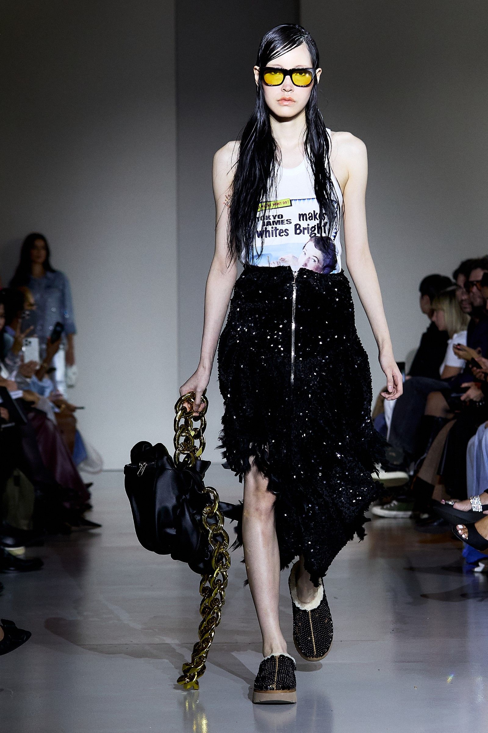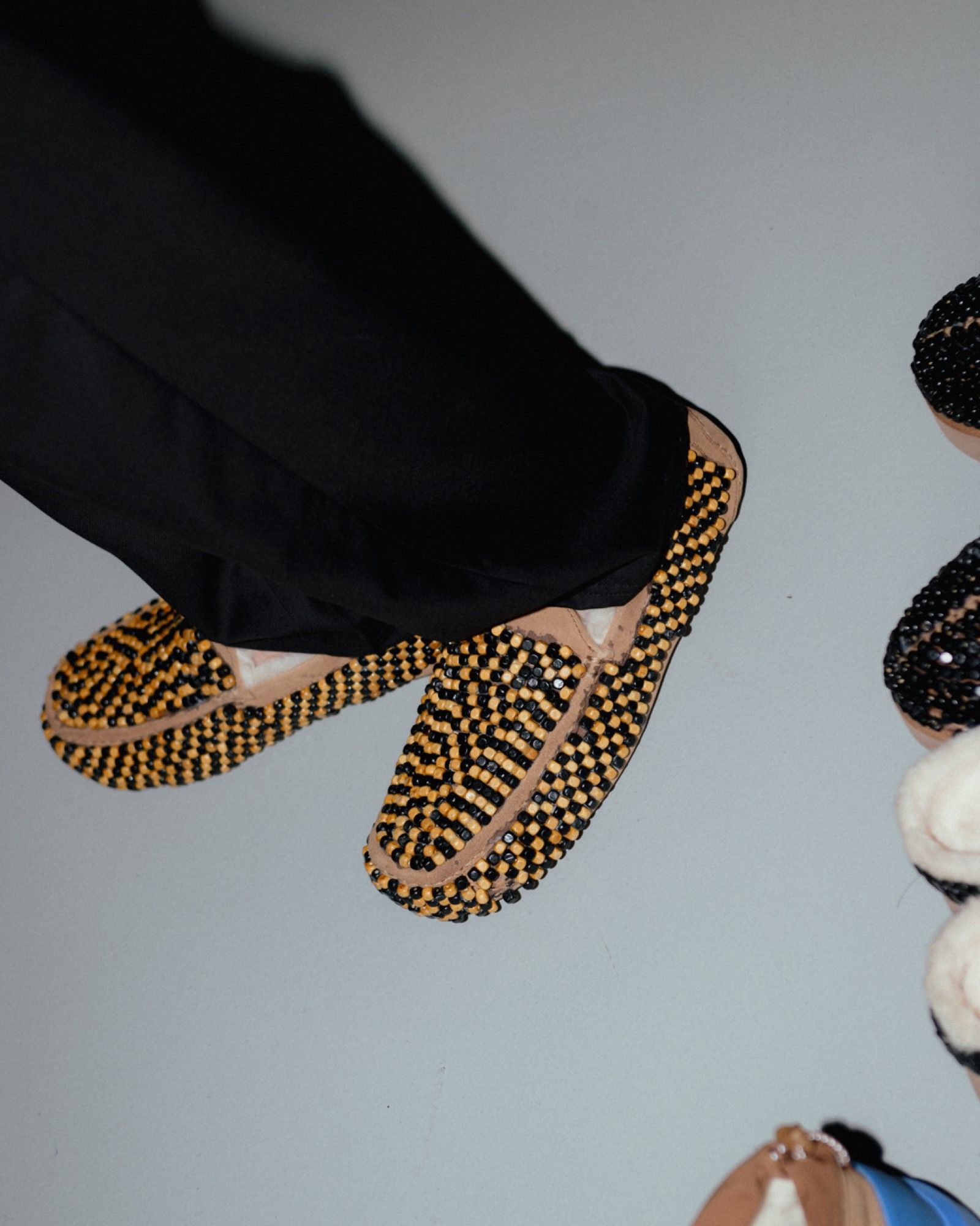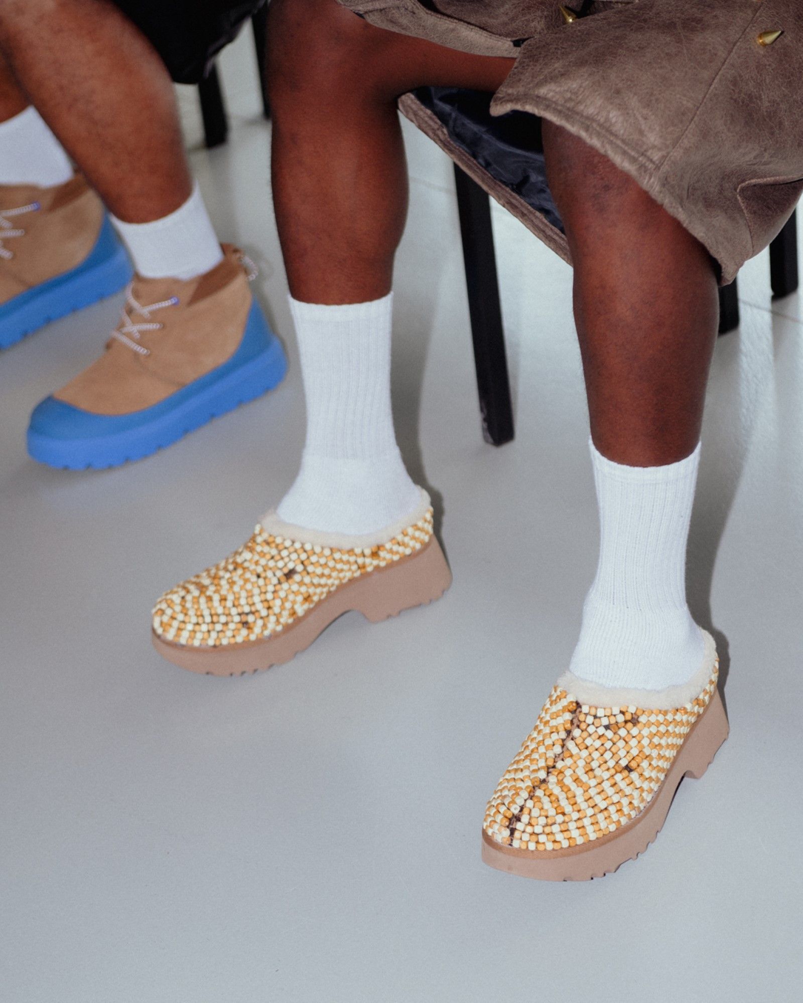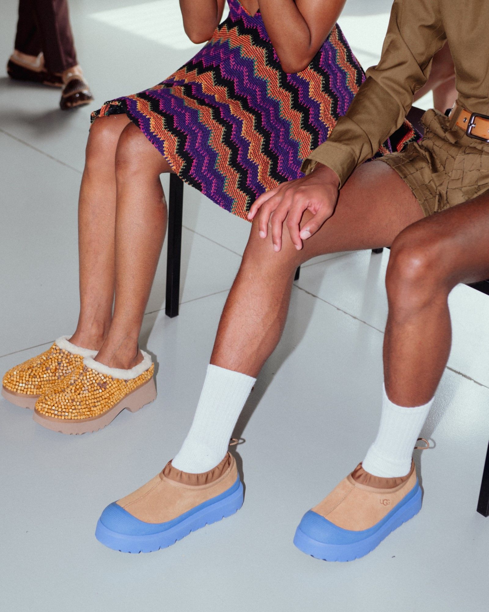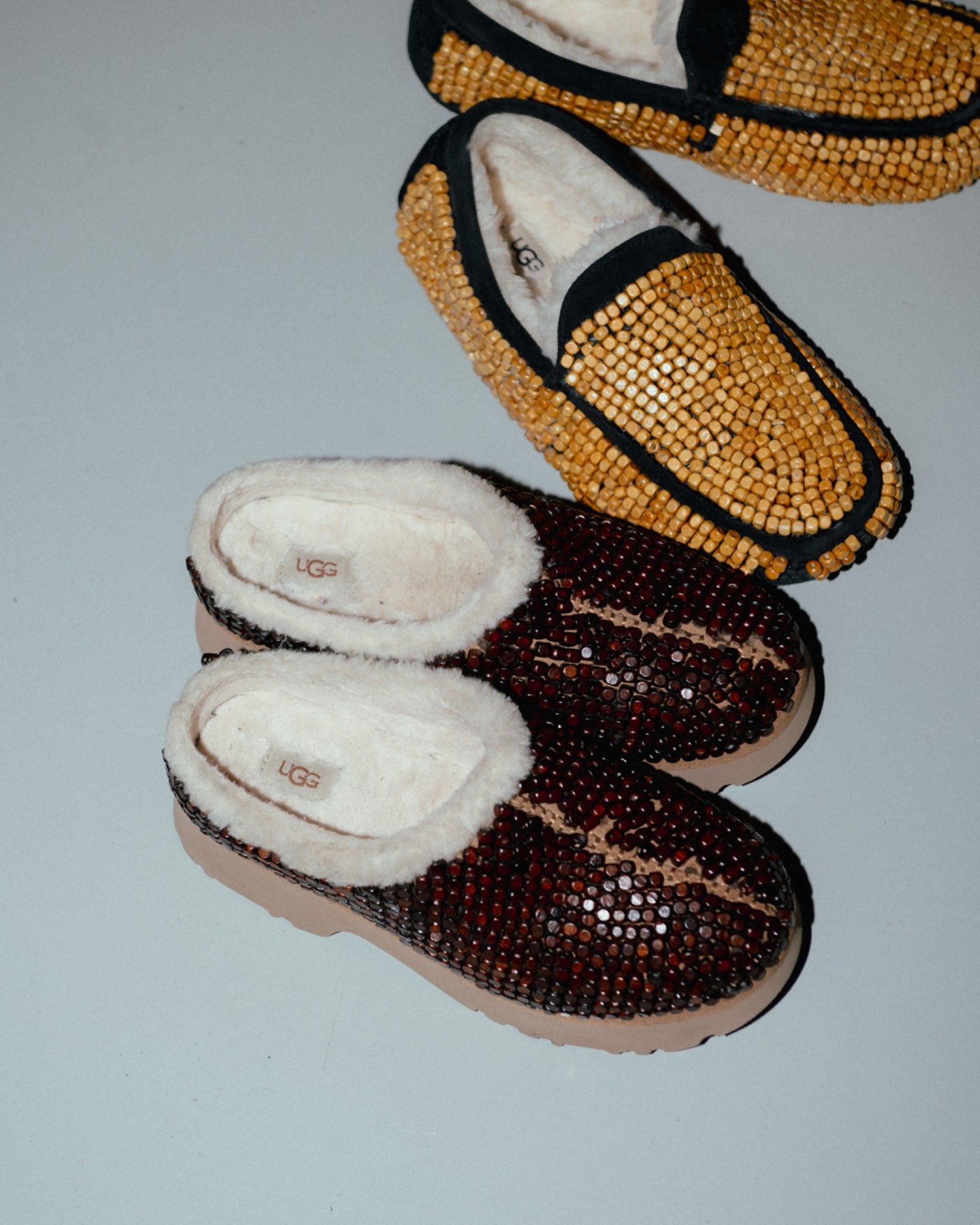 The partnership came about naturally: "The UGG collaboration started as an Instagram message: 'We love what you do. Can we talk?'" For James, the collaboration was both a creative challenge and an opportunity to gain strong support from the brand. "How do I transform UGGs? How do I make UGGs Tokyo James?" he asked himself, finding the answer in the use of beads. "We thought, ‘This is beautiful. It’s demure, it’s simple, it’s clean. But at the same time it has the drama, which is very, very important." The collaboration became more than just a product—it was a dialogue between two brands, both pushing boundaries and embracing the unpredictable. "That’s why I have great partners. They’ve been amazing. They want to support in every way." James is an advocate for collaborations between established brands and emerging designers, emphasizing that "the giants need to find ways to collaborate with the young." For him, the future of fashion lies in this ongoing dialogue—a fusion of perspectives that goes beyond the surface. "The fashion industry needs to look outside the norms."