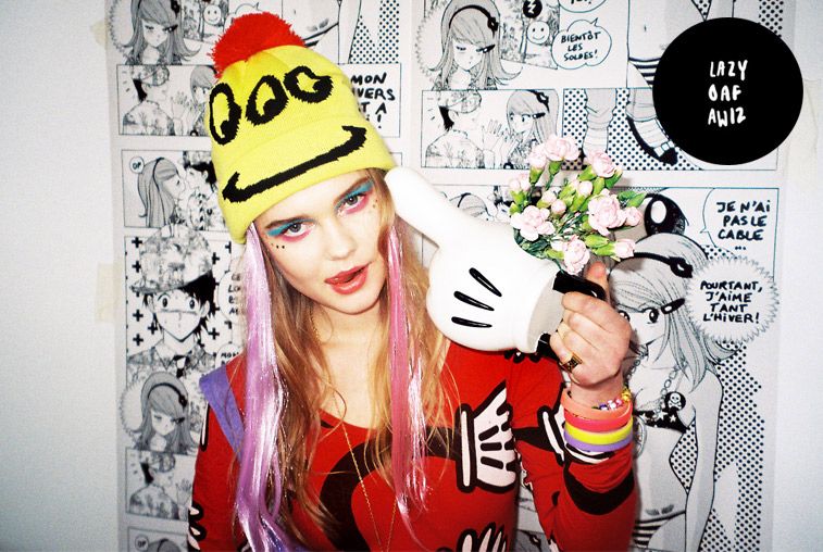 Lazy Oaf’s style, in fact, is characterized by funny graphics, inspired by the catoons’ world and the one of pop culture, technicolor, bright, odd, caricature.