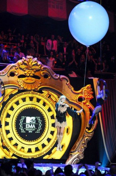 La regina delle Amazzoni è apparsa sfavillante, in forma e assolutamente pronta ad intrattenere il pubblico degli Mtv EMA 2012 a Francoforte, indossando dei total look firmati Versace, per tutti i suoi cambi d'abito.
