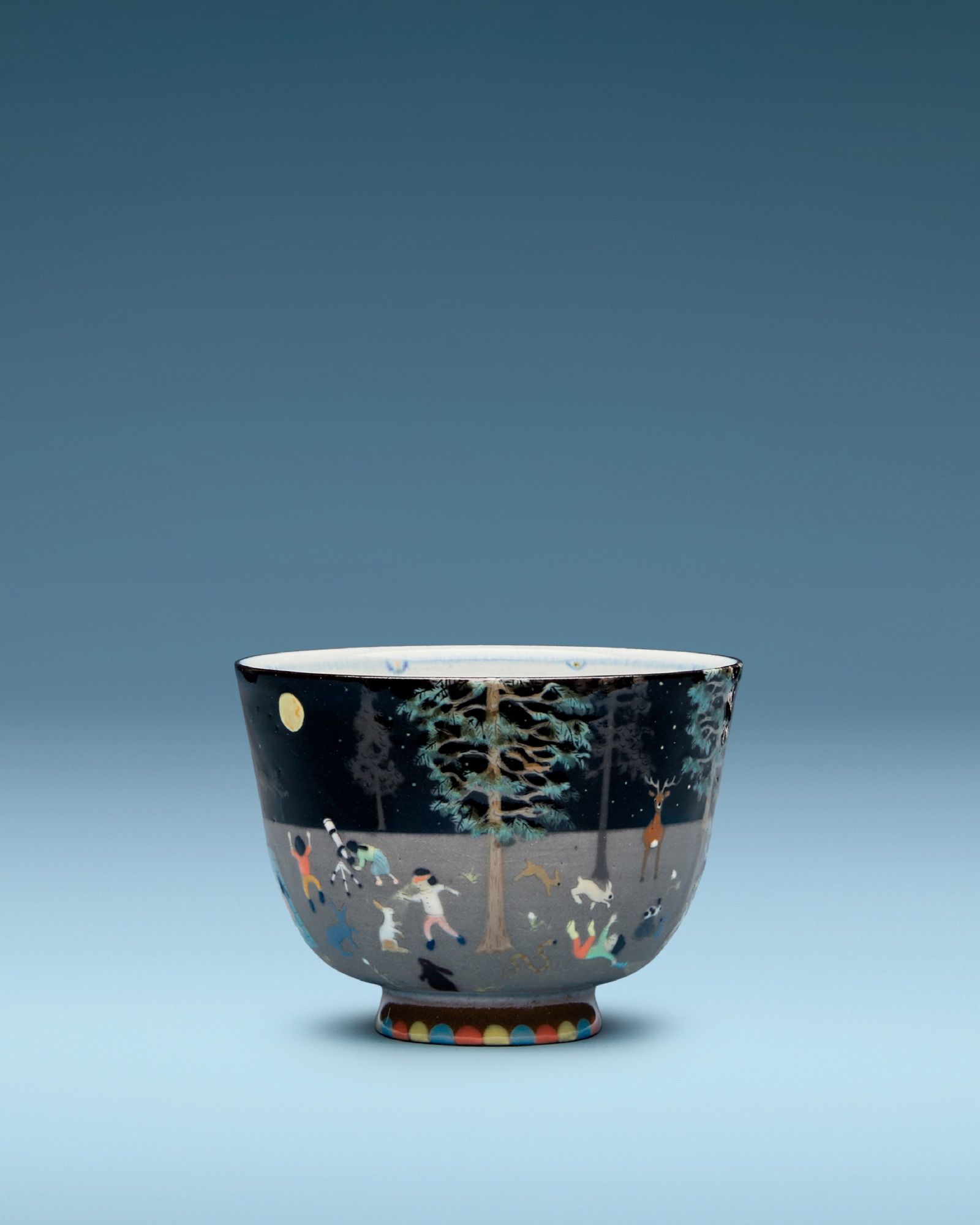 The Puzzle and Flamenco bags are revisited in materials like soft deer leather and knit designs in vibrant hues and metallic accents, ready for the season of lights. The ready-to-wear collection includes oversized coats, bombers, and shearling workwear jackets featuring soft textures that wrap the wearer in a warm embrace. Alongside the ready-to-wear collection, bags, and footwear, Loewe’s new holiday campaign also reveals a ceramics line designed by the Japanese ceramicist duo Suna and Fujita. This set of mugs, teapots, and plates explores a playful and nostalgic dimension through childhood imagery. The marine animals featured on the bags reappear, while bunnies and hamsters are painted alongside children enjoying outdoor play.