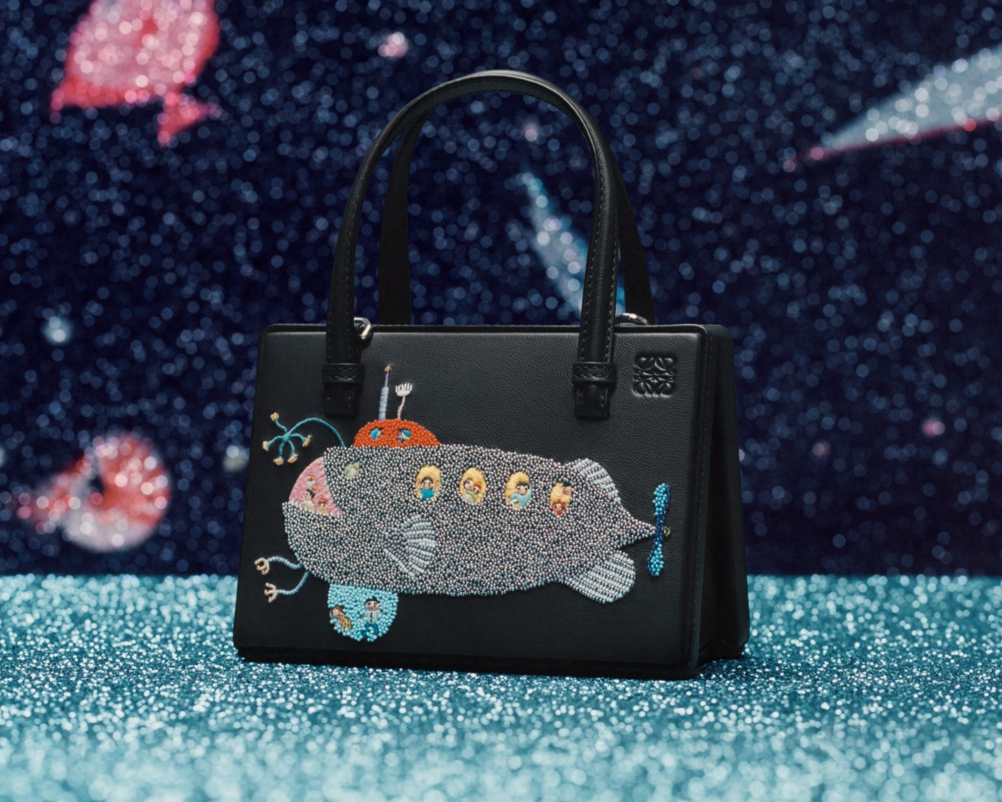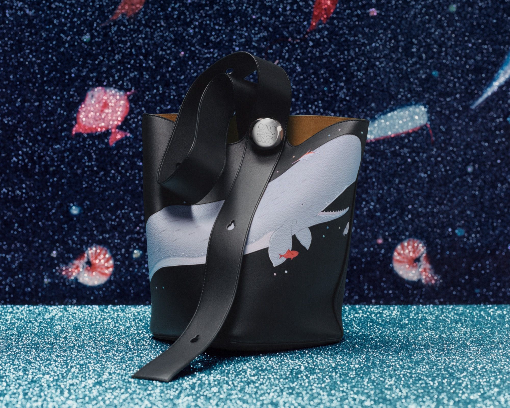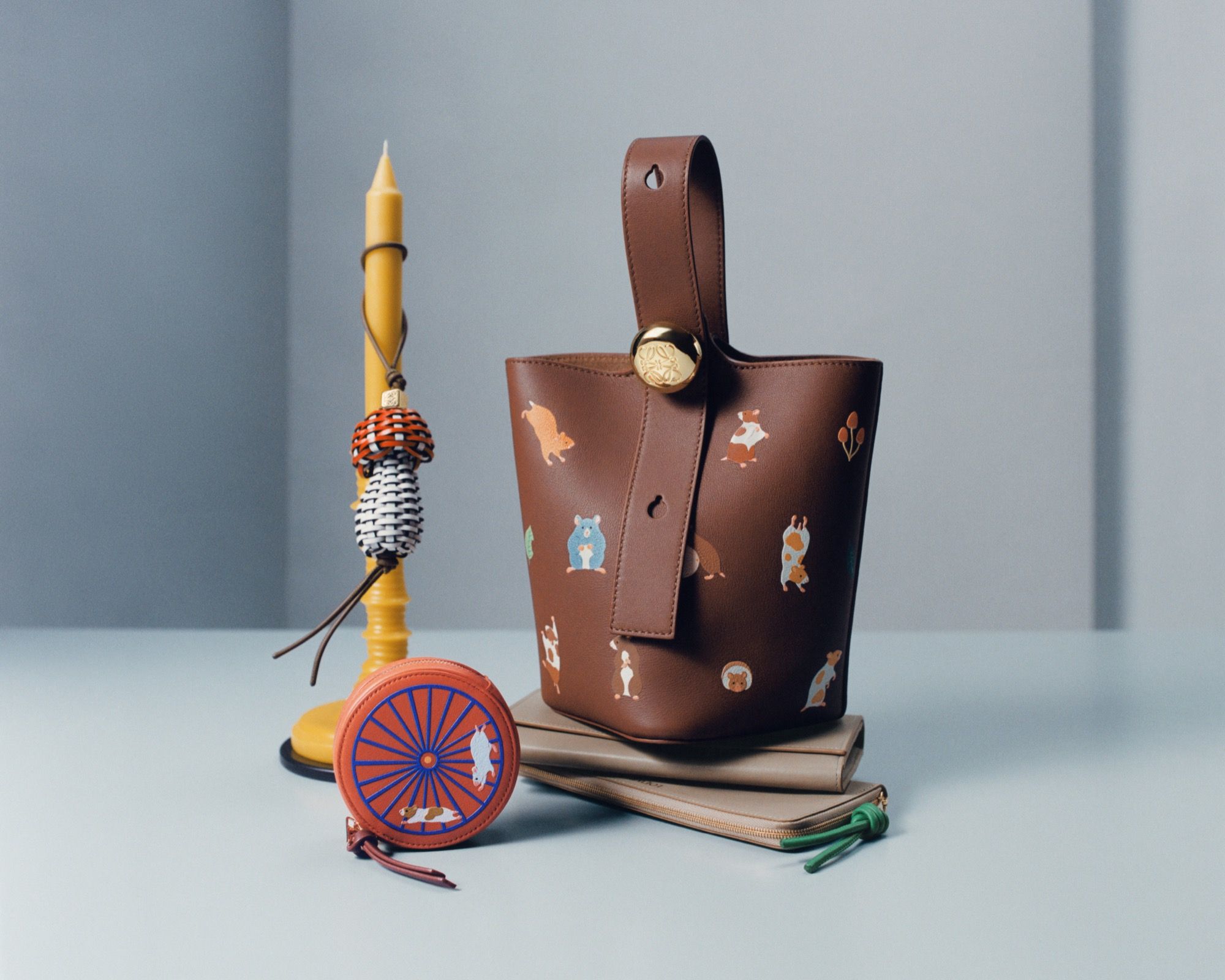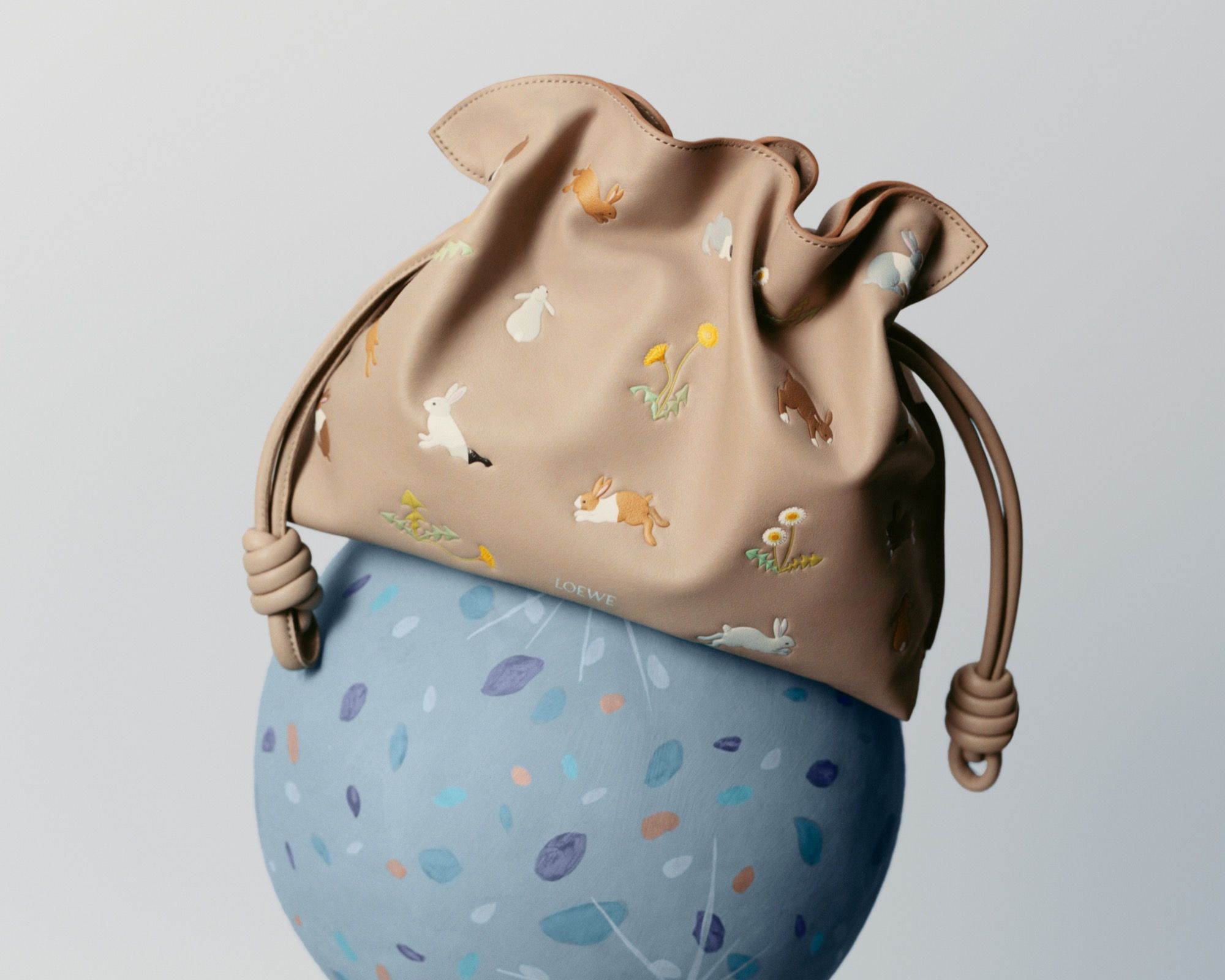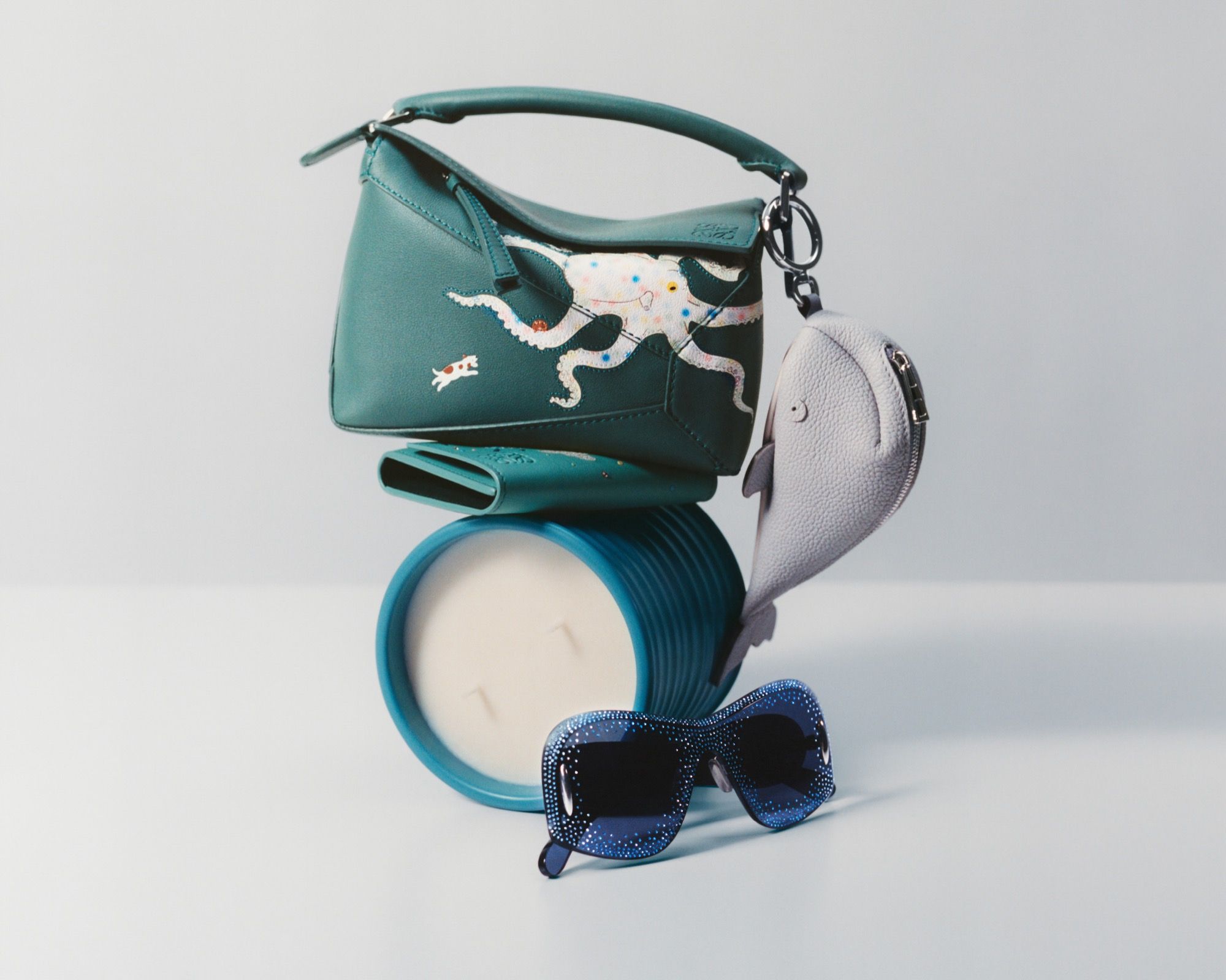 For this holiday season, Loewe offers a nostalgic dive into the past. Renewing its collaboration with the Kyoto-based ceramicist duo Suna and Fujita, the maison has created a collection inspired by childhood dreams, both in color and in the motifs featured on bags and accessories. Each item has been transformed into a fantastic world ruled by whimsical creatures and adorable animals. Octopuses, squids, and whales adorn Loewe's classic models like the Flamenco, Hammock, and Puzzle, in a palette that directly references the aquatic world. Meanwhile, bunnies and hamsters add an ironic touch to bags and small leather goods with natural tones and sparkling details, for a look that is both nostalgic and ultra-modern.