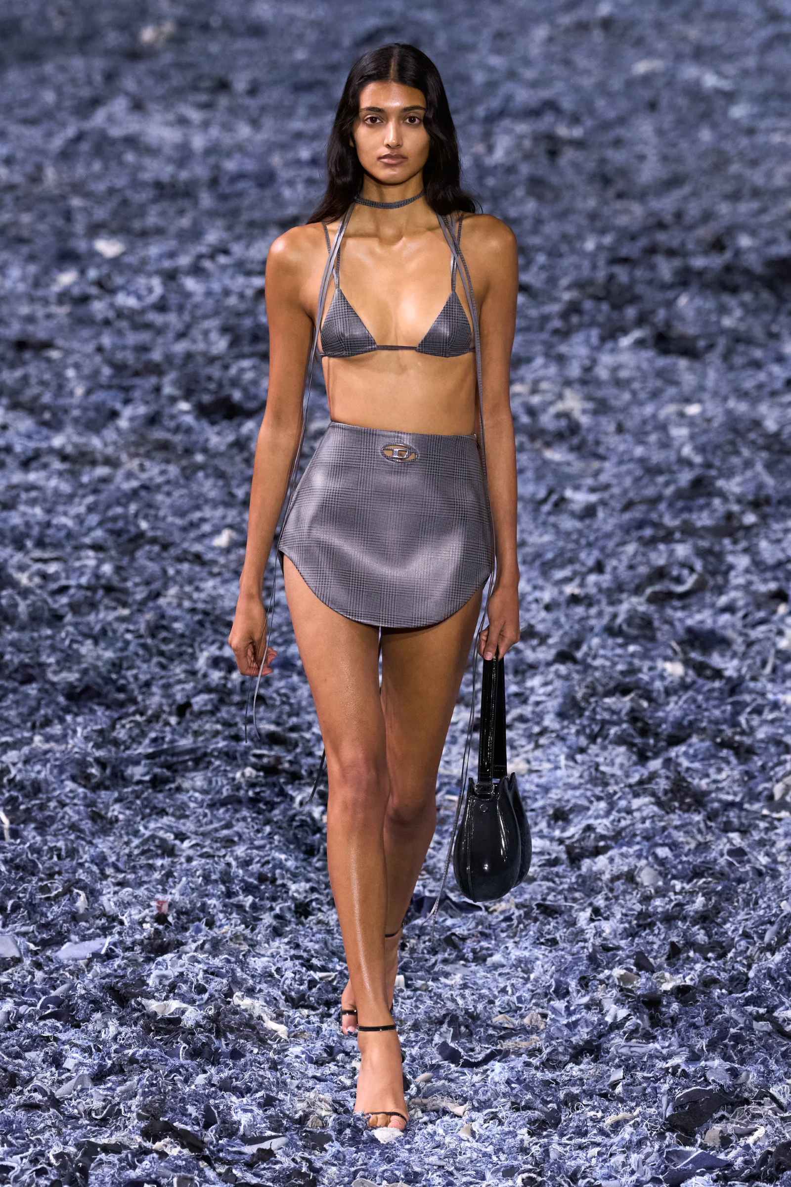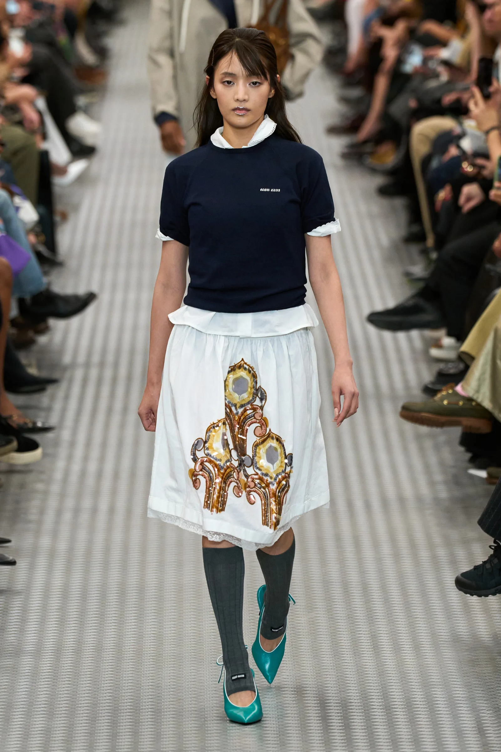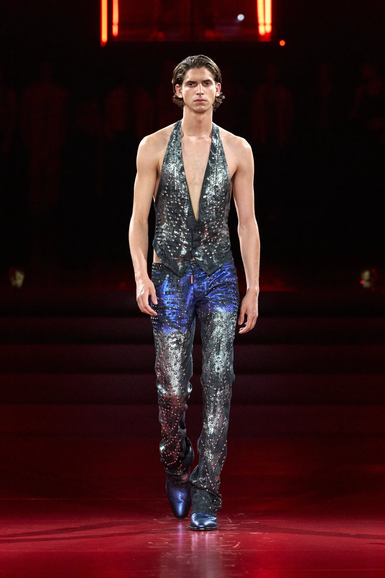 But there are many examples: logos embroidered in discreet places on a white dress by Chanel, or transformed into abstract graphics like Marine Serre or Amiri, and even placed on labels reminiscent of certain '90s sportswear or, more classically, on the left chest as Miu Miu and Balenciaga have been doing for some years, along with Valentino and, surprisingly, Louis Vuitton, which nonetheless has not given up on logomania, nor has Gucci. At Off-White or Courregès, logos are very central on the chest but small or tone-on-tone, still not dominant; Charles Jeffrey Loverboy and Louis Gabriel Nouchi, on the other hand, have thought of tags placed on visible boxers that are only noticeable if observed closely; DSQUARED2, for its part, has always placed a tiny logo on the jeans' fly. But the point here is not the disappearance or appearance of logos but rather the compromise found in their placement: they must exist, be visible but discreet, while avoiding turning the wearer into a walking advertisement for the brand. Trends coexist nonetheless: at Prada and Miu Miu, there are both sweaters with maxi-logos and discreet triangles on the back of the neck; at Gucci, subtle branding such as colored bands coexist with garments covered in the GG motif, as is the case at Loewe, Louis Vuitton, Dior, and so on. The public is interested. According to the WSJ, «Net-a-Porter saw searches containing the word “logo” increase by 444%. Mr Porter, which caters to men, recorded a 103% increase over the same period» while «since the end of July, Mr Porter has recorded a 400% increase in searches for Loewe logos, including the brand's anagrammatic motif composed of four spiraling cursive “L”s». The reason for this comeback is actually easy to understand: when a customer buys a simple navy blue cashmere sweater for nearly two thousand euros, they want at the very least for it to be clear which brand it belongs to.