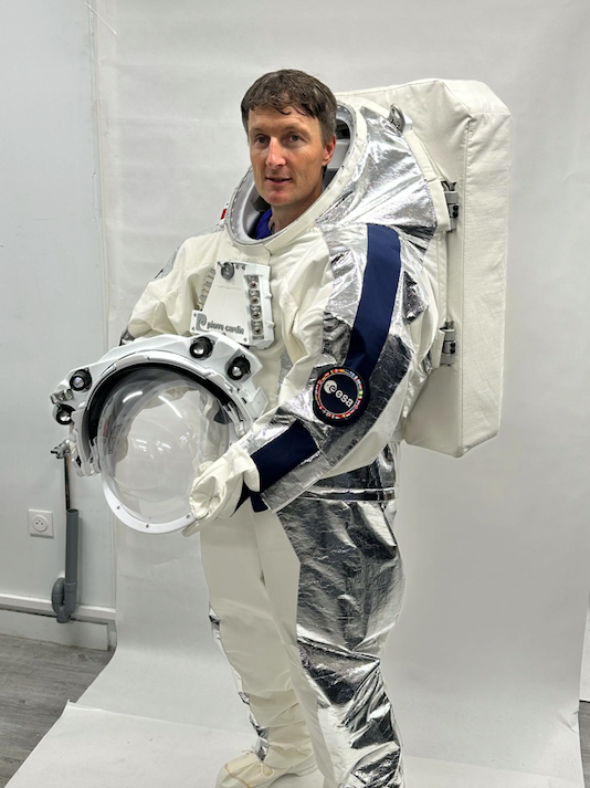 Last September, the House of Pierre Cardin announced that it would collaborate with the European Space Agency to design the suits that astronauts will wear during their training at the new simulation center in Cologne, in preparation for the upcoming lunar mission. This partnership is no coincidence, given the space age history of the Cardin brand and the role it played in the Space Age trend of the 1960s. This new initiative extends from its previous collaboration with the Franco-Italian aerospace manufacturer Thales Alenia Space. The suit will allow astronauts to provide feedback on the performance of their equipment in practical situations, such as handling instruments designed to analyze lunar rocks. The materials for the training suit have been carefully selected as part of the ESA’s study on future space materials, and incorporate some fabrics previously used in Cardin’s collections, including the spongy blue recycled synthetic material that covers the suit.