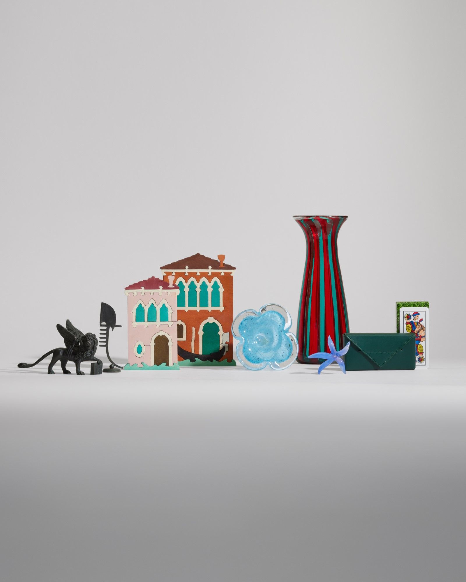 For the fourth consecutive year, Bottega Veneta celebrates craftsmanship with its initiative Bottega for Bottegas, which this year pays tribute to the brand's Venetian roots. Six artisan workshops from the region are at the center of this edition, highlighting the richness of manual expertise and local tradition. During December, Bottega Veneta's communication channels – from the website to the boutique windows – will be dedicated to objects crafted by master artisans. Among them is the Fonderia Artistica Valese, renowned for its brass creations featuring Venetian symbols such as the winged lion and the gondola's ferro. Equally representative are the creations of Signor Blum, which reproduce typical Venetian architecture in wooden puzzles, and the playing cards by Modiano, including the Trevigiano deck, also known as the Venetian or Veneto deck.