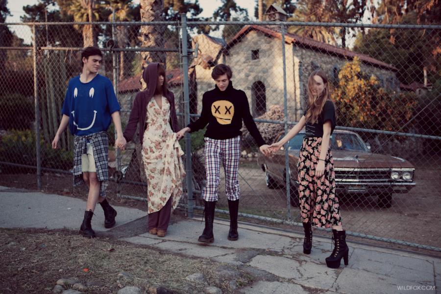 Star Crossed Lovers è il nome scelto per la collezione autunnale, Romeo + Juliet, la versione alternative del dramma Shakespeariano ad opera di Baz Luhrmann con Leonardo di Caprio e Claire Danes, è l’ispirazione. Emily e Kimberly vestono in stile 90's la drammatica spensieratezza dei teenagers, con jeans baggy, t- shirts e pullovers con frasi ricamate come “Math sucks” o “Oh Romeo, Romeo”, lunghe gonne con motivi floreali, vestiti tartan e felpe. Nel lookbook scattato da Mark Hunter Capuleti e Montecchi non sono più eterni rivali, ma un gruppo di amici che intraprende un viaggio on the road. Sono eroi romantici, vivi e vibranti che corrono incontro alla vita e non alla morte come la storia tradizionale racconta, più Sal Paradise e Dean Moriarty, che Romeo e Giulietta. I loro abiti dalle linee morbide, confortevoli, freschi, casual, ricordano icone di un decennio livido e rivoluzionario, ritagli di un collage fatto di Winona Ryder, River Phoenix, 90210, MTV e ragazzi con lo skate.