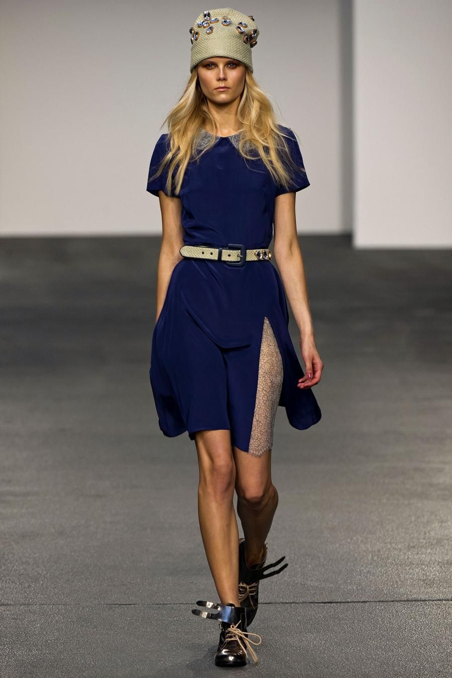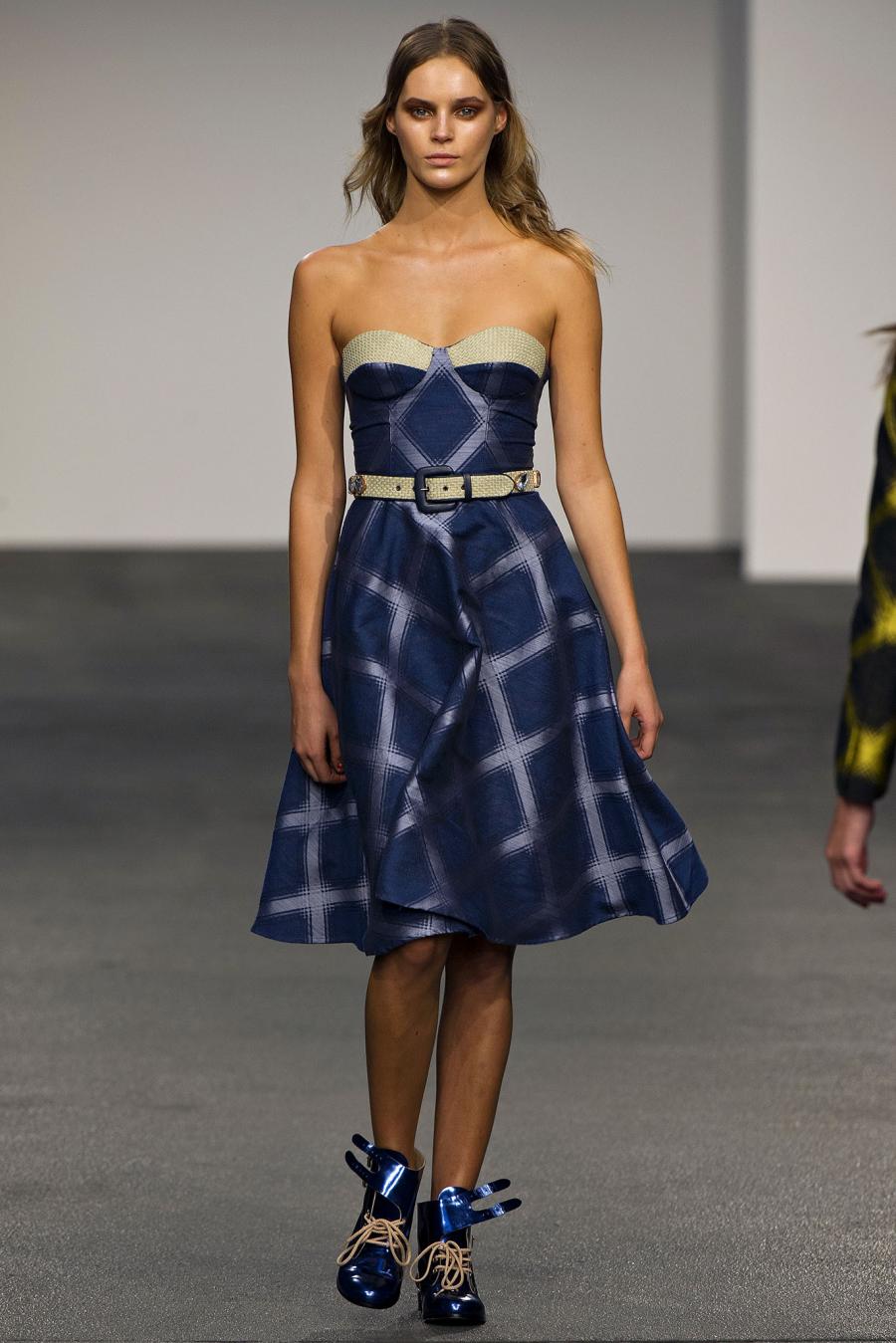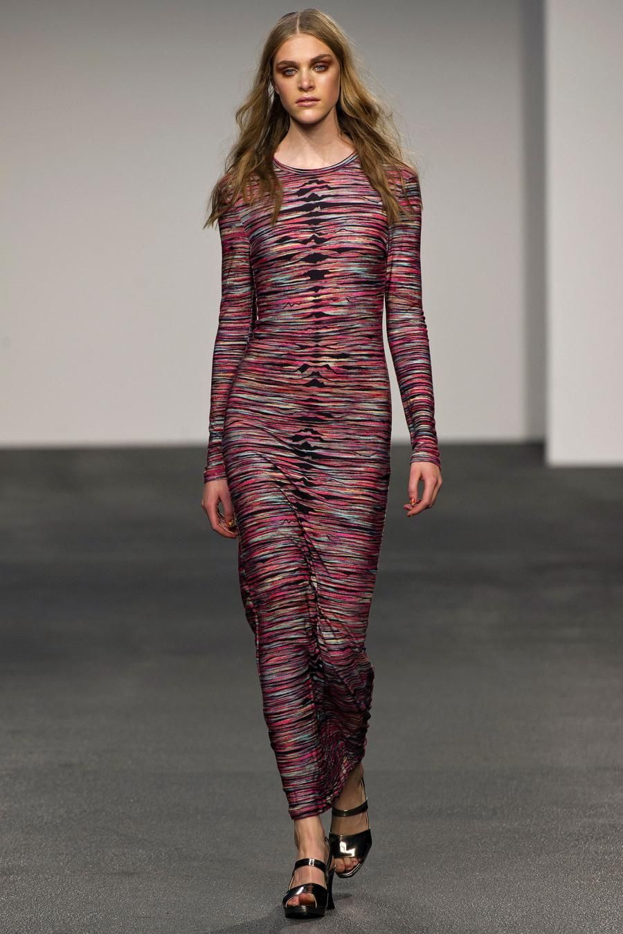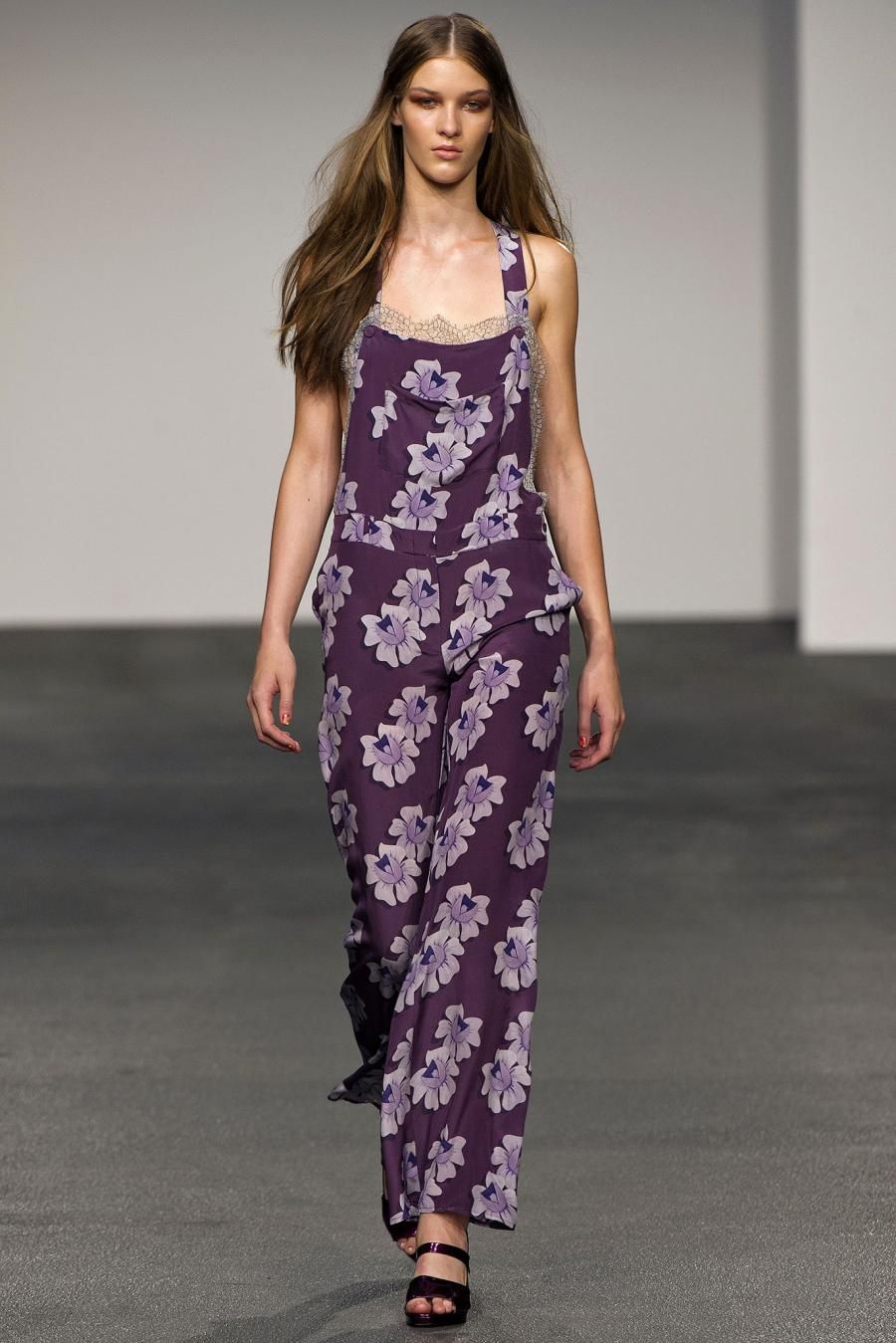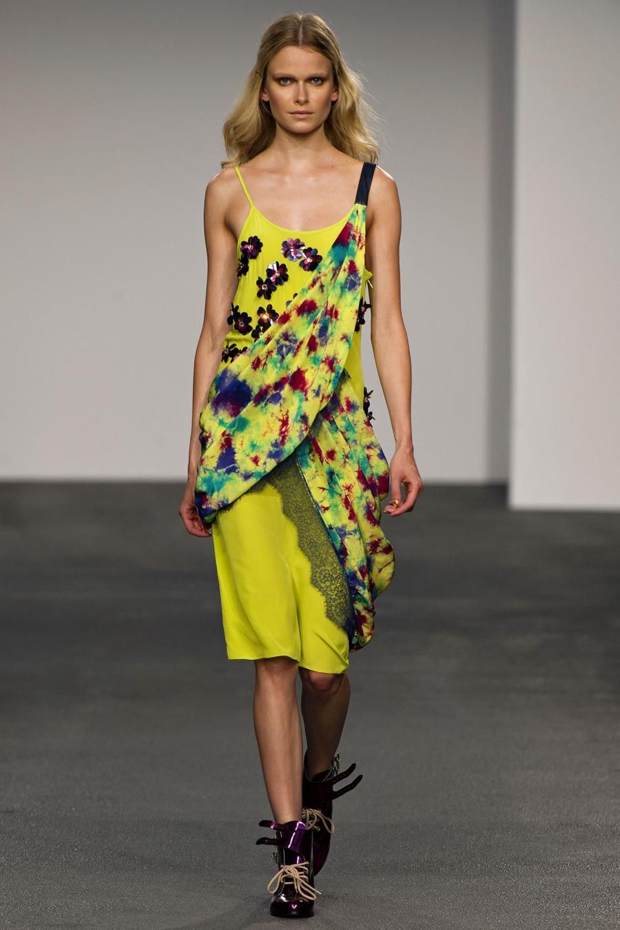 The London brand House of Holland creates clothes for confident women who know what they want and who wear labels without letting them wear her. Henry Holland, its designer, for the next spring brings to the catwalk the 90s and a mix ‘n match of fabrics and colors. “Buzz Kill” is the name of a rich and, at the same time, cool collection, in which coexists luxury and more simple fabrics: flowery jacquard, tie-dye silk, printed jersey, purple brocade and shiny leather. One after the other different prints model: flowers, honeycomb patterns, florescent color spots. The silhouette is fluid, the body is free to move in the long dresses, in the playsuits , in the shirts. The spring of House of Holland is playful, colorful and a bit psychedelic.