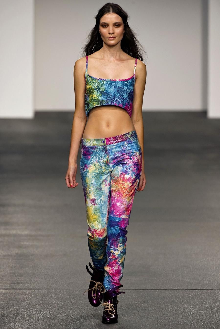 Il brand londinese House of Holland crea abiti per donne sicure di sè, che sanno cosa vogliono e non si lasciano indossare dagli abiti che portano. Henry Holland, il suo designer, per la prossima primavera porta in passerella gli anni ’90 e un mix ‘n match di tessuti e colori. “Buzz Kill” è il nome di una collezione ricca e fresca allo stesso tempo, in cui convivono lussuosi e più semplici tessuti: jacquard a fiori, seta tie-dye, jersey stampato, broccato viola e pelle scintillante. Sfilano uno dopo l’altro stampe diverse: fiori, motivi a nido d’ape, macchie di colore fluo. La silhouette è fluida, il corpo libero di muoversi nei lunghi abiti, nelle tute, nelle camicie. La primavera House of Holland è giocosa, colorata e un po’ psichedelica.