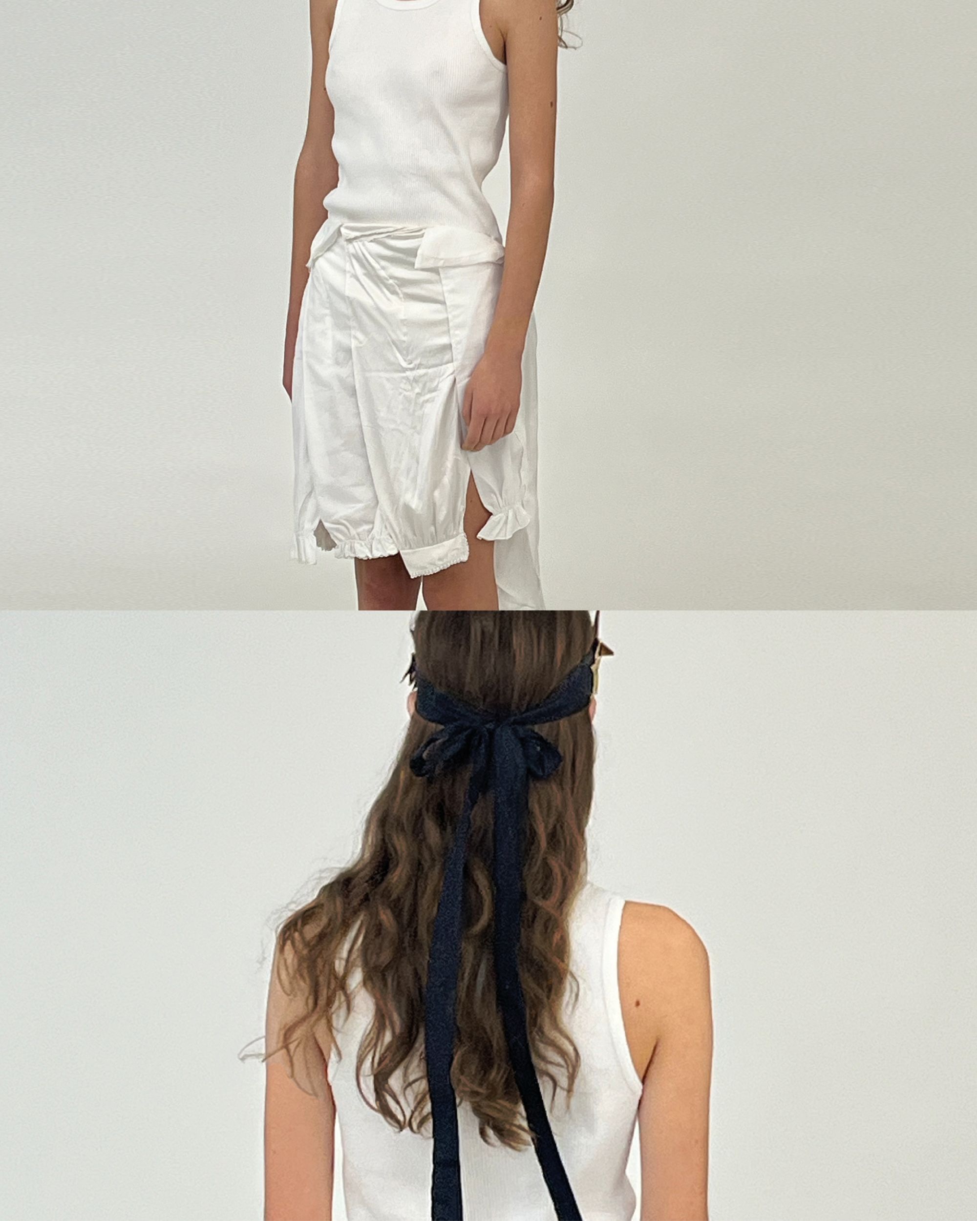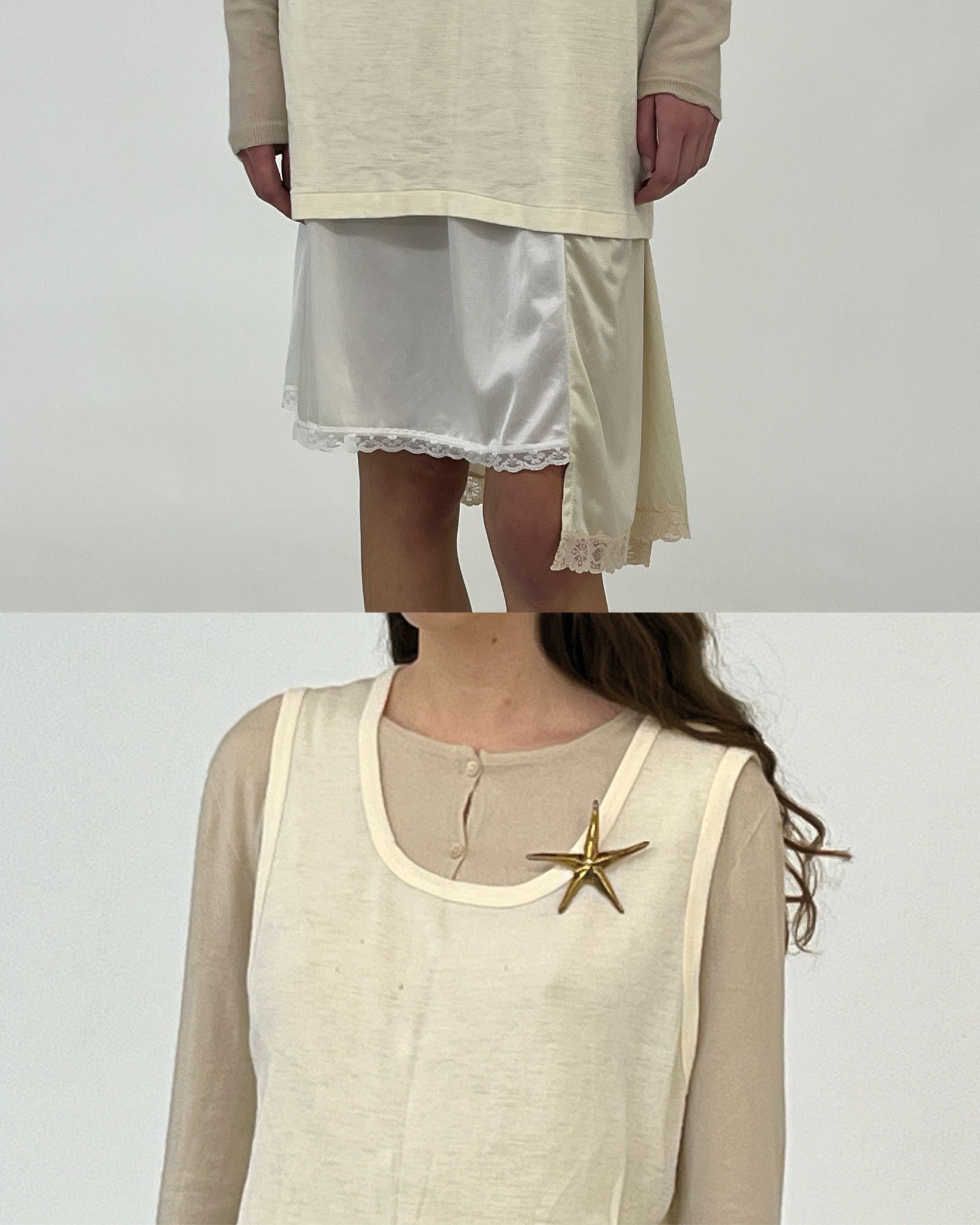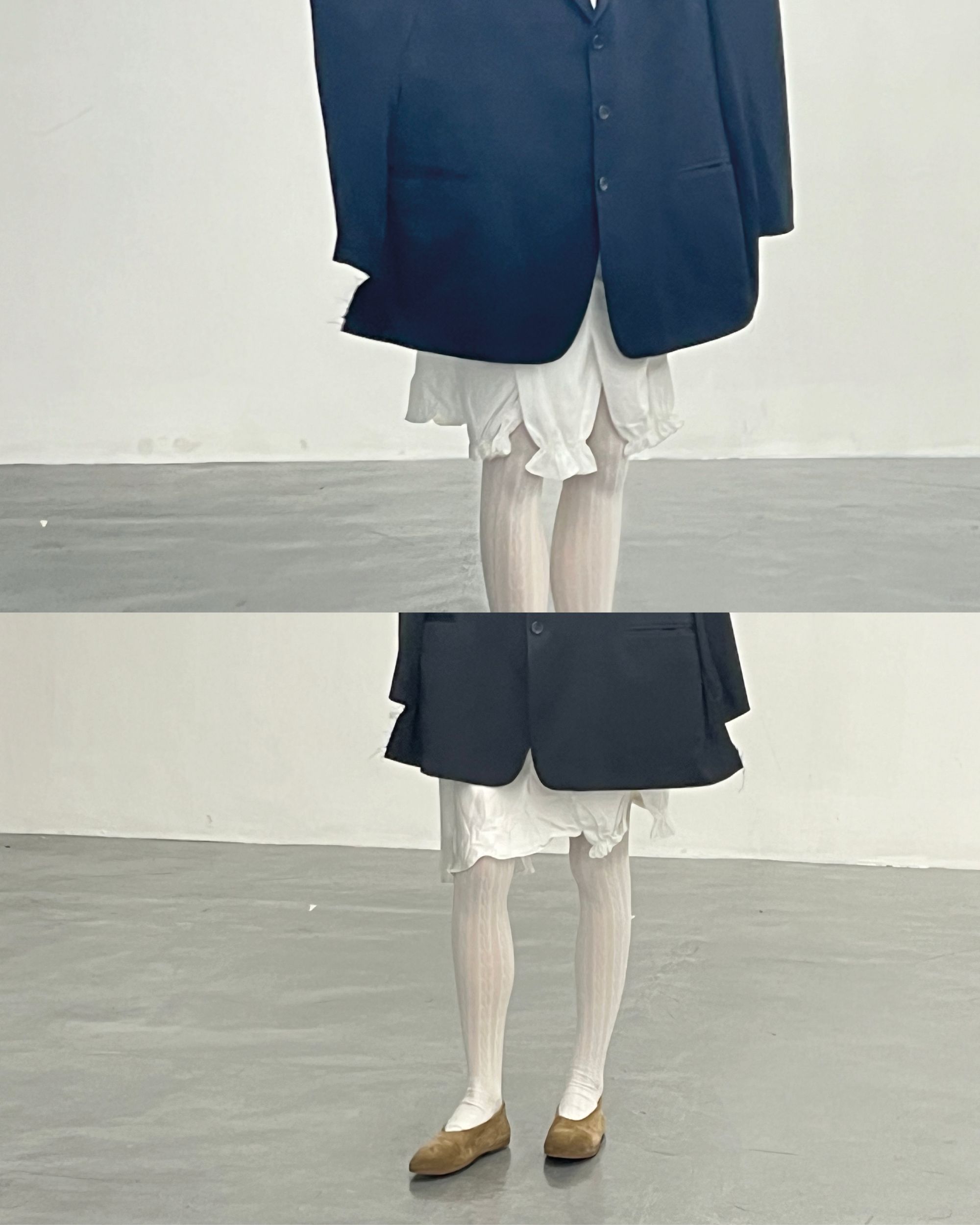 The exhibition includes works by artists from the Po Valley region, such as Stefano De Paolis (Bergamo, 1992) and Jacopo Valentini (Modena, 1990), alongside contemporary contributions like Florence Carr (UK, 1997) and historical masters like Enrico Erba (Cremona, 1895–1979). Riccardo tells us: “This collection represents a turning point for us. We are now communicating that we exist, literally, in the market. For now, in just one location, but we exist. Dover Street Market Paris has welcomed us, and that, for us, is already an achievement.” “The collaboration was born from conversations with Carla and Adrien in our 15-square-meter studio. Carla kept saying: ‘Let’s do something together!’ So we decided to draw inspiration from December folklore—coats, chestnuts, rustic countryside rigor. The garments convey a poetic simplicity we never want to lose, not even in retail.” The collection is produced by the Venetian studio Mare Karina. Special thanks go to Marta Barina, Beatrice Tafuro, and Tabatha Mazzabò, who helped make this project possible.