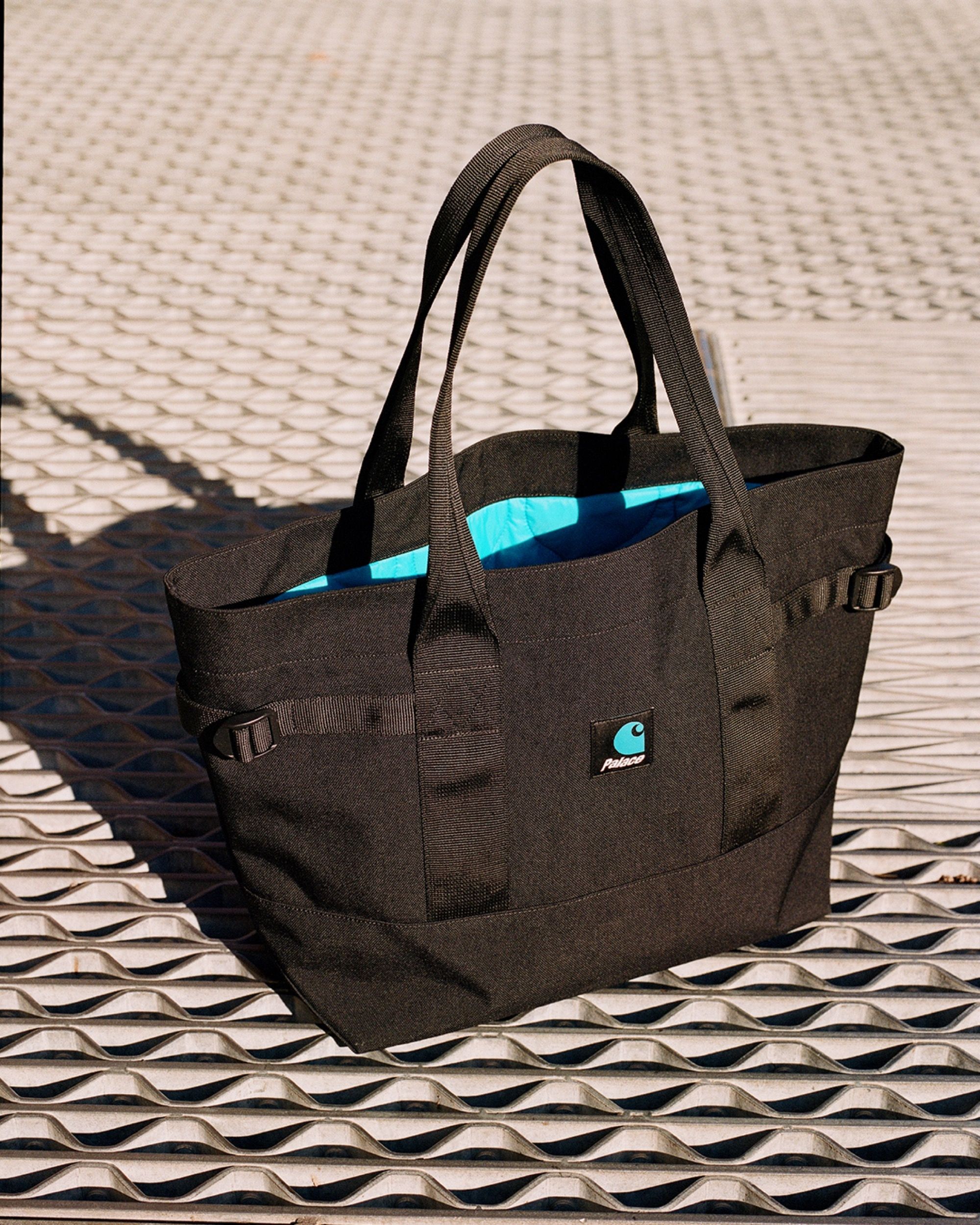 Comfortable options aren’t left out: the Car-Lux Half Zip Sweatshirt reinterprets Carhartt WIP’s classic heavyweight polycotton, turning it into a high-neck, zip-up top with a kangaroo pocket. Hooded sweatshirts, featuring shared brand embroidery, maintain a streetwear feel, while T-shirts showcase prints inspired by Carhartt WIP’s archives, refreshed with Palace’s touch for a dynamic result. Accessories follow the same approach, balancing functionality and style. The Payton Tote Bag and Duty Gloves incorporate webbing tape details for a technical edge, while the knitted Storm Mask provides cold-weather protection with a clean look. The Austin Trucker Cap is ideal for a more laid-back yet distinctive style. Each piece is visibly co-branded, leaving no doubt about the collection’s origins. Adding to the launch’s authenticity is a campaign shot in New York by Michael J. Fox, featuring riders Kanin Garner (Palace) and Max Palmer (Carhartt WIP) in an urban, genuine setting. The visuals reflect the blend of Palace’s skate culture and Carhartt WIP’s workwear heritage, showing how this partnership effortlessly brings together different worlds.
