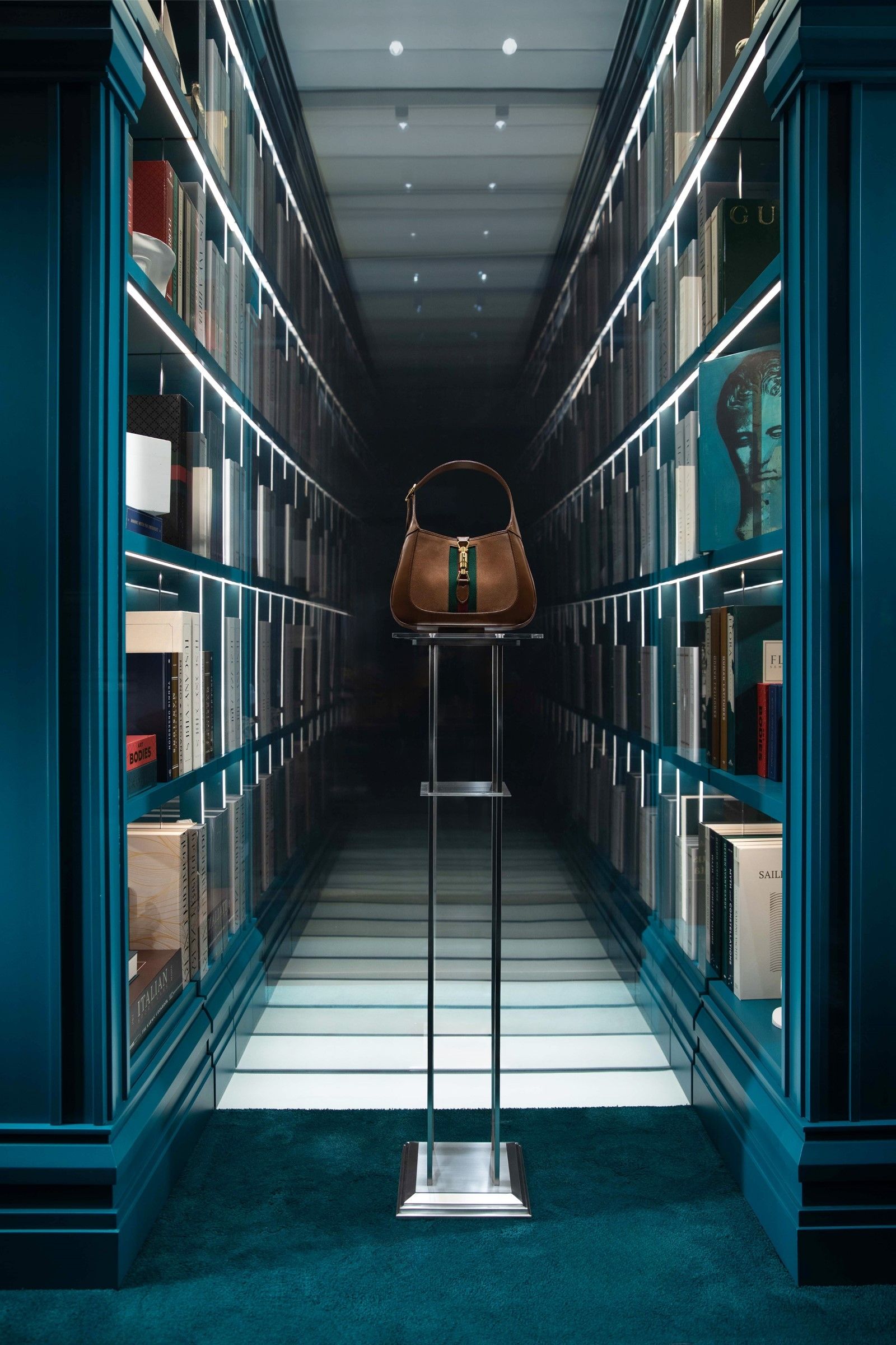 Gucci has unveiled a new vision for its storefronts, called “Endless Narratives”, which transcends the traditional display model to transform it into an immersive experience. This concept merges objects, ideas, and stories, creating a boundless cultural narrative that invites the public to explore infinite possibilities of interpretation. It is not simply a display, but a journey through the past, present, and future, where books, miniature statues, and archival bookends intertwine with the brand’s innovation, giving life to ever-evolving and novel narratives. The heart of "Endless Narratives" lies in the poetry of reflections: mirrored shelves create visual depth, expand the space, and transform every object into a source of inspiration. Each shelf tells a story and invites the viewer to immerse themselves in an imaginative universe, where tradition and modernity harmoniously dialogue. This approach reflects Gucci’s unique ability to transcend temporal barriers, moving fluidly between different eras and styles.