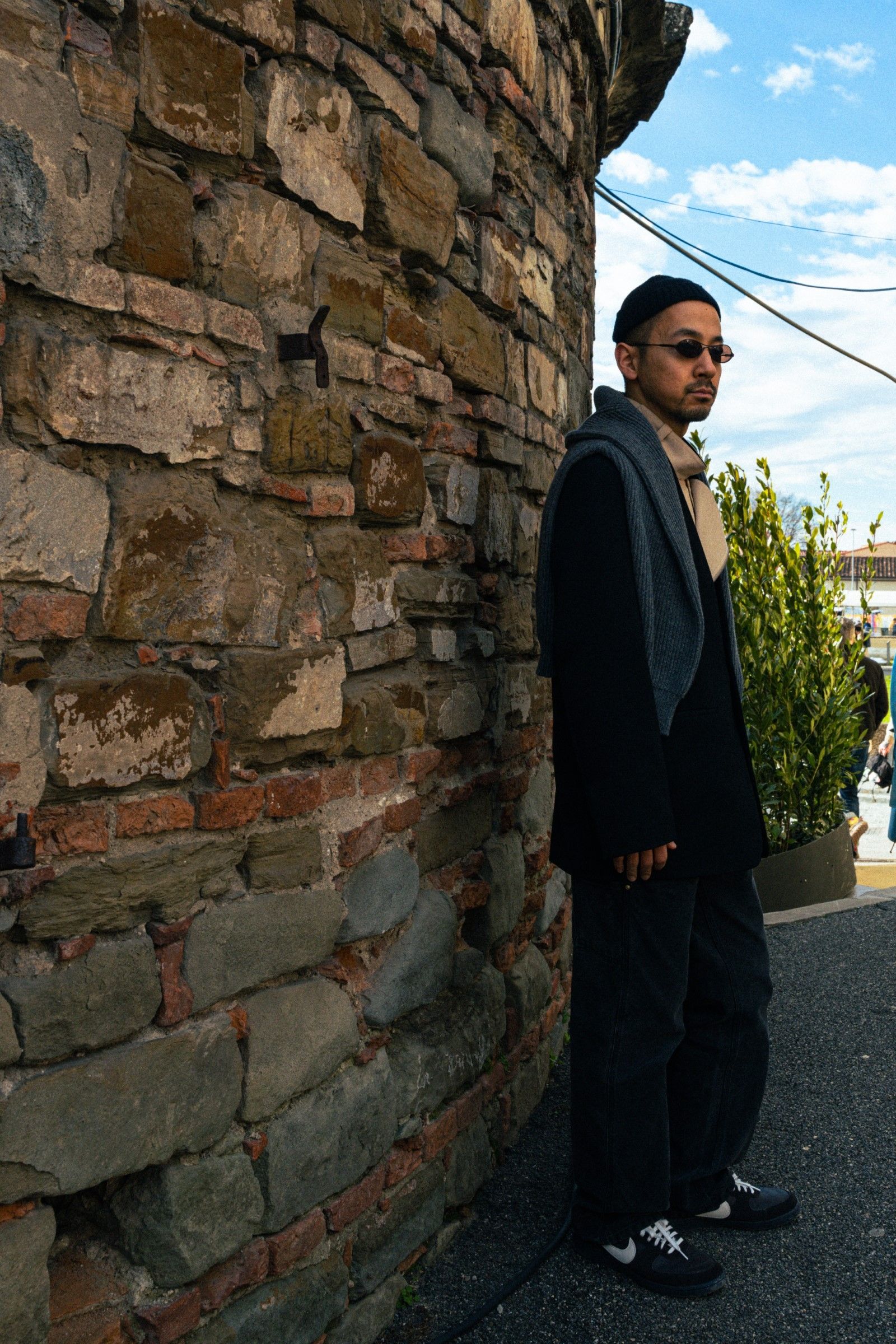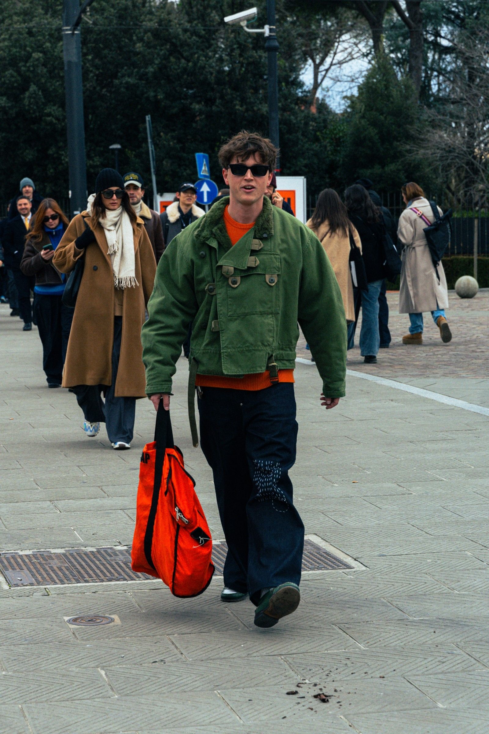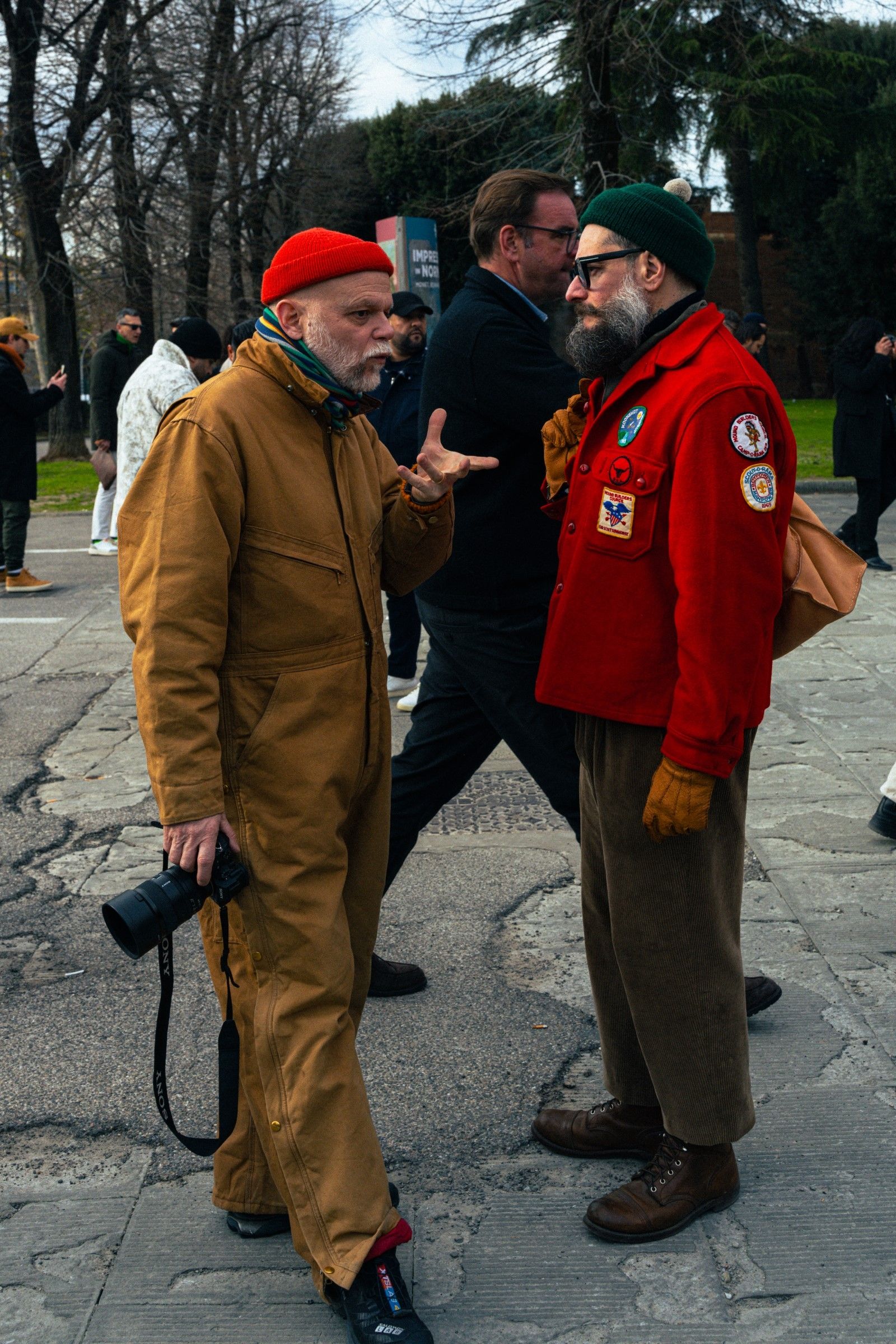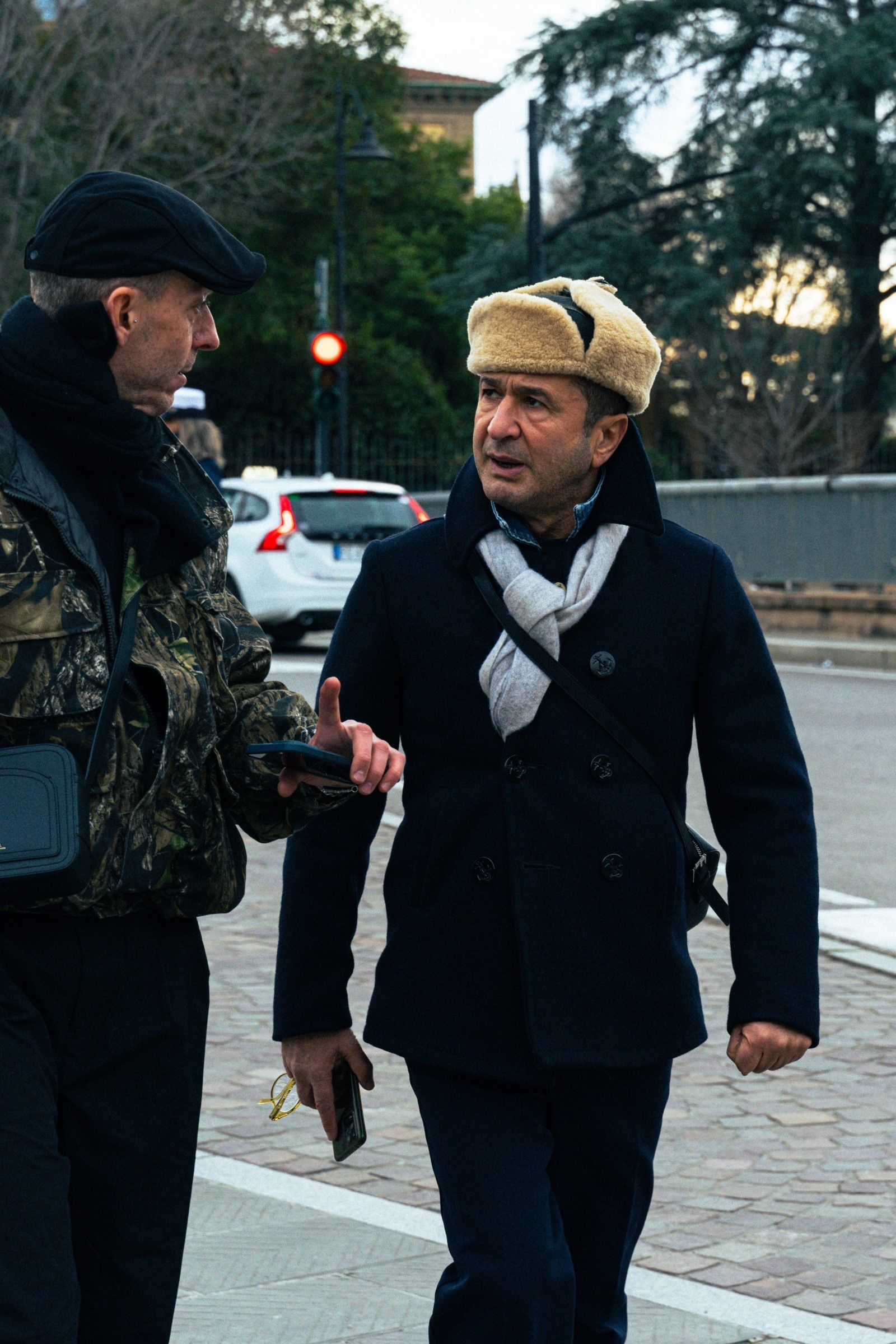 In the icy setting of Florence, where even the warmest outfits seemed insufficient to counter the biting cold, the 107th edition of Pitti Uomo took place, an unmissable event for international menswear. With the theme "FIRE" symbolically heating up the atmosphere, the piazza at Fortezza da Basso was brought to life by a striking digital bonfire and the presence of 70 brands, 45% of which were international, ready to unveil the evolution of men's wardrobes. Among the best brands showcased were Superga, Sebago, Champions, ETON, WP – Lavori in Corso, GUESS, GAS, Luis Figo, Tombolini, and Piacenza 1733, all of which stood out as key players in a fair that did not disappoint. The outfits worn by attendees were stunning, contributing to a breathtaking style landscape where the famous Pitti "peacocks," masters in the art of drawing attention with impeccable and original looks, made their presence known. Additionally, the gorgeous looks from MM6 Maison Margiela, which we captured backstage, were a highlight of the event.