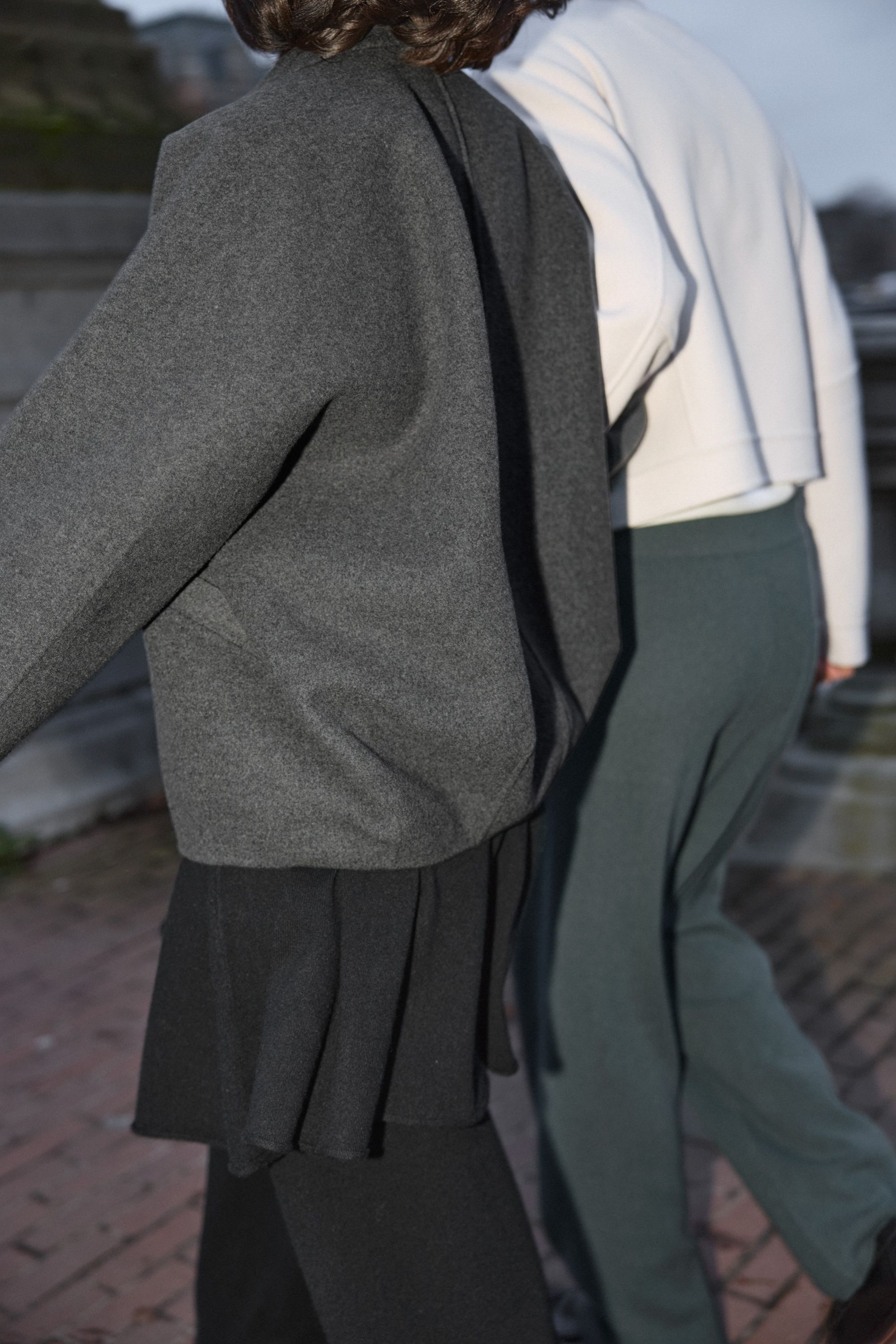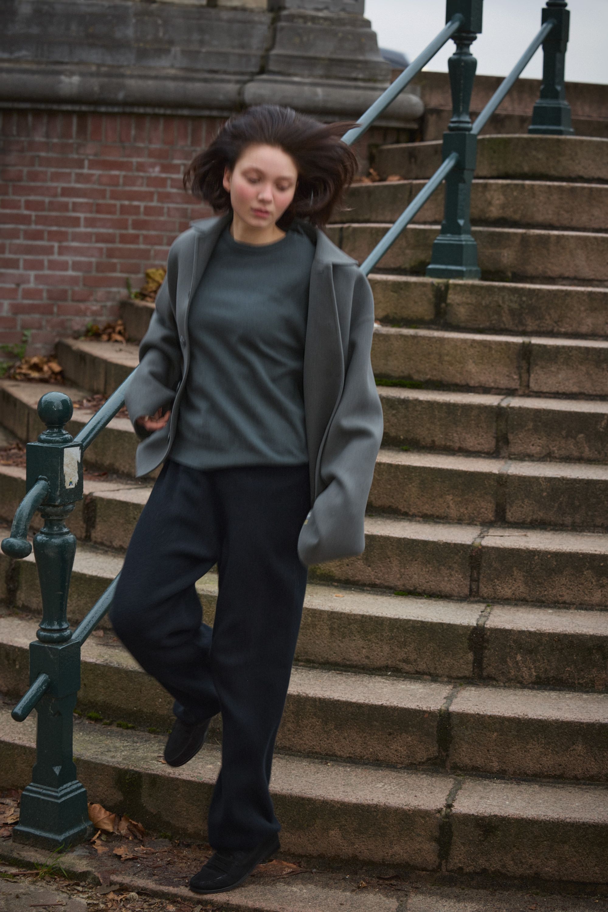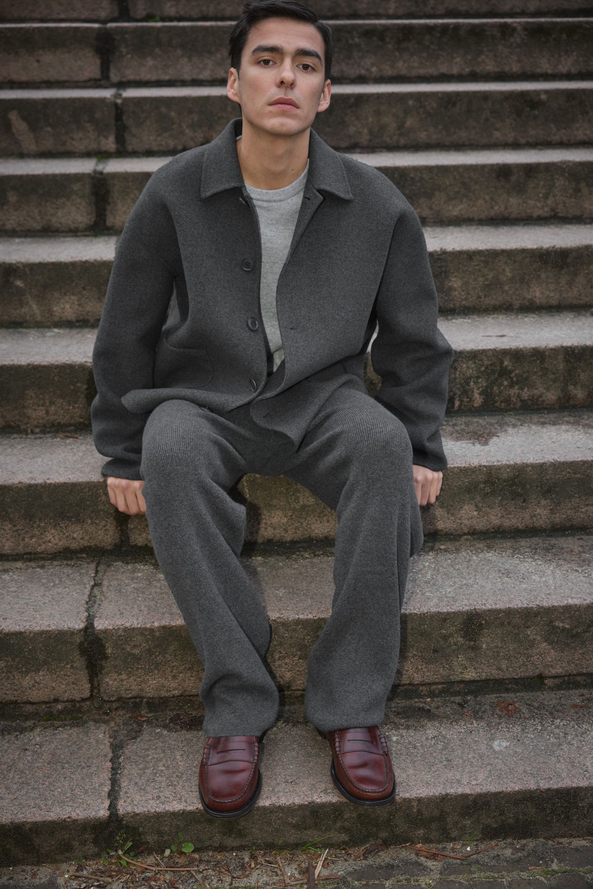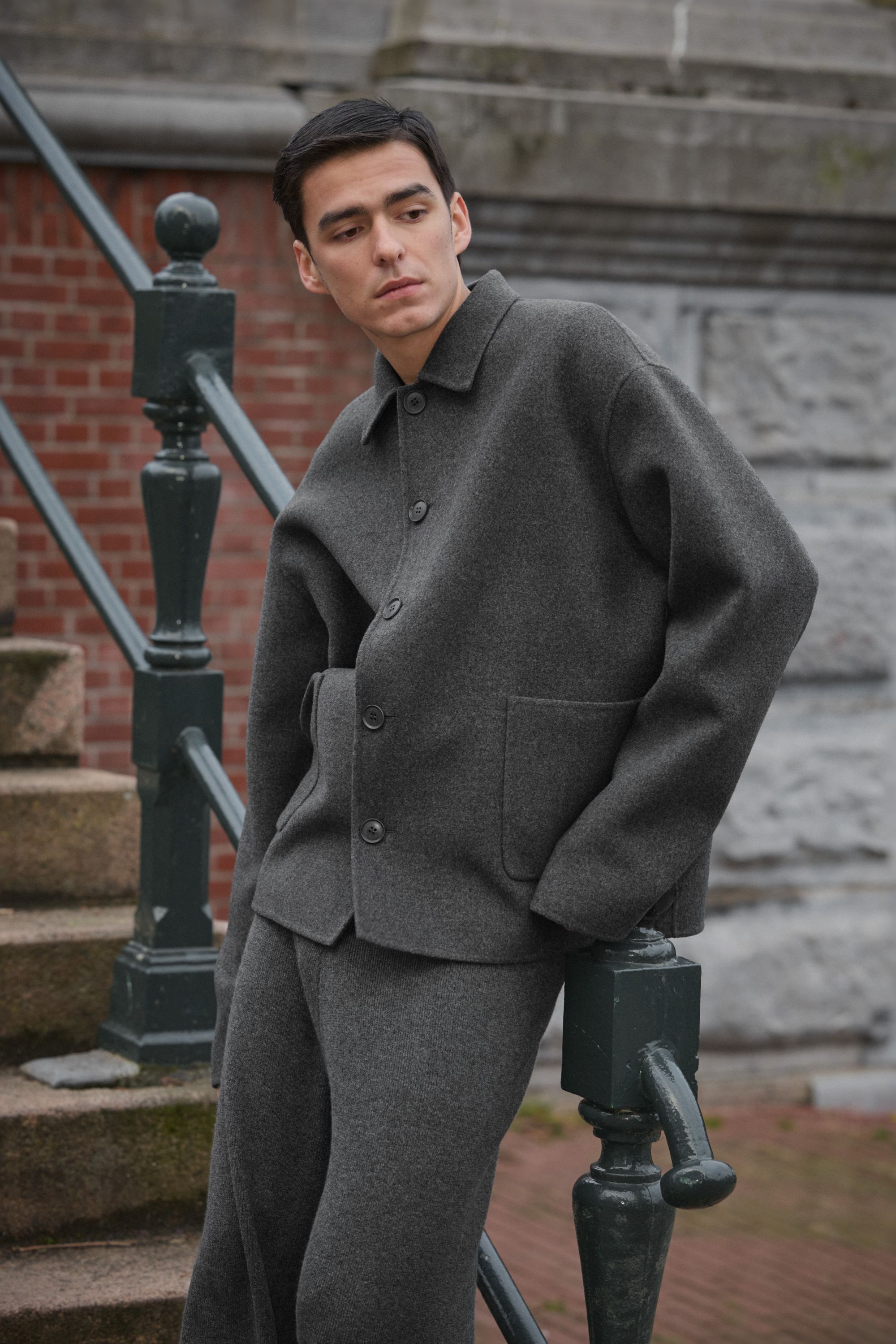 The Edition 32 of Extreme Cashmere was designed according to the brand's core values, aimed at creating collections meant to last over time and suitable for all seasons. Softness, contemporary silhouettes, and punk influences served as the backdrop to historical inspirations for a spring collection that reinvents the concept of a wardrobe. The main references for Edition 32 of Extreme Cashmere were ancient Danish coat designs, while the face of early 20th-century author Virginia Woolf appears in screen-printed designs on cashmere and cotton t-shirts. The writer is a great muse for the designers of Extreme Cashmere, who consider her a timeless icon of intellectual boldness and uncompromising beauty. The collection introduces a novelty for the brand, with double-faced fabric debuting on the motor, maker, and bog jackets, made of 70% wool and 30% cashmere for a relaxed effect.