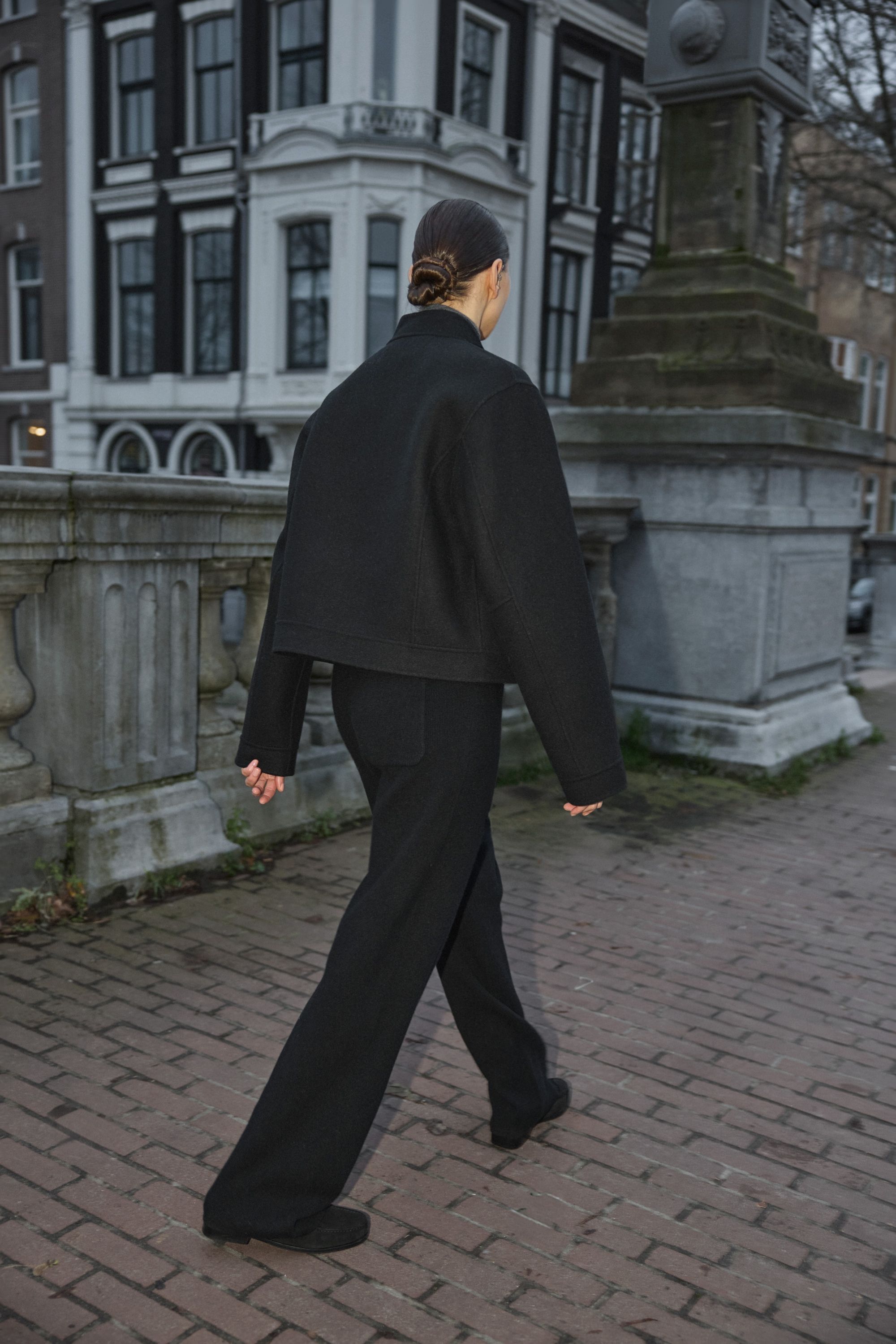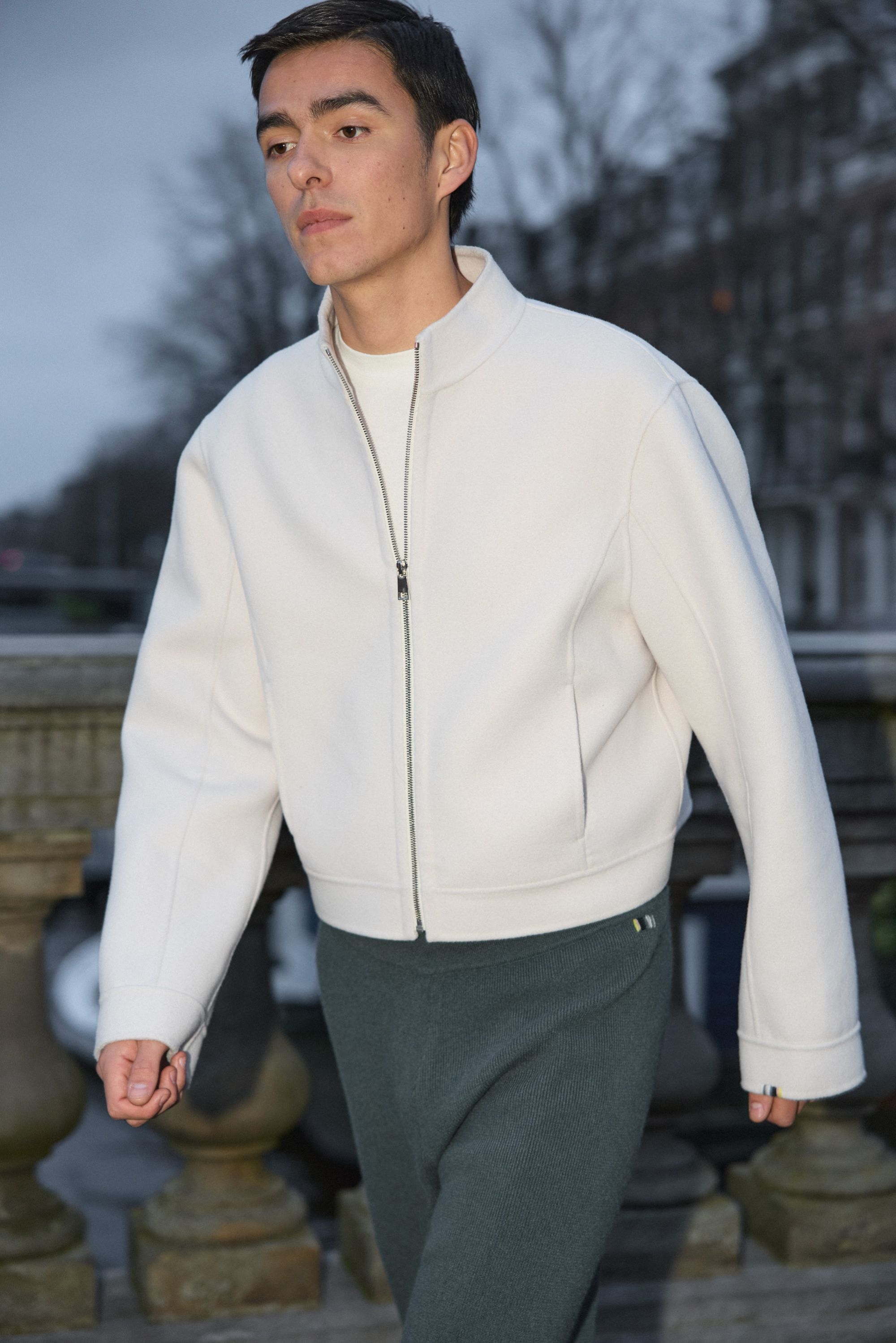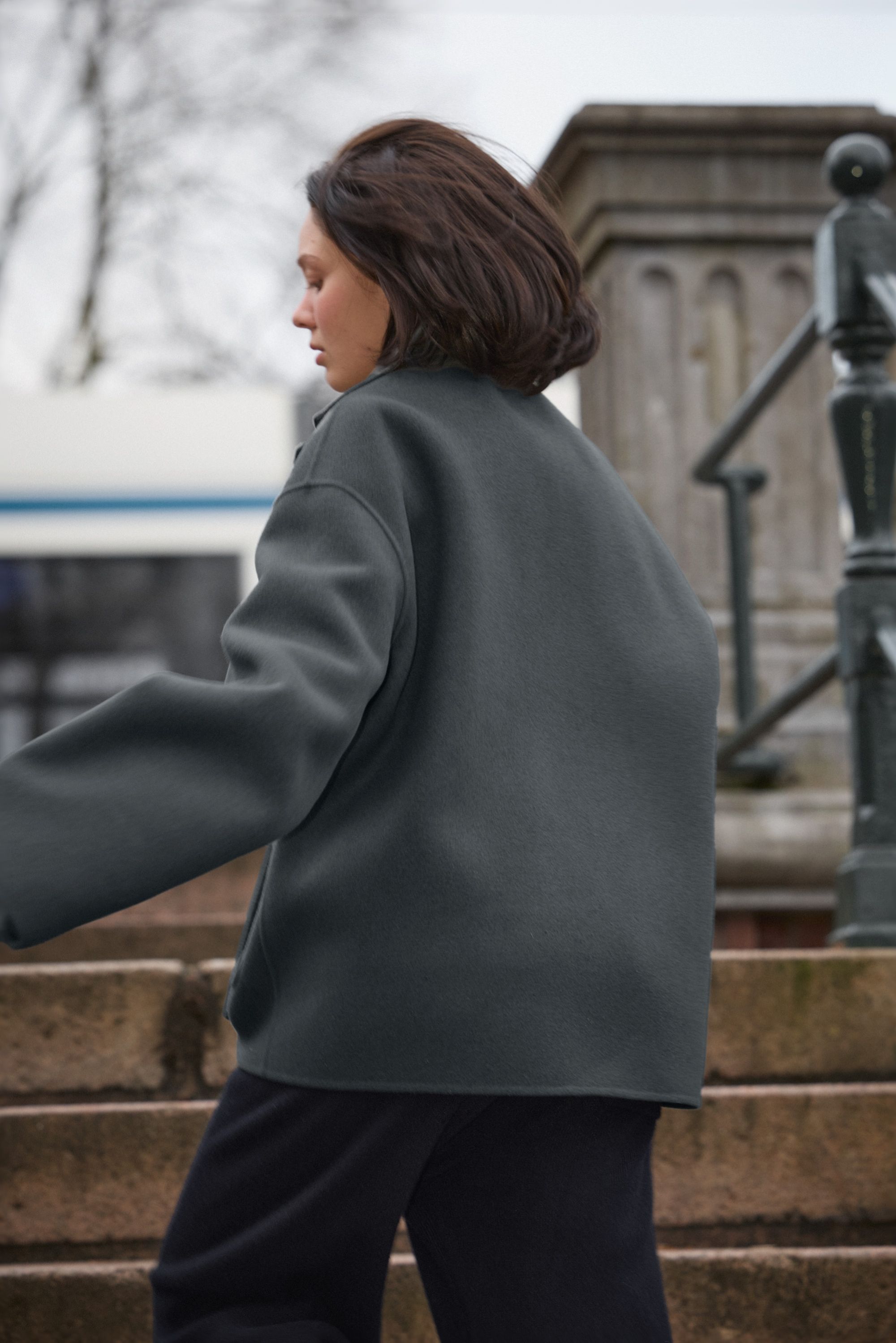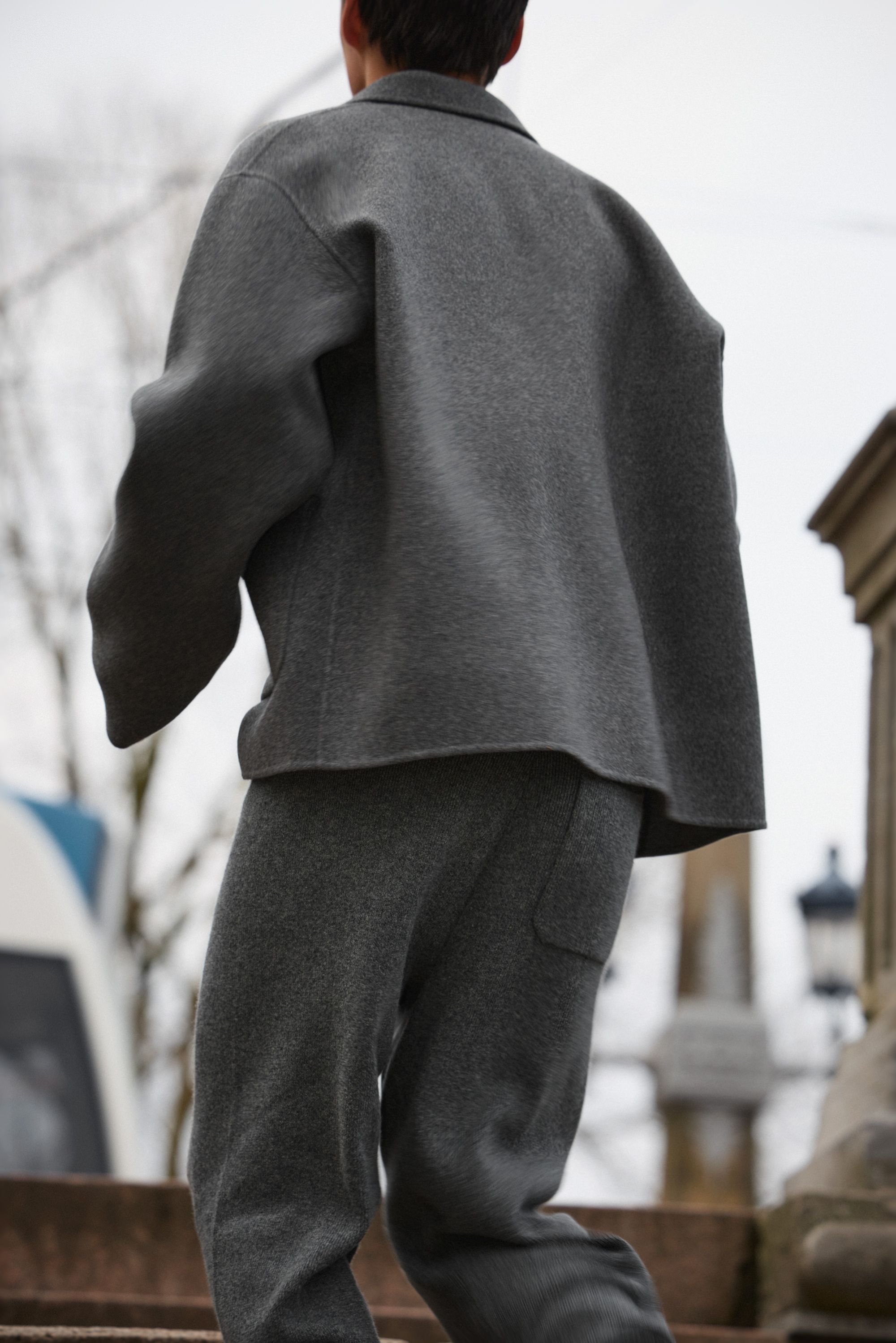 The Edition 32 of Extreme Cashmere was designed according to the brand's core values, aimed at creating collections meant to last over time and suitable for all seasons. Softness, contemporary silhouettes, and punk influences served as the backdrop to historical inspirations for a spring collection that reinvents the concept of a wardrobe. The main references for Edition 32 of Extreme Cashmere were ancient Danish coat designs, while the face of early 20th-century author Virginia Woolf appears in screen-printed designs on cashmere and cotton t-shirts. The writer is a great muse for the designers of Extreme Cashmere, who consider her a timeless icon of intellectual boldness and uncompromising beauty. The collection introduces a novelty for the brand, with double-faced fabric debuting on the motor, maker, and bog jackets, made of 70% wool and 30% cashmere for a relaxed effect.