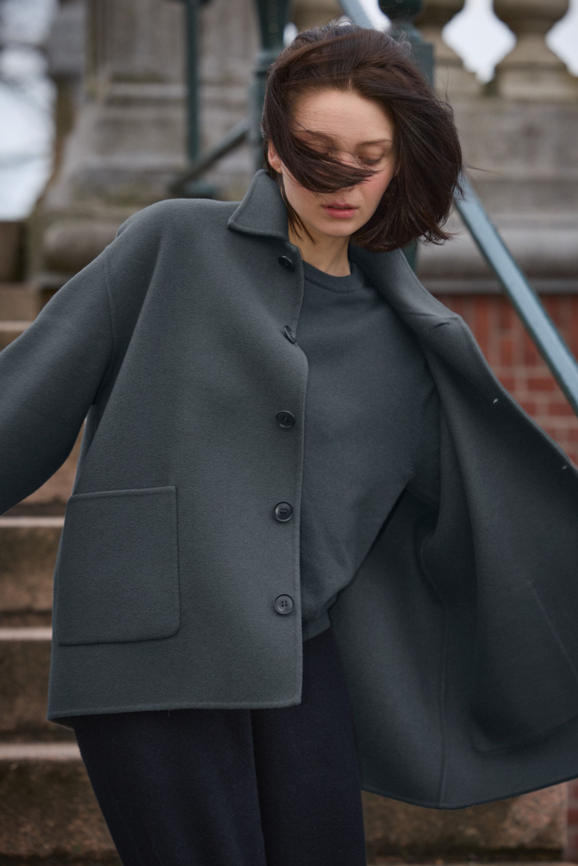The palette of Edition 32 also reflects a perfect balance between tradition and contemporary style, alternating classics like felt, navy, raven, and chalk with vibrant tones such as bright pink and sunflower yellow, joined by the new lake and heaven. The most distinctive pieces of the new Edition 32 are the motor, an essential version of the classic biker jacket; the maker, a utility jacket with oversized pockets and bold lines; and the bog, inspired by an ancient Danish design reinterpreted with three-quarter-length sleeves.