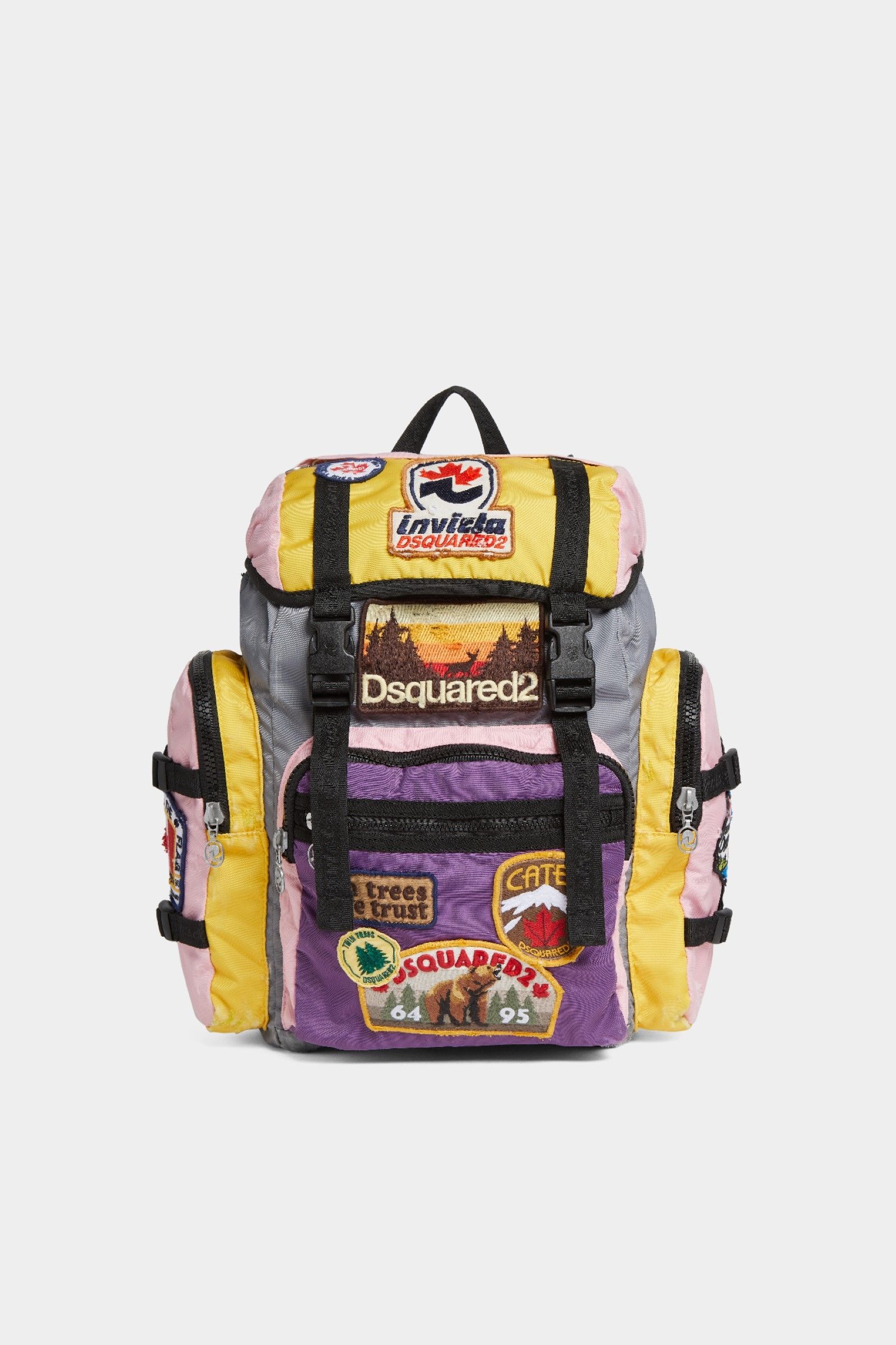 Balancing this lived-in look are options in vibrant colors that bring energy to the capsule. Pieces in bold tones such as orange, yellow, lilac, and purple offer a clean and modern take on the brands' shared logo. These colors appear on sweatshirts, T-shirts, and oversized long-sleeved tops, providing dynamic alternatives for those seeking a bolder style. Accessories, such as baseball caps in the same tones decorated with contrast logos or embroidered patches, underscore the playful yet functional spirit of the collaboration. At the heart of the collection are reinterpretations of Invicta's classics, including backpacks and belt bags that seamlessly blend practicality and style. The Monviso backpack, versatile and multifunctional, is available in men's and women's versions in vibrant red, green, and yellow with stonewashed details, as well as more subdued options in military green or unique combinations of yellow, pink, and purple. For women, the Jollino crossbody bag stands out as a multifunctional piece, easily transformable into a mini backpack or shoulder bag. Men's accessories round out the offering with practical items like belt bags and wallets, perfect for adventurers always on the go.