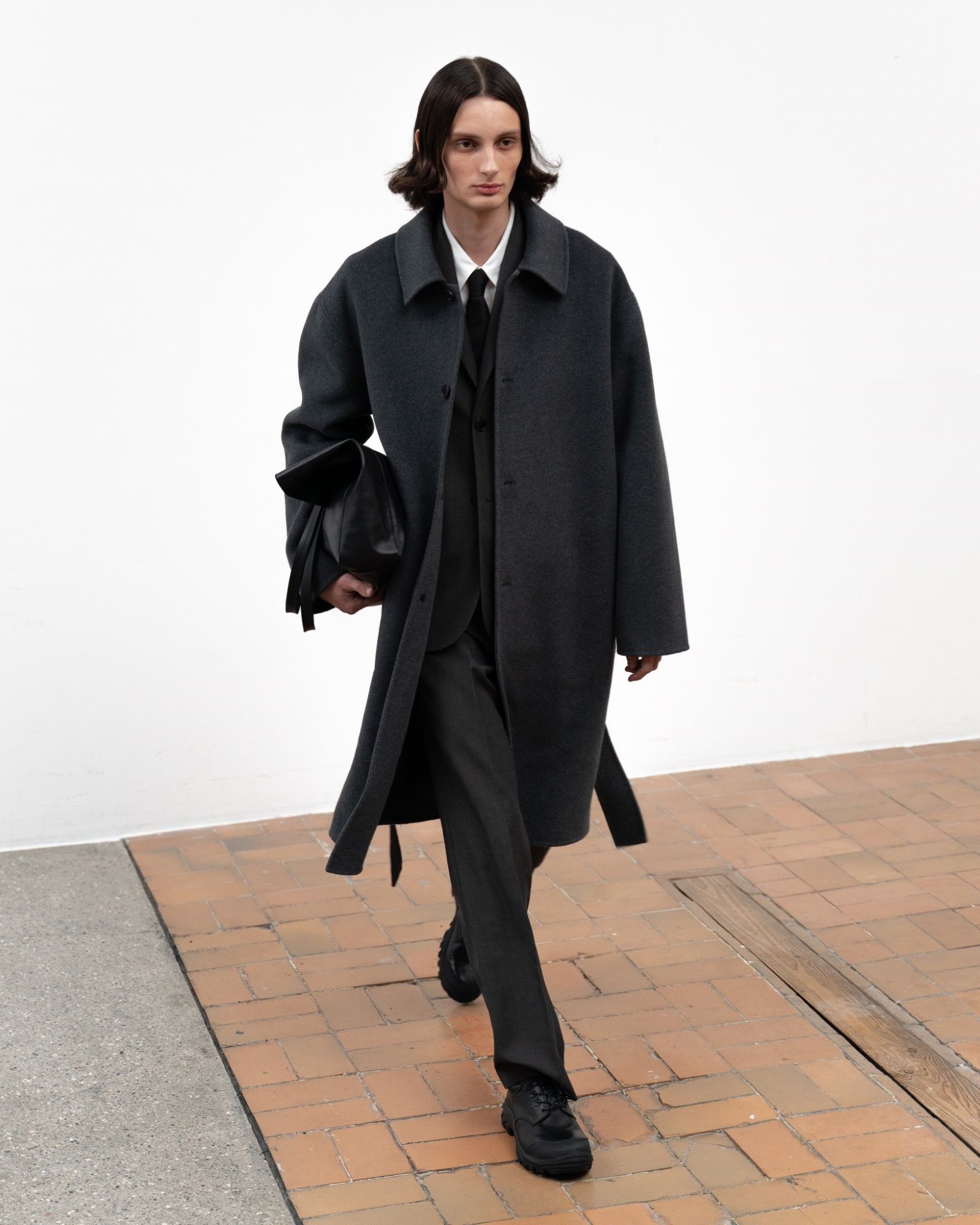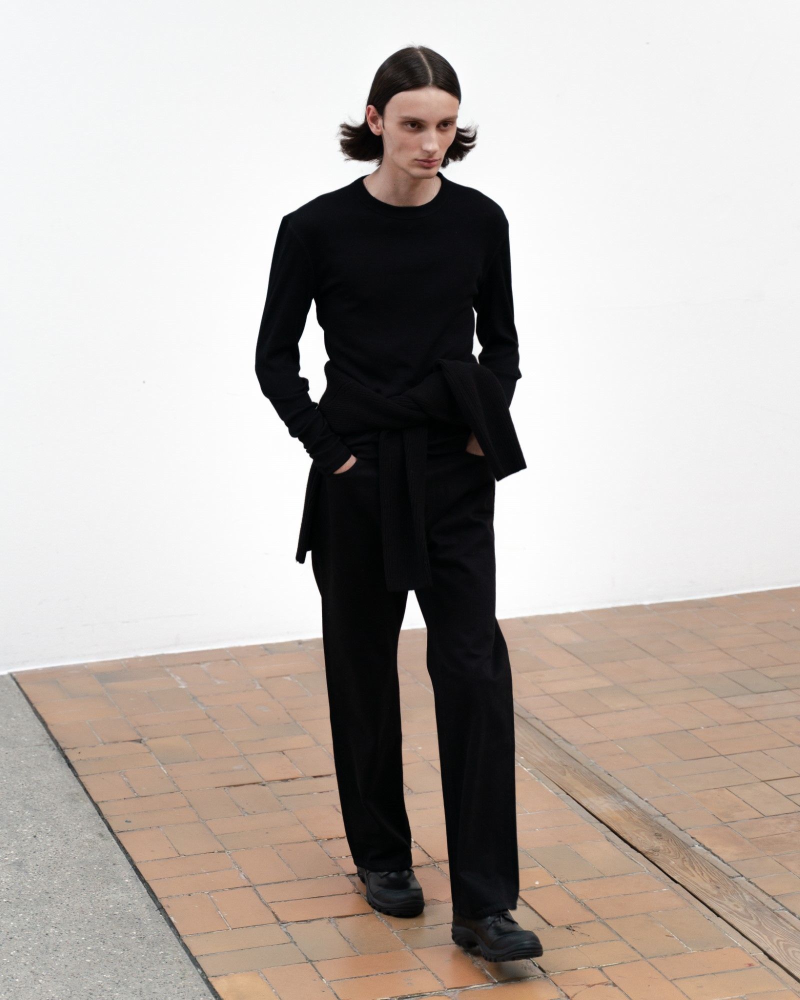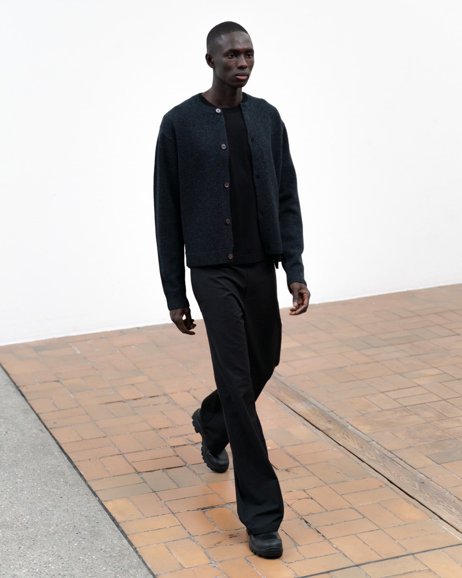 Among Frederik's favorite pieces from the current collection, he mentions the heavy Italian suede pants paired with a mercerized long sleeve tee and a boiled wool cardigan: «The colors look great together and the contrast between the fabric textures is very intriguing». Another look we’ll remember is a total black outfit consisting of a cotton raincoat made in Scotland, Super 120 pure wool trousers, and a Mongolian cashmere crewneck: «A perfect balance between business and casual», as the designer describes it. All pieces have a certain understated charm, so to speak, but no less effective: the purity of their lines and the hidden ingenuity in their architecture make their composure desirable. It’s no surprise, then, that the brand’s fame (and sales) are expanding beyond its native borders. «We’re starting to collaborate with wonderful stores around the world», Frederik told us, «and we want to continue that journey. We’re not in a rush to get big. We like being small and being able to say no to certain things. It’s a dream to develop slowly and always improve».