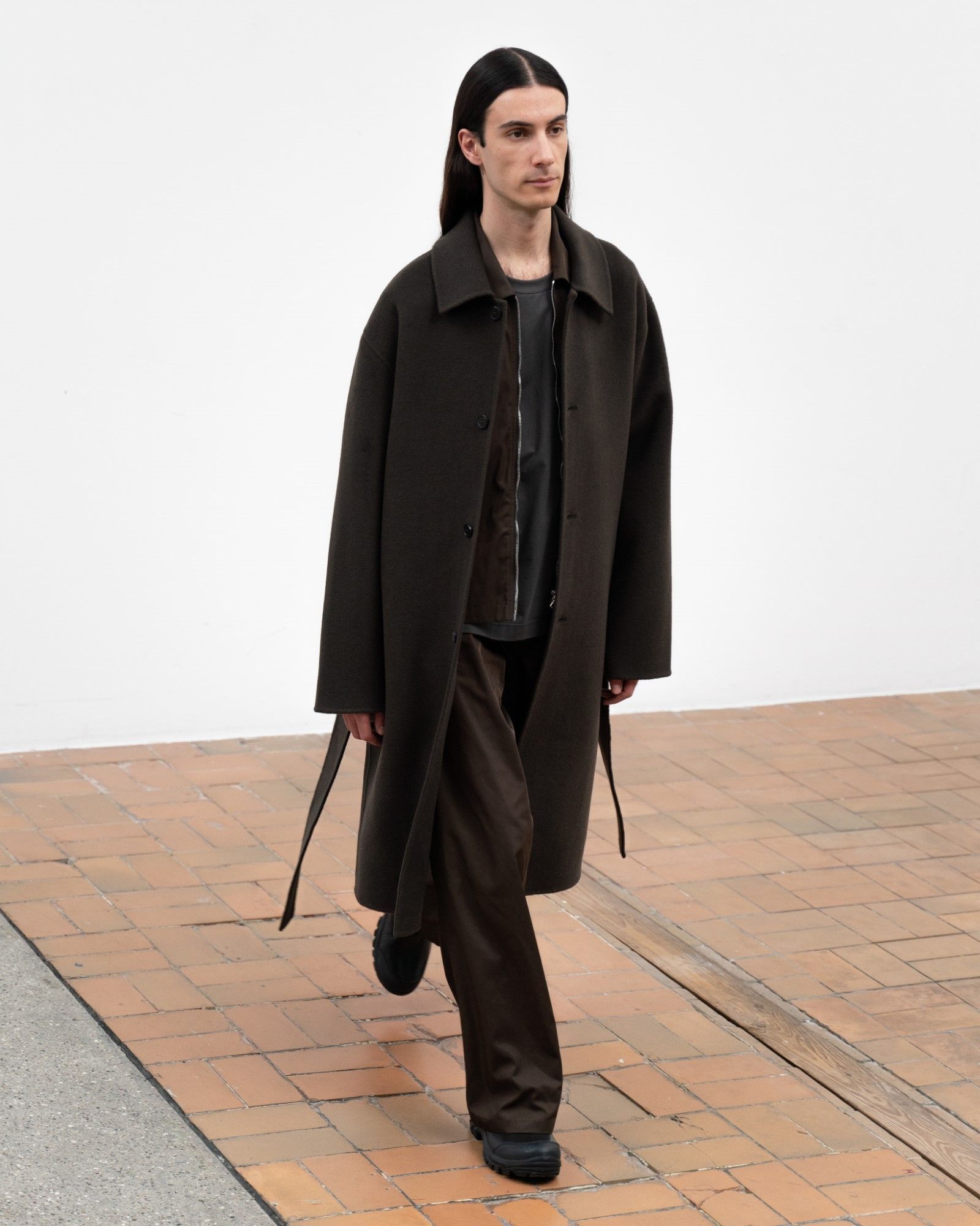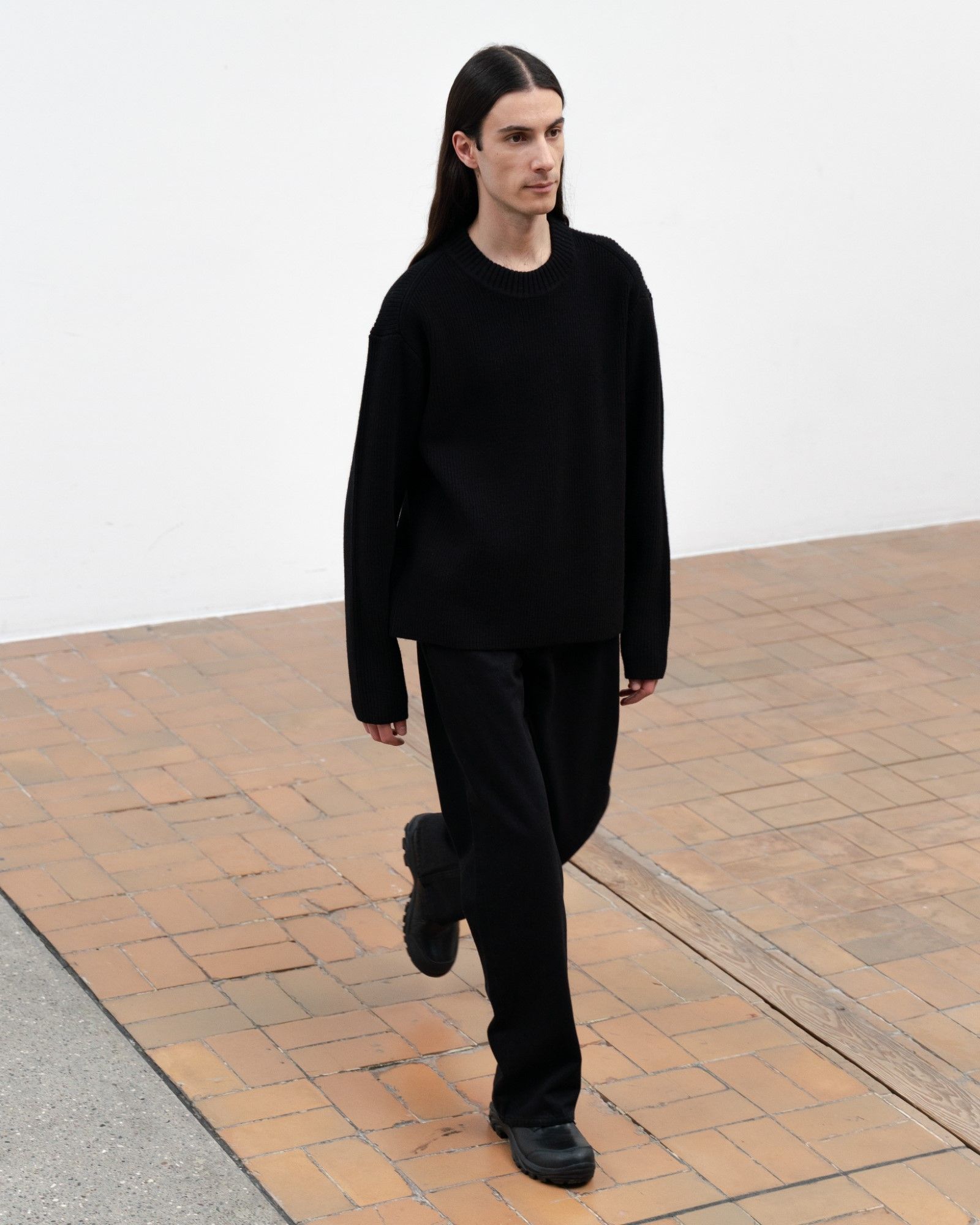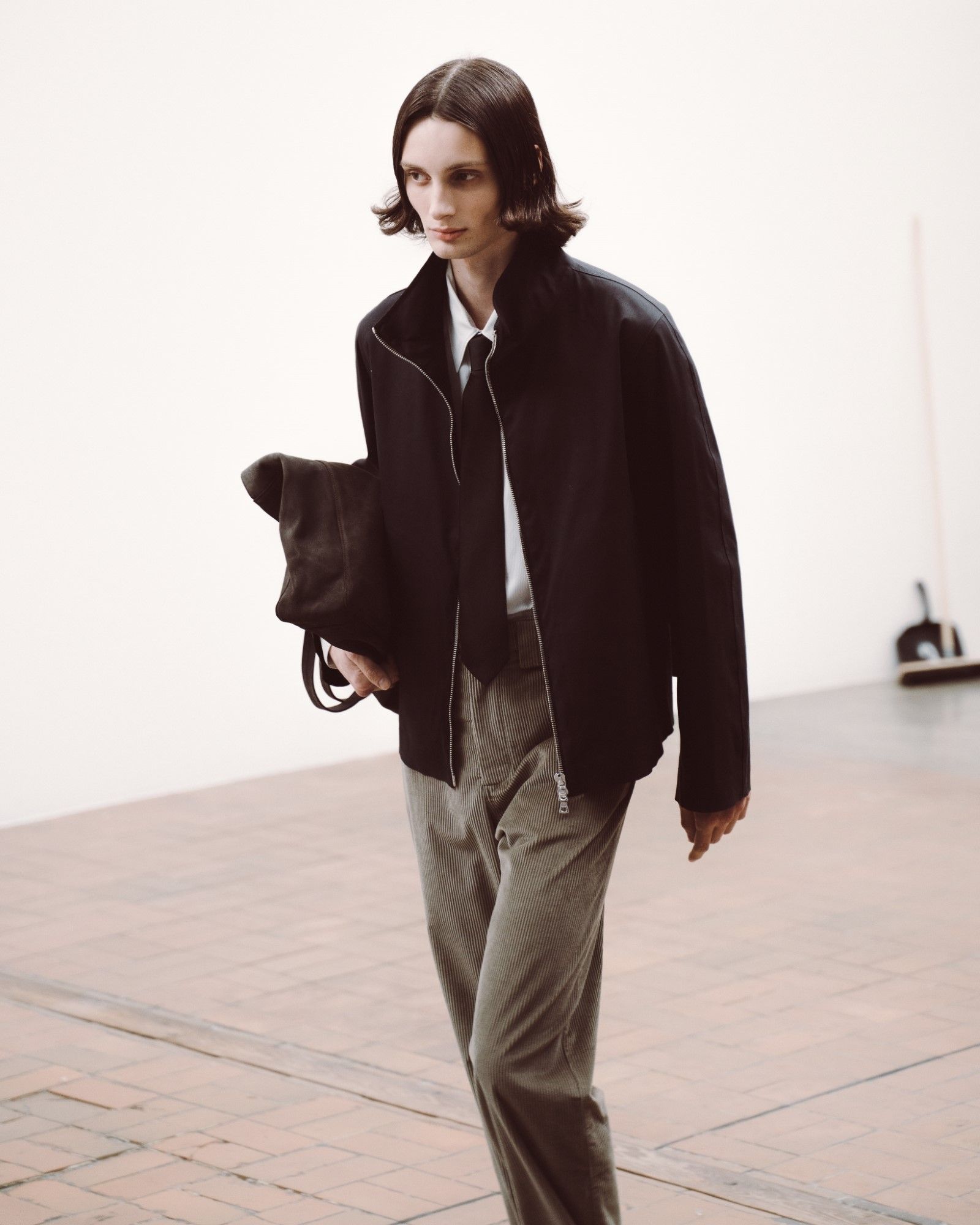 Among Frederik's favorite pieces from the current collection, he mentions the heavy Italian suede pants paired with a mercerized long sleeve tee and a boiled wool cardigan: «The colors look great together and the contrast between the fabric textures is very intriguing». Another look we’ll remember is a total black outfit consisting of a cotton raincoat made in Scotland, Super 120 pure wool trousers, and a Mongolian cashmere crewneck: «A perfect balance between business and casual», as the designer describes it. All pieces have a certain understated charm, so to speak, but no less effective: the purity of their lines and the hidden ingenuity in their architecture make their composure desirable. It’s no surprise, then, that the brand’s fame (and sales) are expanding beyond its native borders. «We’re starting to collaborate with wonderful stores around the world», Frederik told us, «and we want to continue that journey. We’re not in a rush to get big. We like being small and being able to say no to certain things. It’s a dream to develop slowly and always improve».