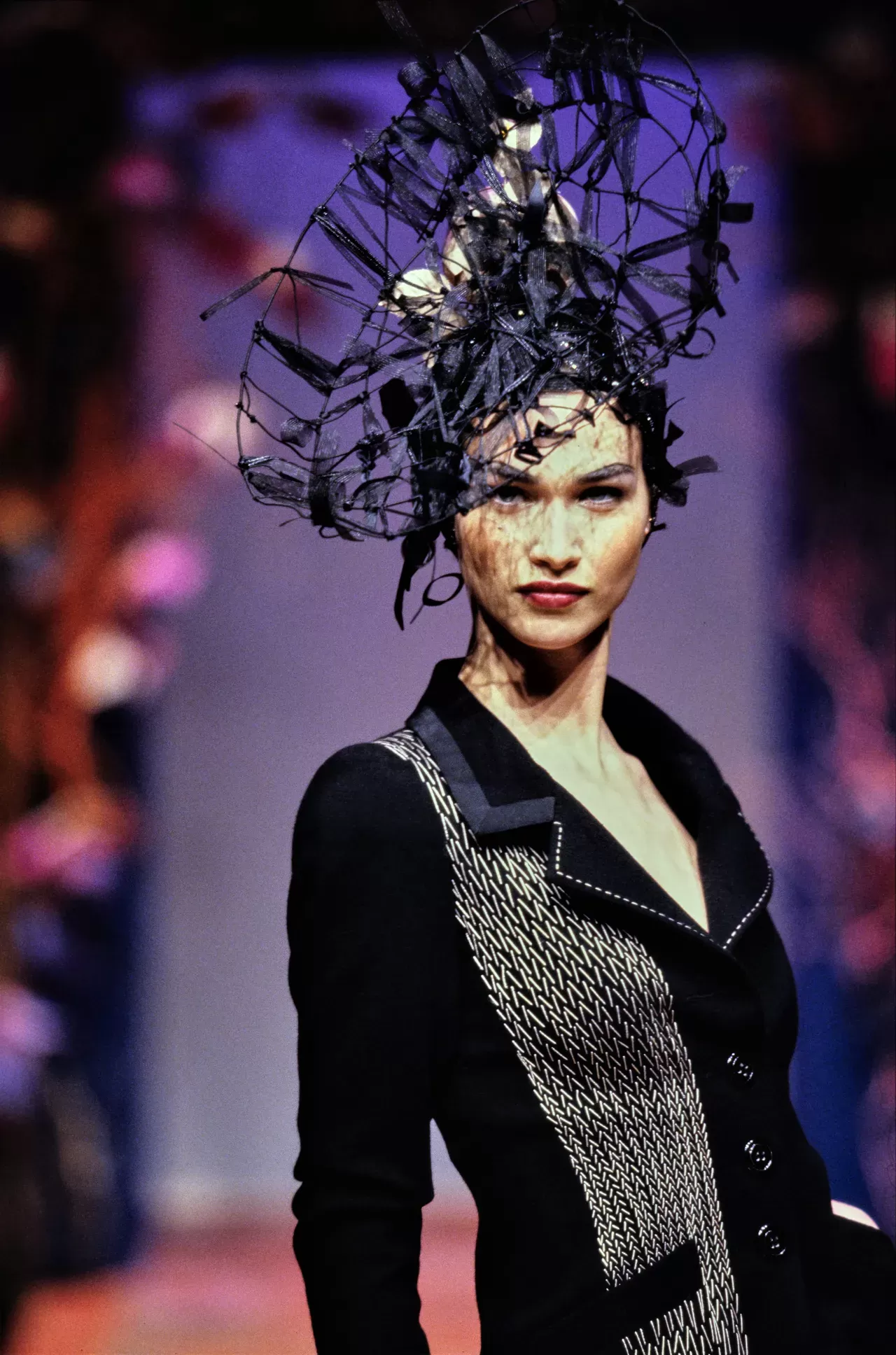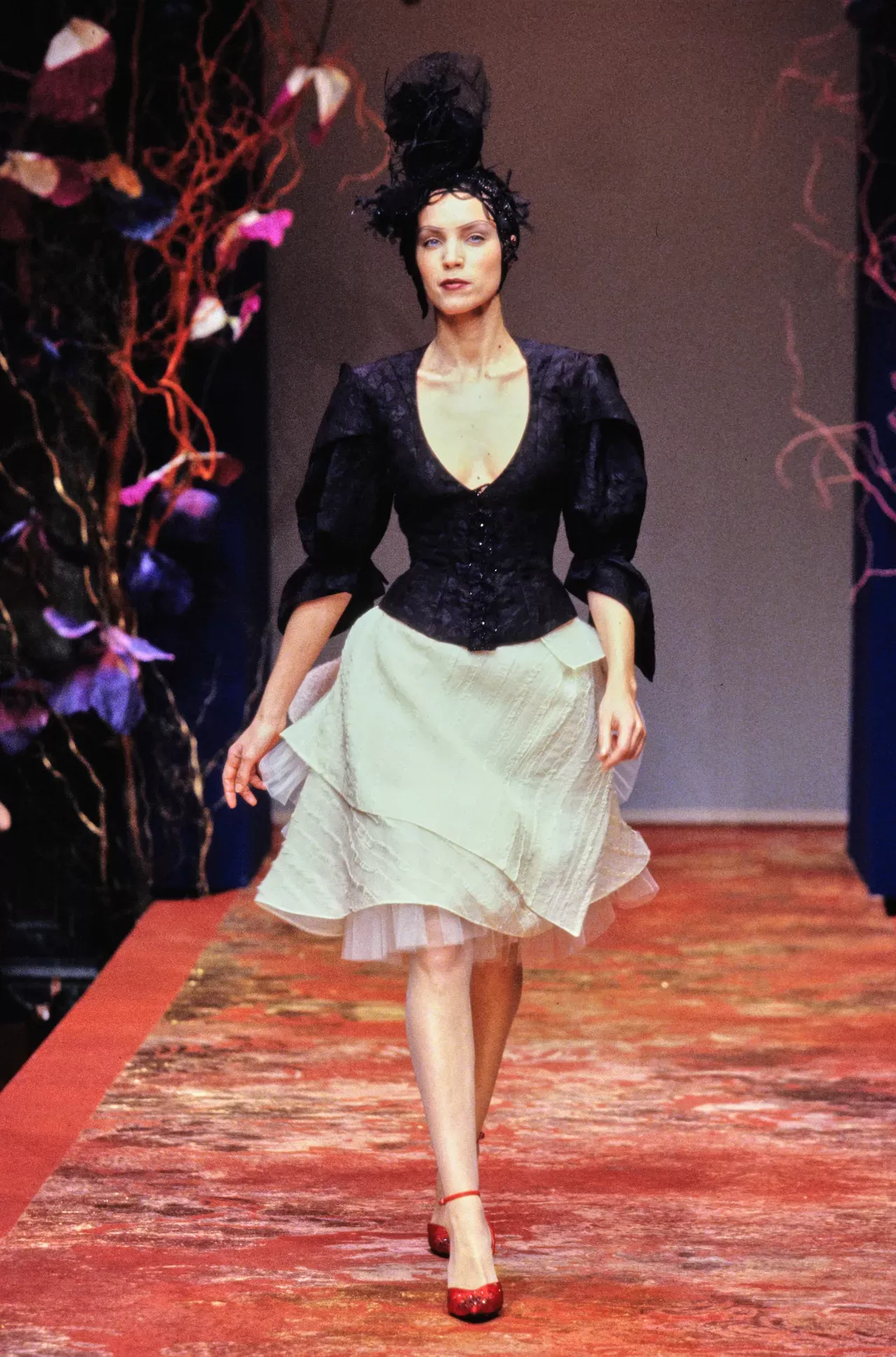 While Lacroix's looks are a spectacle, their forms are sculptural: dramatic tailoring, corsets, crinolines... The volume is exaggerated without the show ever becoming a circus. Everything is precise and structured, allowing for extravagant, high-flying cuts. At Christian Lacroix’s final couture show in 2009, fashion was on the brink of a new revolution—ushering in the decade of Luxury Streetwear. It was the rise of Virgil Abloh and Demna's Balenciaga... Lacroix's tailoring seemed out of time, outdated. But every revolution follows the law of eternal return, and in 2019, as a herald for the end of the streetwear decade, Daniel Roseberry made his debut as artistic director at Schiaparelli, paving the way for the return of the corseted silhouette. Thus, if we like to imagine a comeback for Christian Lacroix—there is no doubt that the corsets that made him famous would once again be in vogue, as evidenced by Mona Patel's appearance at the British Fashion Awards wearing a vintage Christian Lacroix corset from the 1996 couture collection.