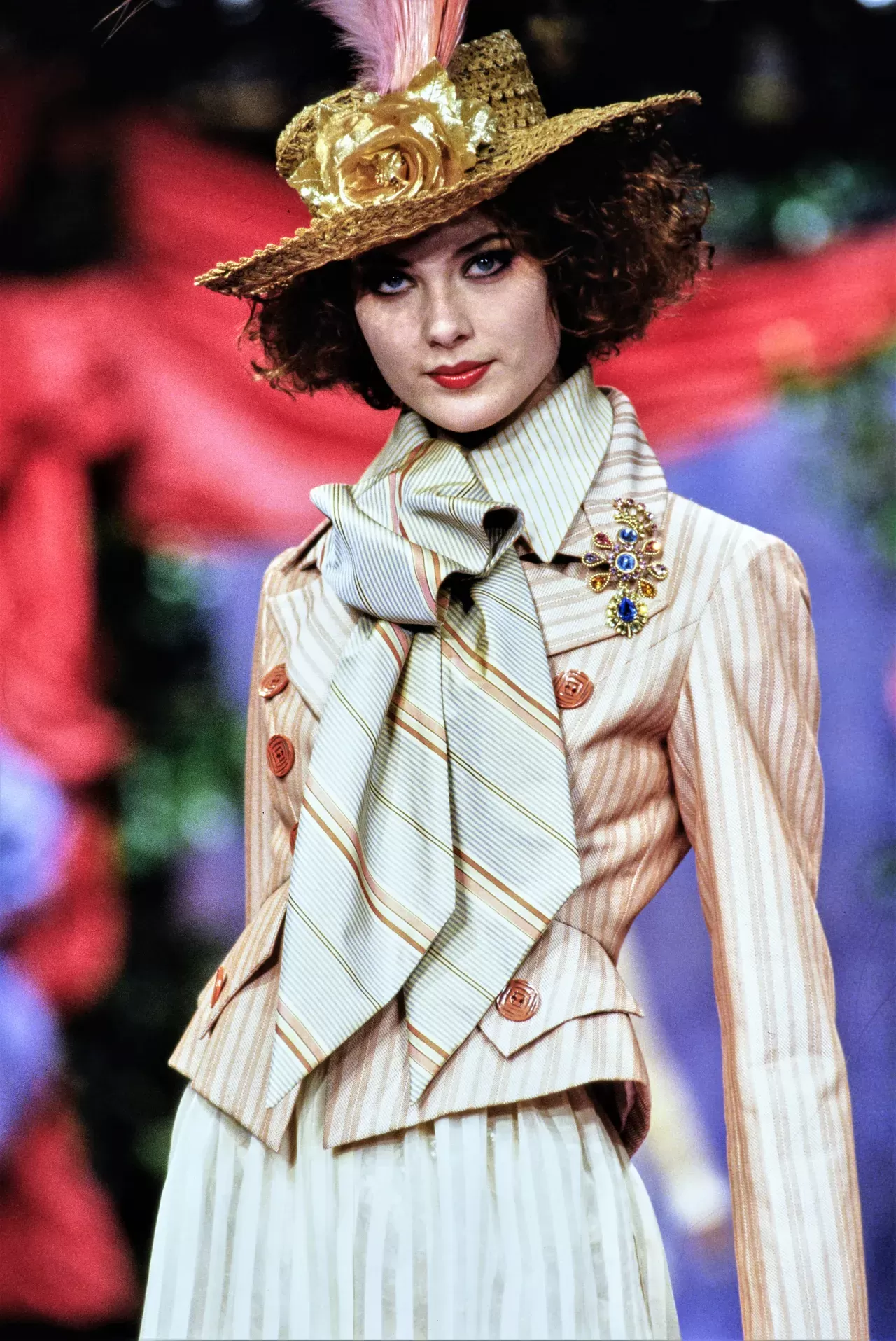 Influenced by studies in art history and later by his closeness to the world of theater, Christian Lacroix turned fashion into a dramatic playground. The story of a passionate romance between a couturier and the runway envisioned as a stage. Each look becomes, from head to toe, a spectacle that never fails to amaze. In 1996, during the golden age of his career, he explored his passion for theater and received a Molière Award for Best Costume Designer for Phèdre. Theater remained a constant in his career, and in a 2017 interview with Augustin Trapenard, he stated: "The theater is the real world for me: I don’t see myself as a couturier." The theatricality that defines his creations also draws from numerous historical inspirations: the French court of the 18th century, Spain, the Middle Ages—as seen in the FW88 show with a look reminiscent of Katherine Hepburn as Eleanor of Aquitaine in The Lion in Winter. While this theatricality was Lacroix's signature for two decades, how would it fare today? The answer likely lies in the positive reception of Valentino’s SS25 Couture collection, with dresses that are true carnivals of color and historical inspiration, suggesting a welcoming return for the spectacular Lacroix.