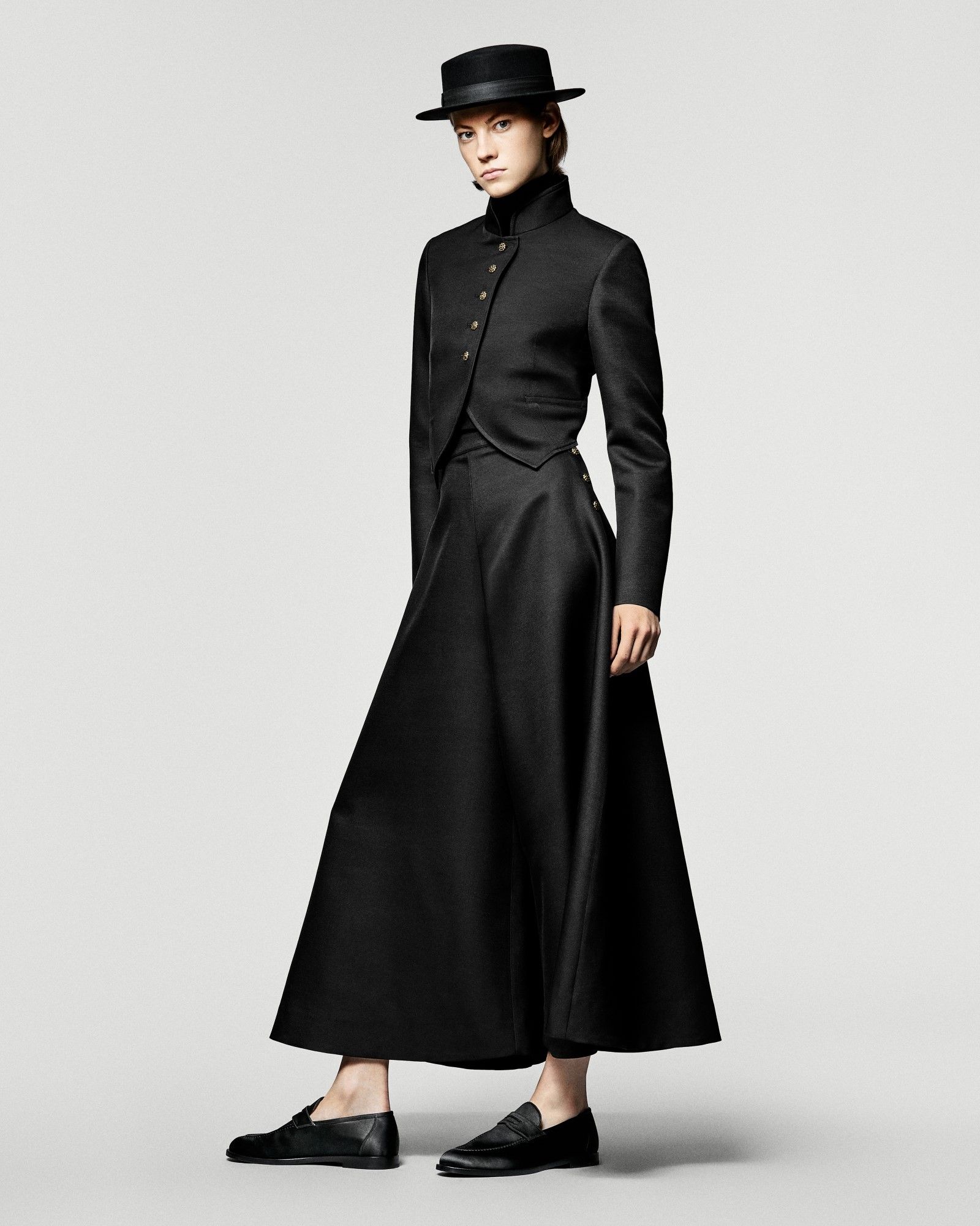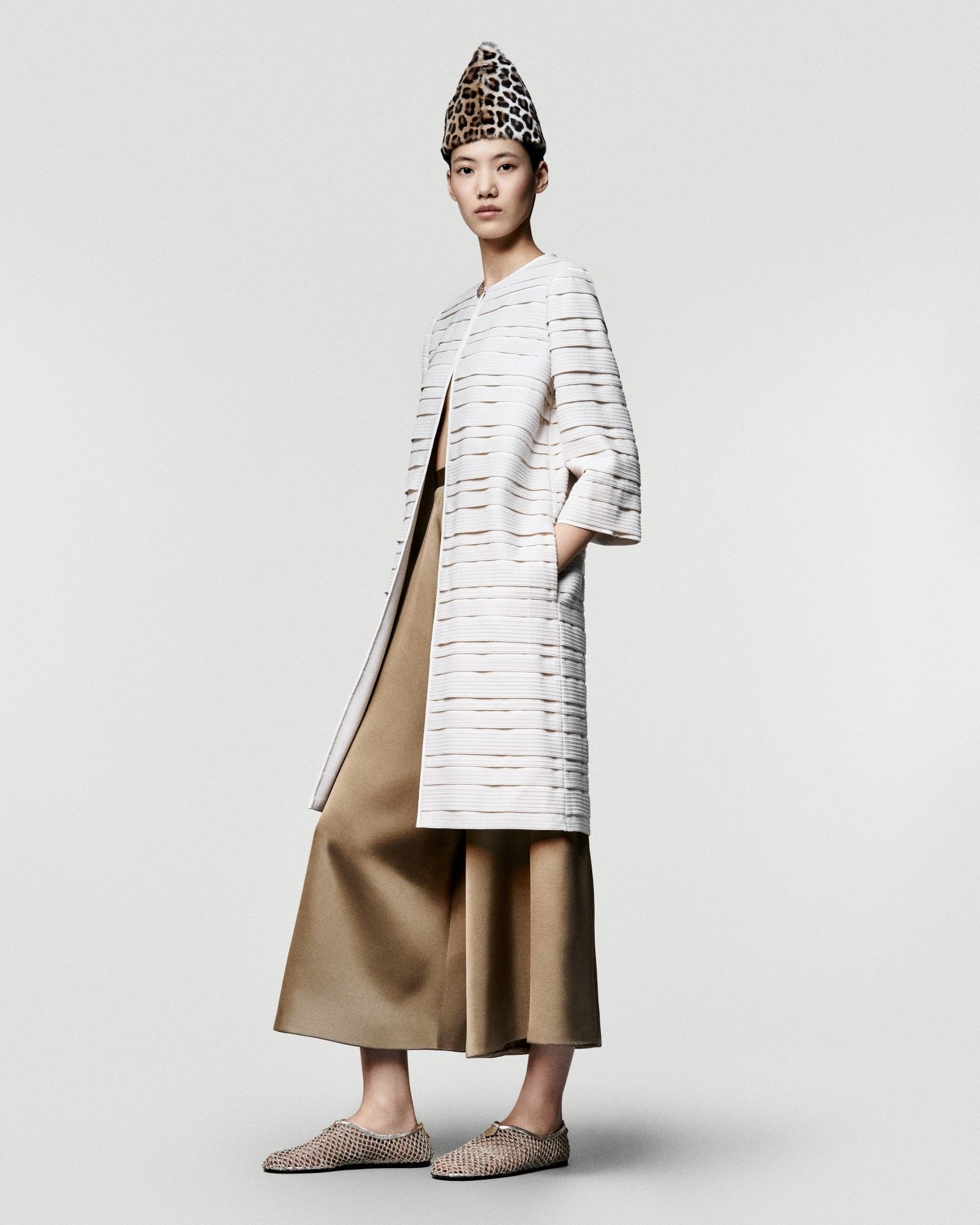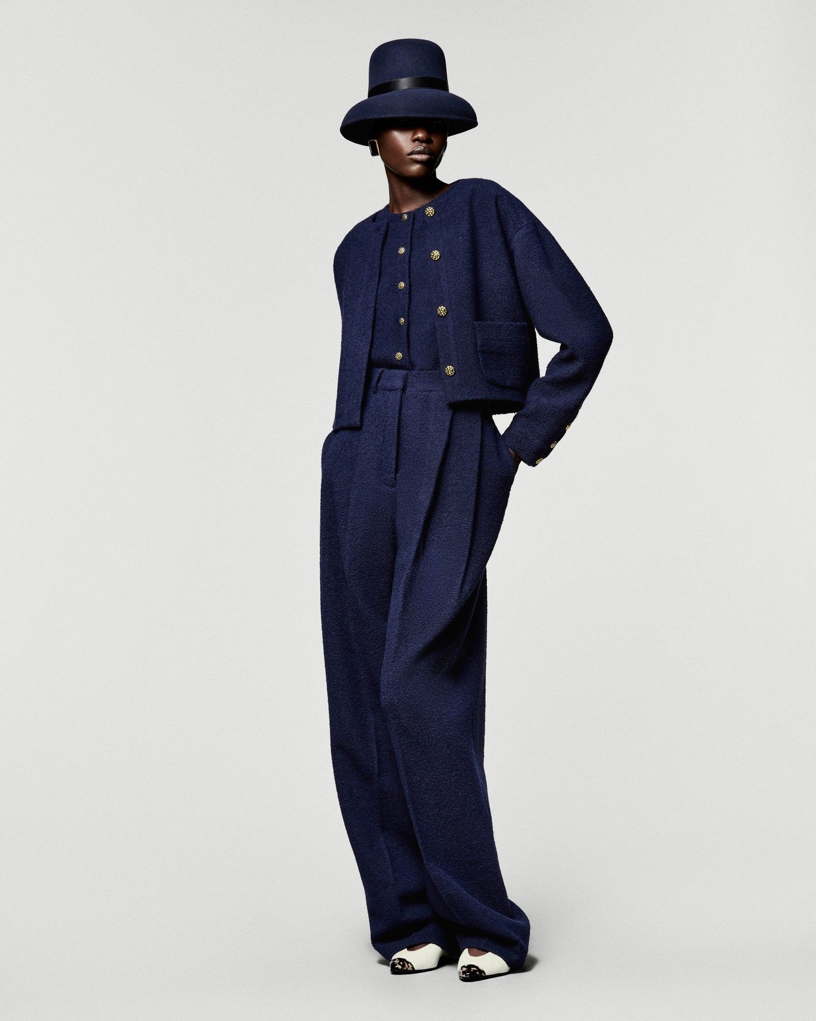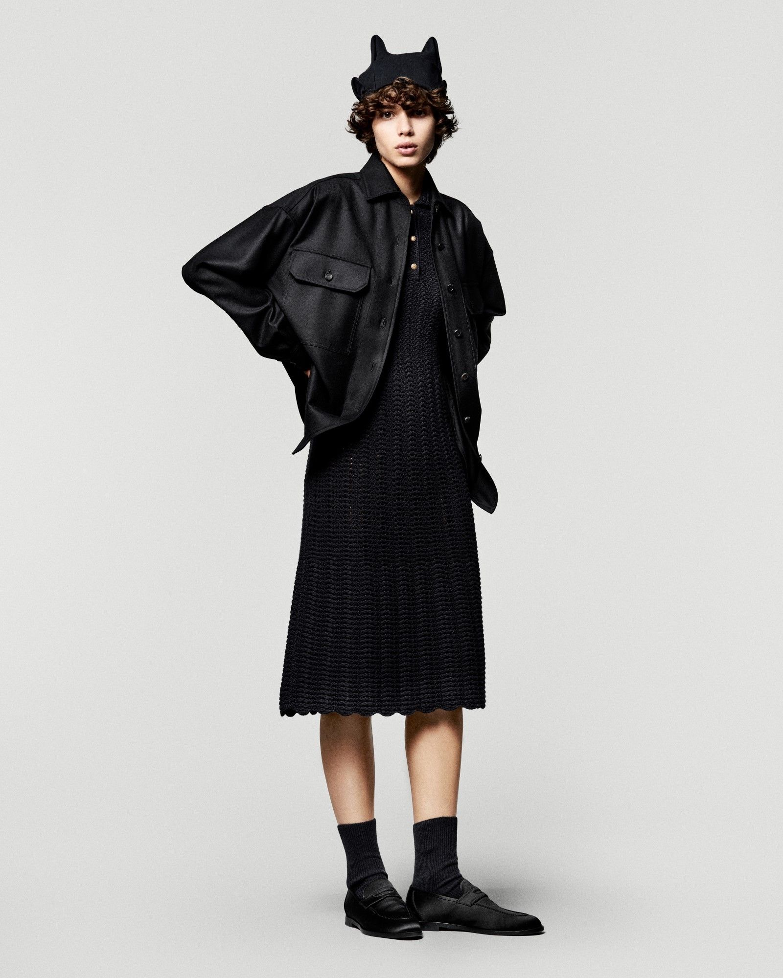 This season’s women’s collection is infused with a cosmopolitan spirit that spans Argentina, the Scottish Highlands, and the vast landscapes of Australia and New Zealand. Each piece tells a story of returning to the roots, with silhouettes that embrace the body’s movement and functional details inspired by equestrian traditions. Skirt-pants pay homage to Argentine heritage, while fabrics—ranging from bouclé to Merino wool, silk, and cashmere—are dyed in natural tones that highlight Loro Piana’s intricate dyeing techniques: dark brandy, vintage brown, creamy vanilla, vicuña, and navy blue. The iconic Spagna jacket is reimagined in a cropped version and as a pencil coat. Layered outfits play with ombré effects, while eveningwear channels the elegance of the opera with satin silk and jacquard in classic black and white. Accessories complete the look with soft bags like the new Extra Bag L23 and the Needle Bag, inspired by knitting needle cases, alongside equestrian boots crafted in collaboration with Le Chameau.