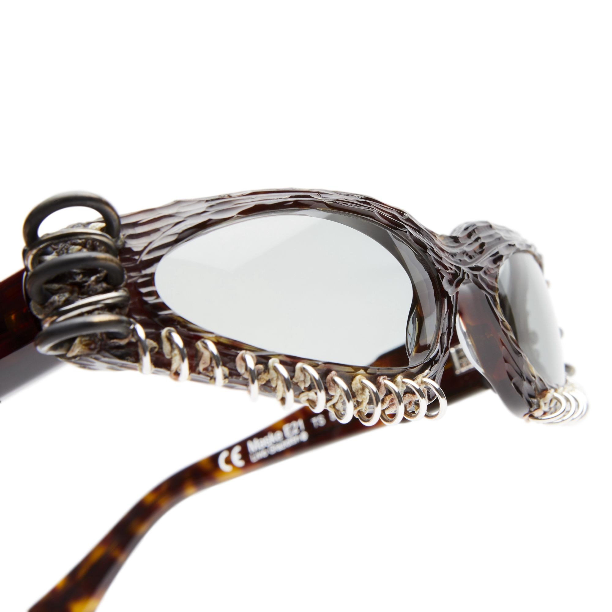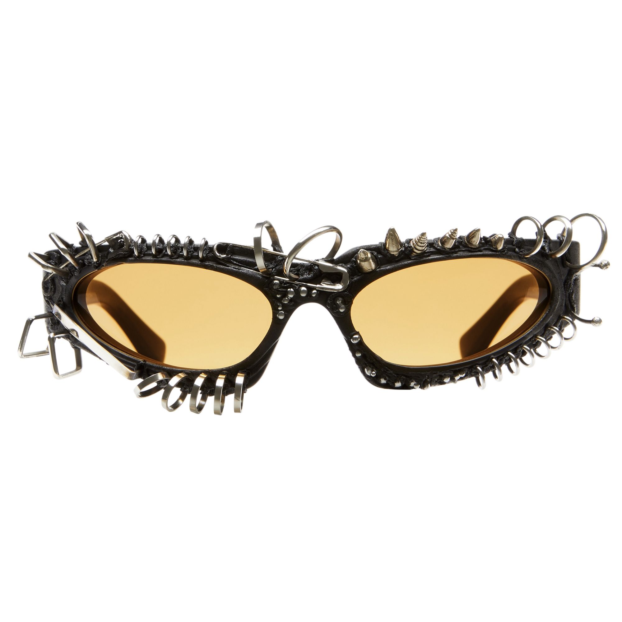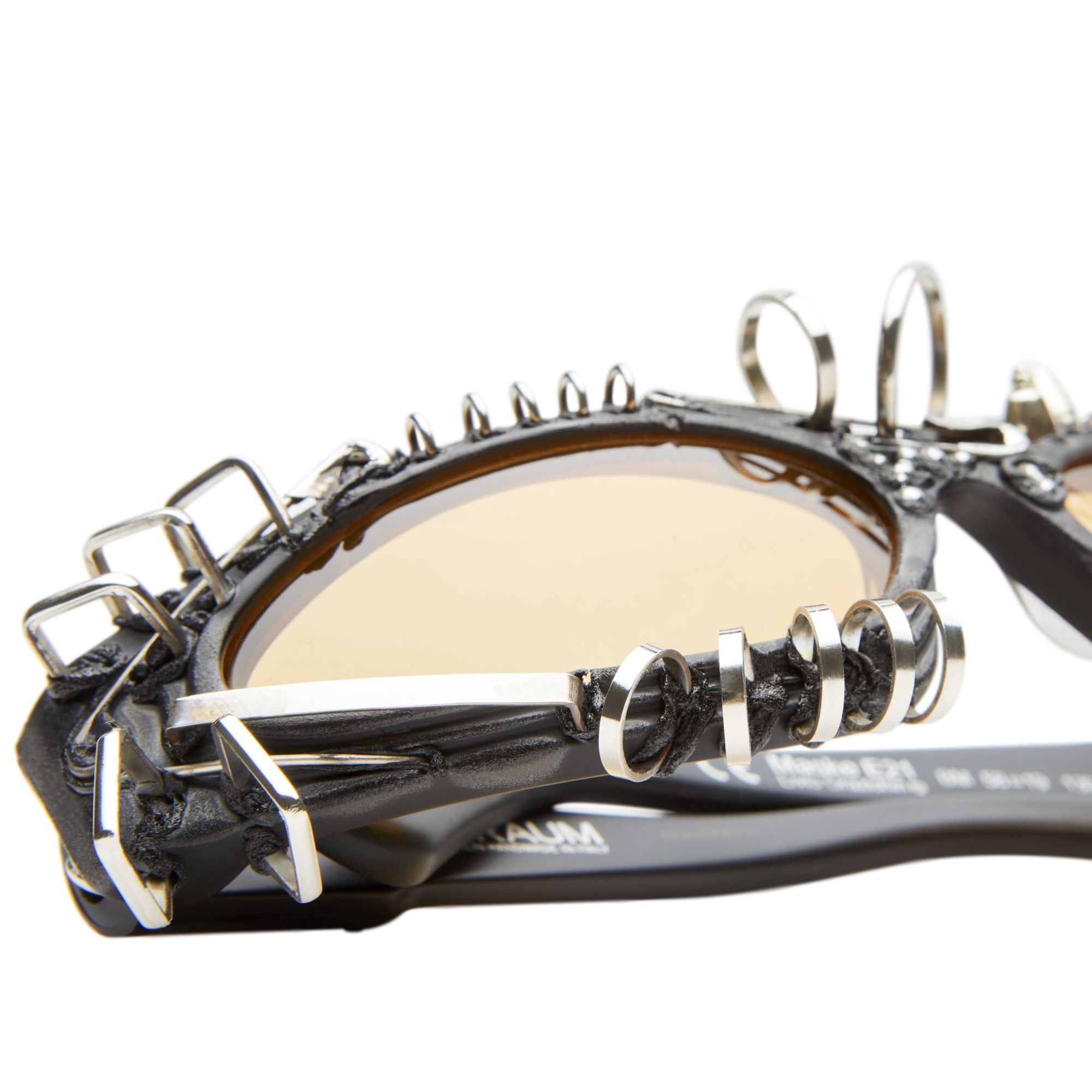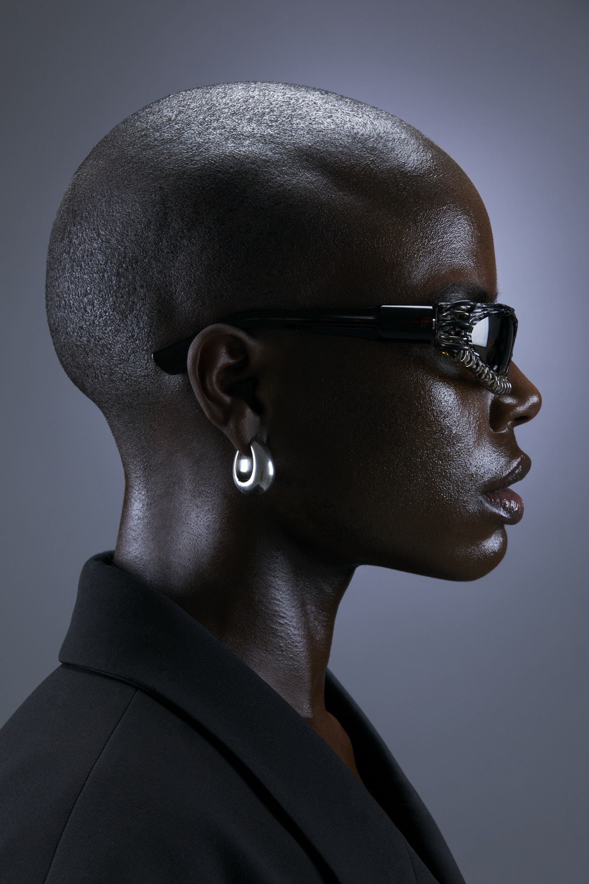 Founded in Berlin in 2011 by Livio Graziottin and Sergio Eusebi, KUBORAUM is an eyewear brand created to challenge the very concept of glasses and mass trends. The brand’s Masks adapt to the wearer’s face, enhancing their personality and character. For the brand, glasses are more than just accessories; they are a symbol of protection, refuge, but also a tool for fun. Each Mask is handcrafted in Italy, perfectly merging with Venetian tradition, while carrying a Berlin influence, symbolizing the brand’s creativity and unconventional aesthetic research. Graziottin and Eusebi's project takes care of every aspect of creation, preserving artisanal excellence and respecting the environment from design to production with an ethical and humanistic purpose. In the KUBORAUM universe, each Mask becomes a “cubic room” in which one can take refuge and explore their identity, a concept that perfectly aligns with the central theme of Sandra Mujinga's artistic practice.