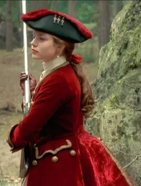In 2001, France endorsed the red coat as a symbol of martial femininity when the late Emilie Dequenne donned an outfit in Le pacte des loups - perhaps the closest to the original painting - for her role as a pugnacious young girl ready to take up arms. The film, a huge success in France and around the world, went on to become a cult classic, and was even restored in 2022. The red frock coat was back in the cinematic imagination.