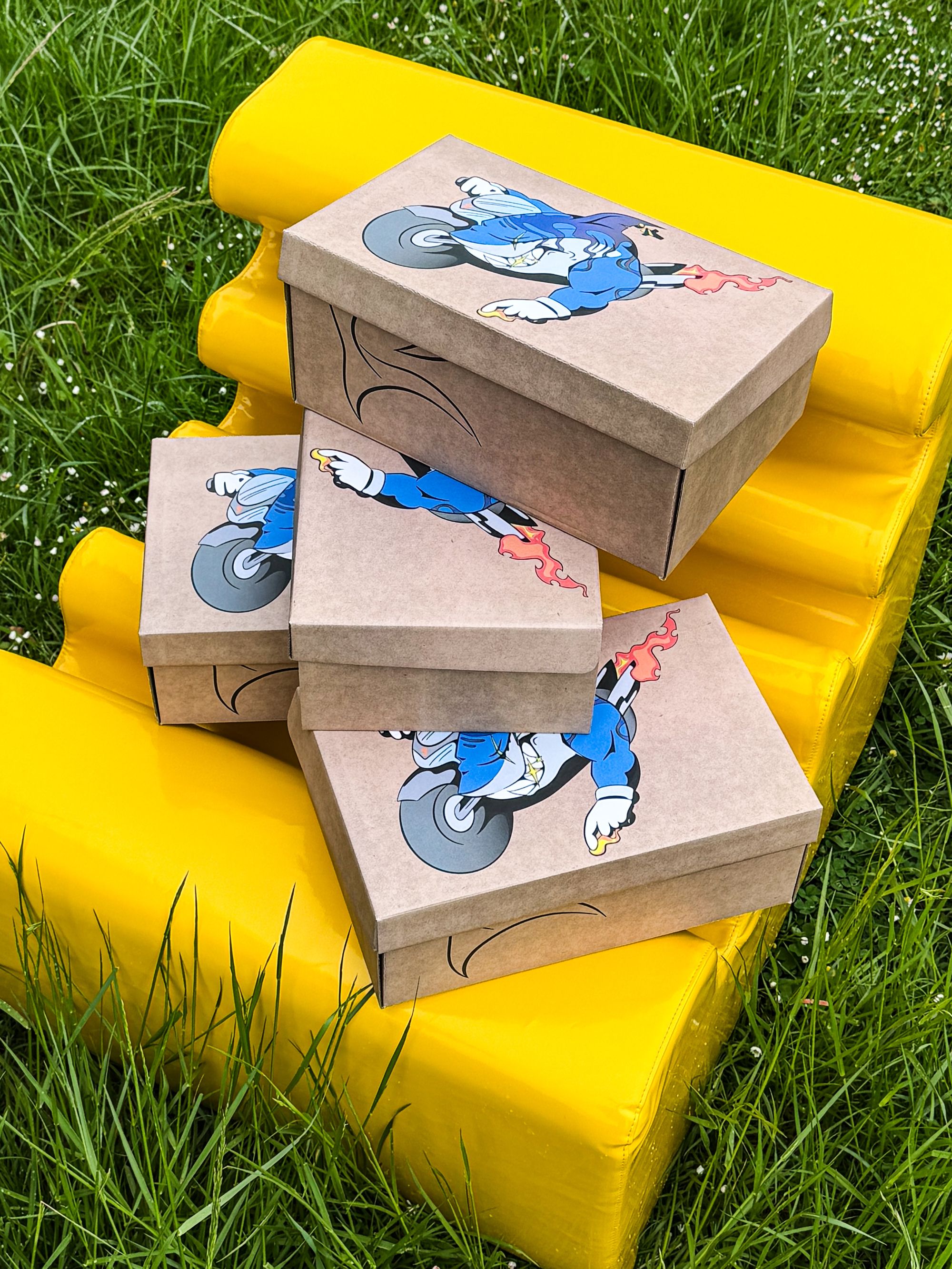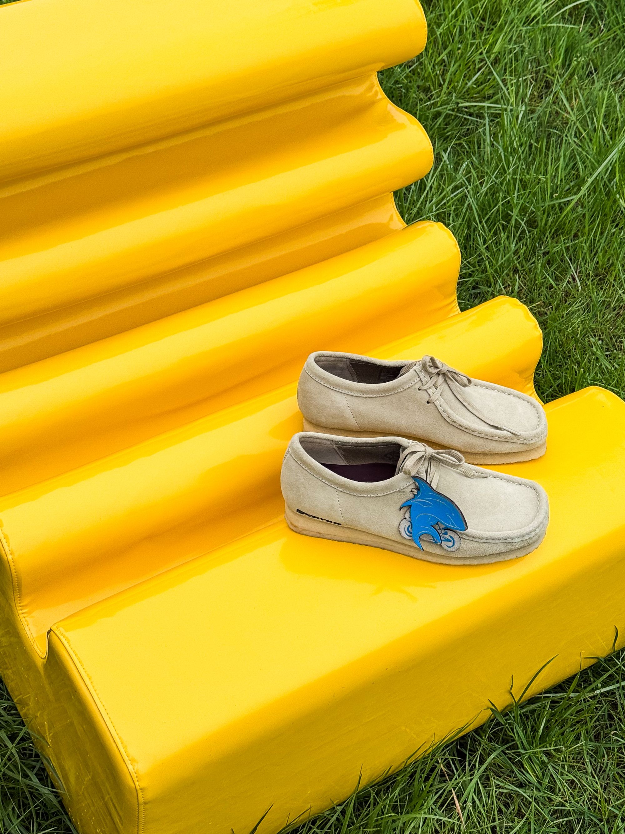 The packaging, inspired by the 90s and the animated series Street Shark, already sets the tone for the vibrant collaboration waiting inside the box. The shark, an iconic symbol of Bleu Mode and an emblem between sea and asphalt, is omnipresent and perfectly embodies not only the designer's Mediterranean roots, the allegory of his artistic vision and lifestyle, but also the very essence of this collaboration: sunny, colorful, cool, and relaxed. The shark decorating the Wallabee no longer simply represents a spirit of combativeness and self-transcendence but above all a bittersweet duality, a character that is both gentle and sharp, exactly like the collaboration itself. This fusion between nostalgia and avant-garde, old and new, classic and reinterpreted, brought to life during the Wallabee Day represents far more than the reissue of a pair of shoes — it tells a story, a journey, and a passion. It fits into a new dynamic where emotion and design meet, offering not only Bleu Mode the opportunity to leave his creative mark on an iconic model but also giving collectors and sneaker fans the chance to own a small piece of his story.