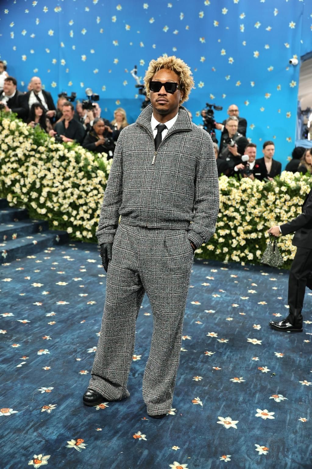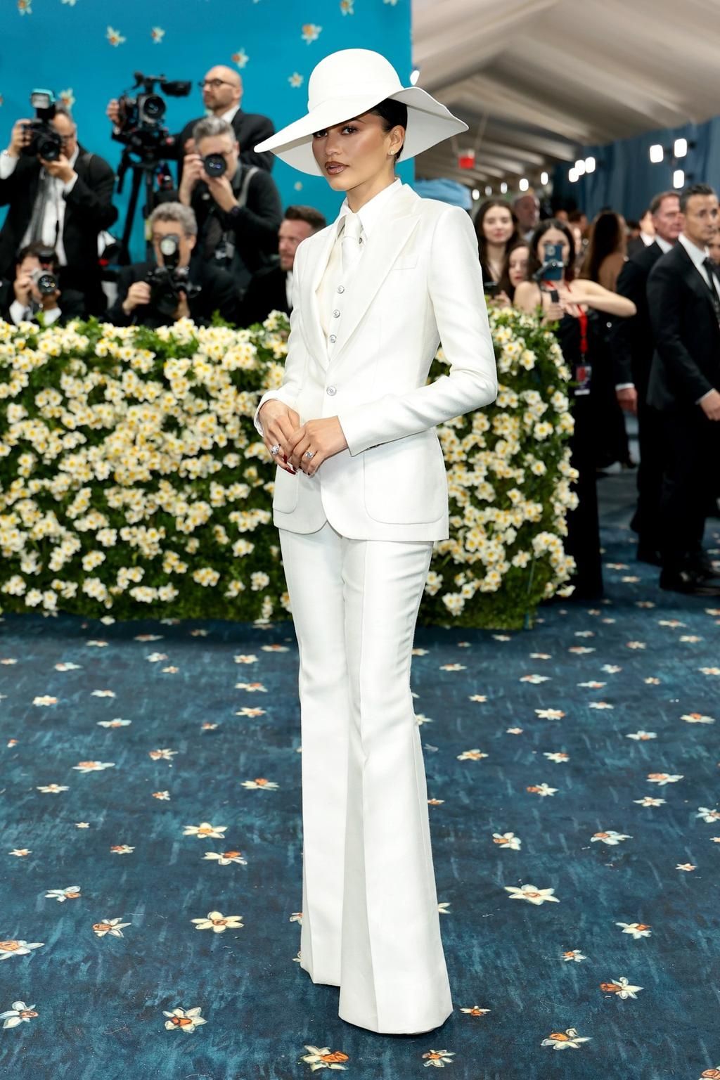 The French Maison most represented on the red carpet was without a doubt Louis Vuitton, which is neither surprising nor coincidental given the presence of the brand’s menswear creative director Pharrell Williams among the evening's co-chairs. Pharrell himself was, of course, dressed head-to-toe in Vuitton, wearing a light jacket embroidered with pearls, adorned with a tie, and black flared trousers. He also had the honor of dressing Anna Wintour, the evening's organizer, in a custom look featuring a long white gown with floral embroidery, a large blue brooch adorned with jewels, and a powder-blue coat draped neatly over her shoulders. In a very different style, we also spotted the Louis Vuitton logo on the tights of K-pop singer Lisa, who wore an all-black outfit composed of a bodysuit hidden under an elegant blazer, and on Sabrina Carpenter, who also went for a “no pants” look featuring a brown bodysuit and matching tailored blazer, finished with an endless train and platform shoes to make her appear less short but just as sweet. But the two Vuitton looks that most caught our eye were those of Zendaya and Doechii, the former in an elegant white suit finished with a hat covering half her face, and the latter in a checkered bermuda paired with a branded tailcoat, decorated with a neck scarf matching her knee-high socks. On the men's side, Vuitton appeared on Jeremy Allen White and Callum Turner, both in simple, effective black suits, and on rappers Future and Pusha T, wearing a grey tartan set and a burgundy suit respectively, the latter adorned with a cascade of glitter delicately draped over the shoulders.